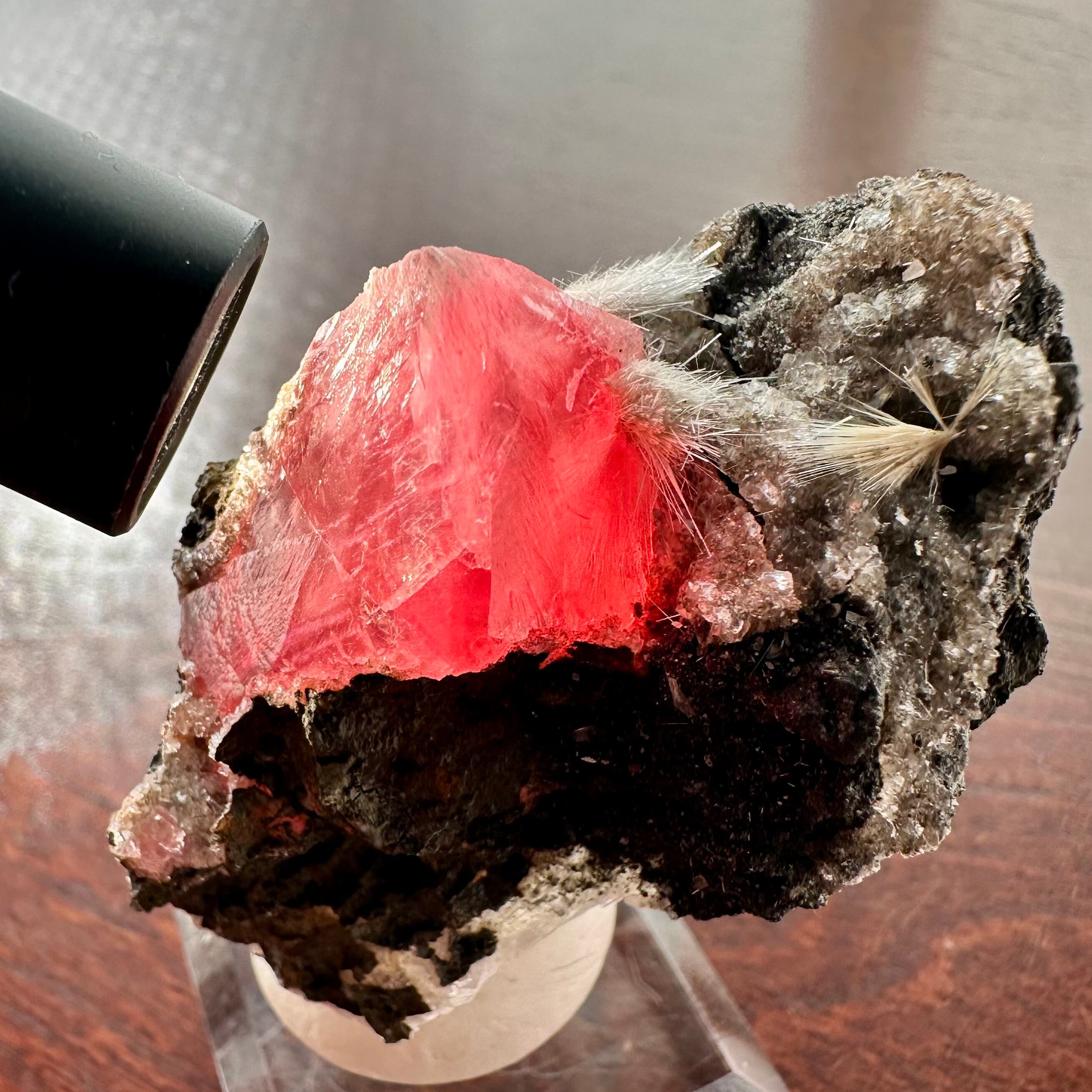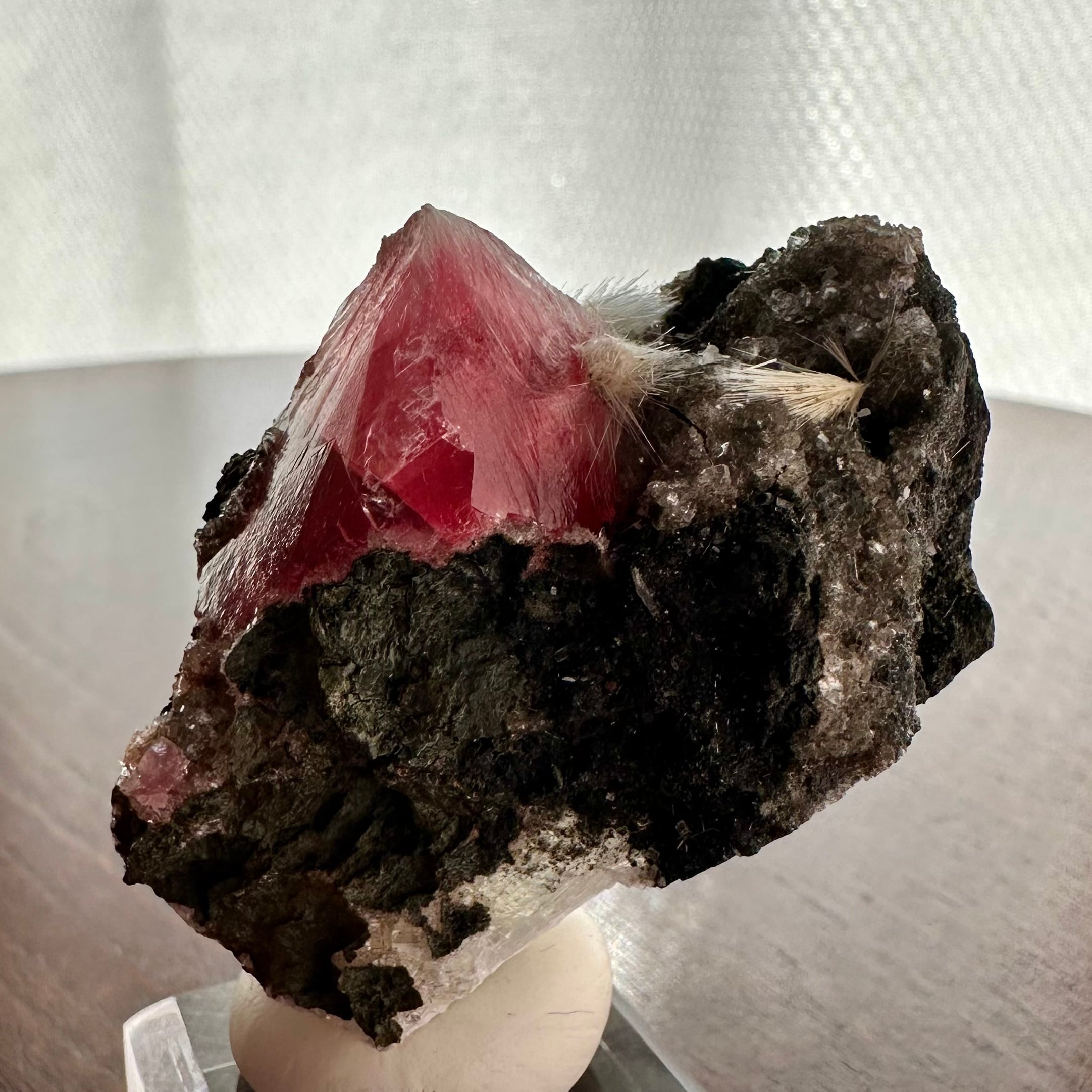 メソライトとのコンビネーションが紅白メリハリがあり美しい標本で、発色や透明感も良好です。