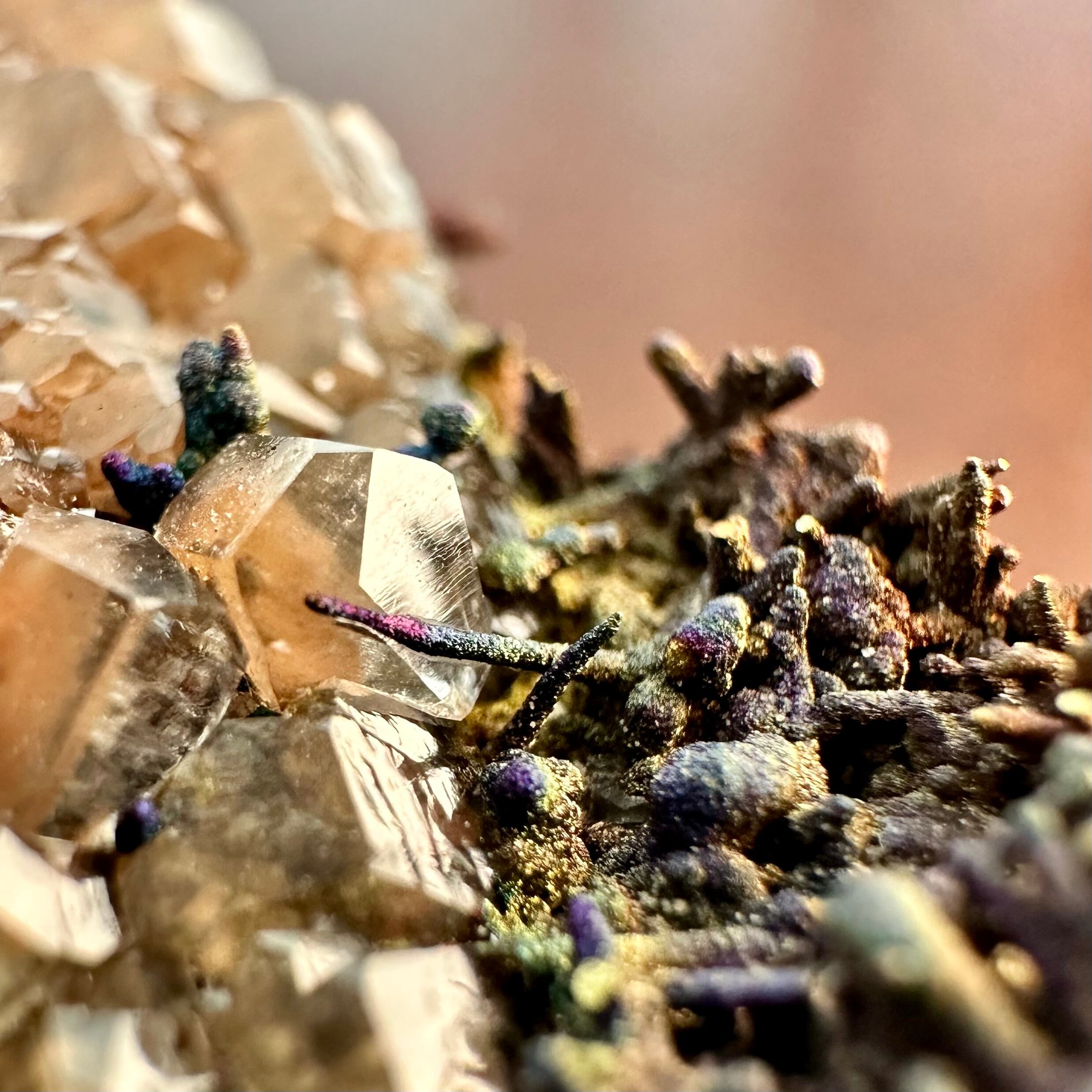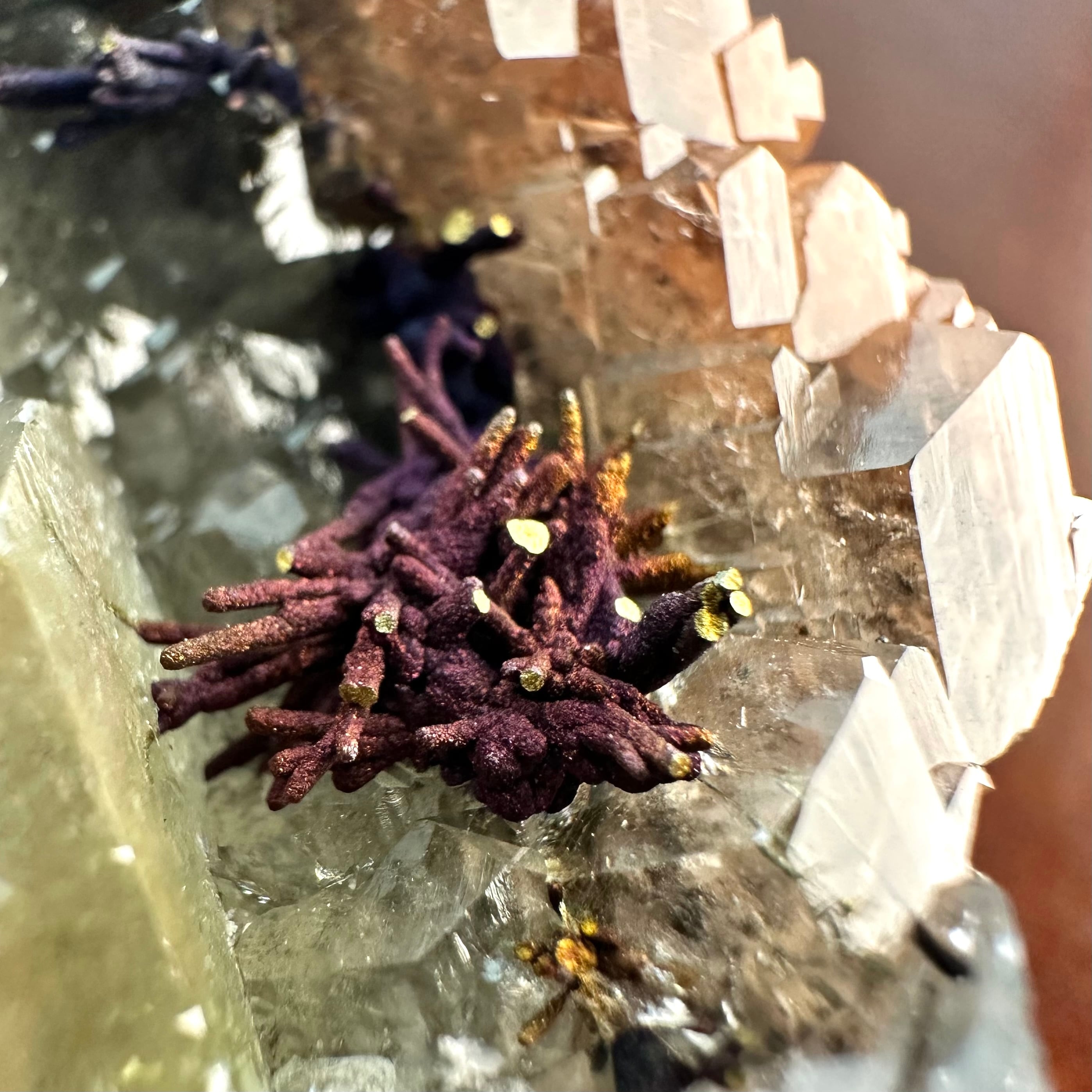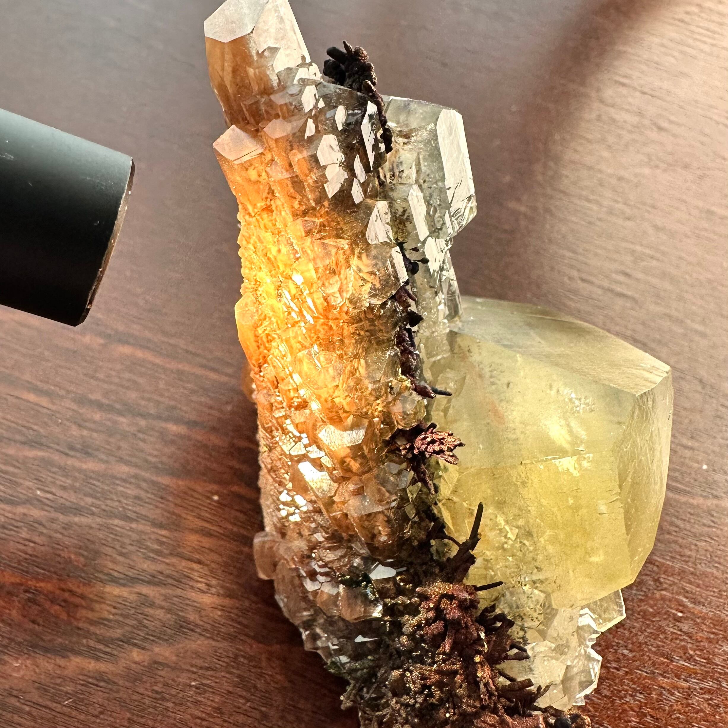 また、一見すると銅のようなうねりのある結晶も独特な光沢があり、こちらがカルコサイトになります。