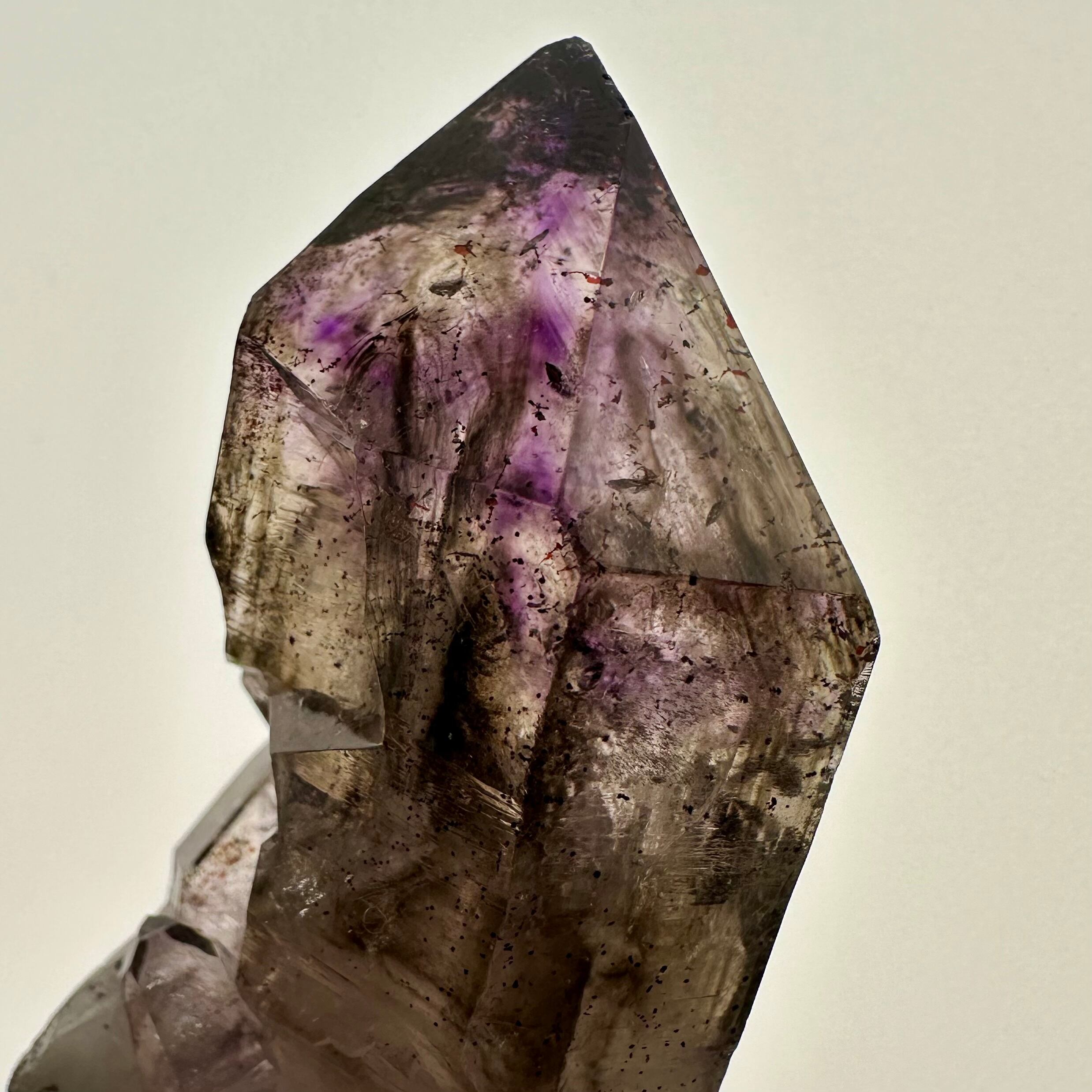 ジンバブエで産したアメシストです、全体的にスモーキークォーツ感もあり、透明感やテリも抜群です。