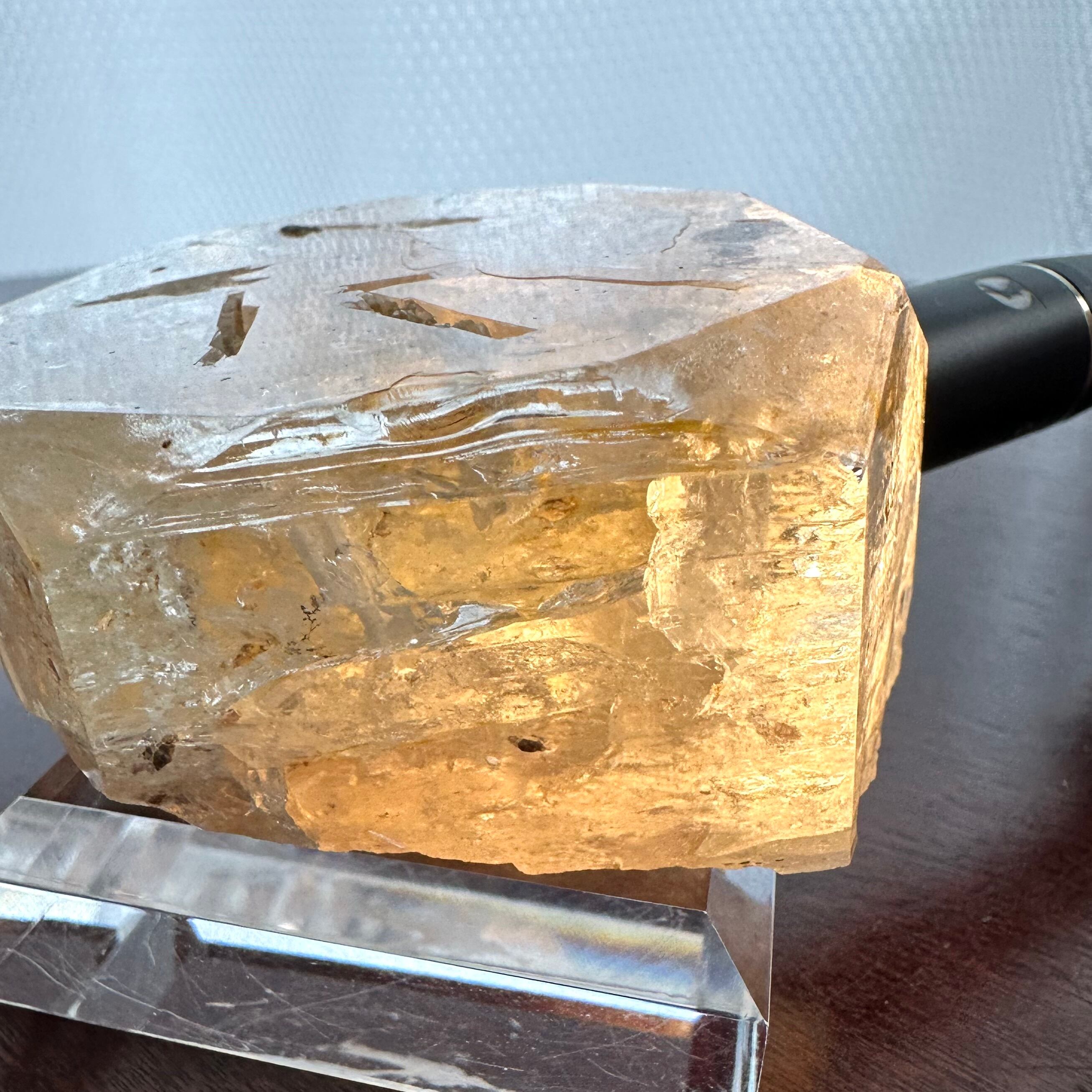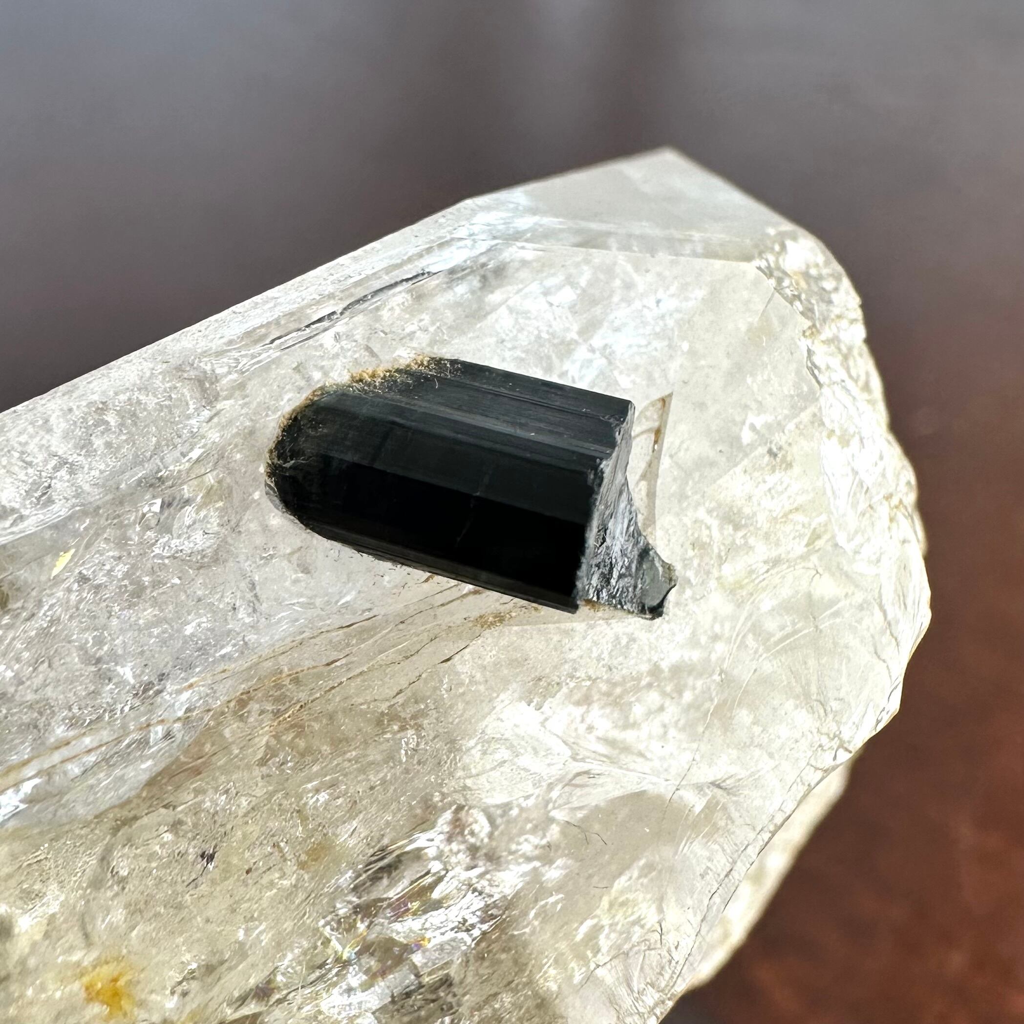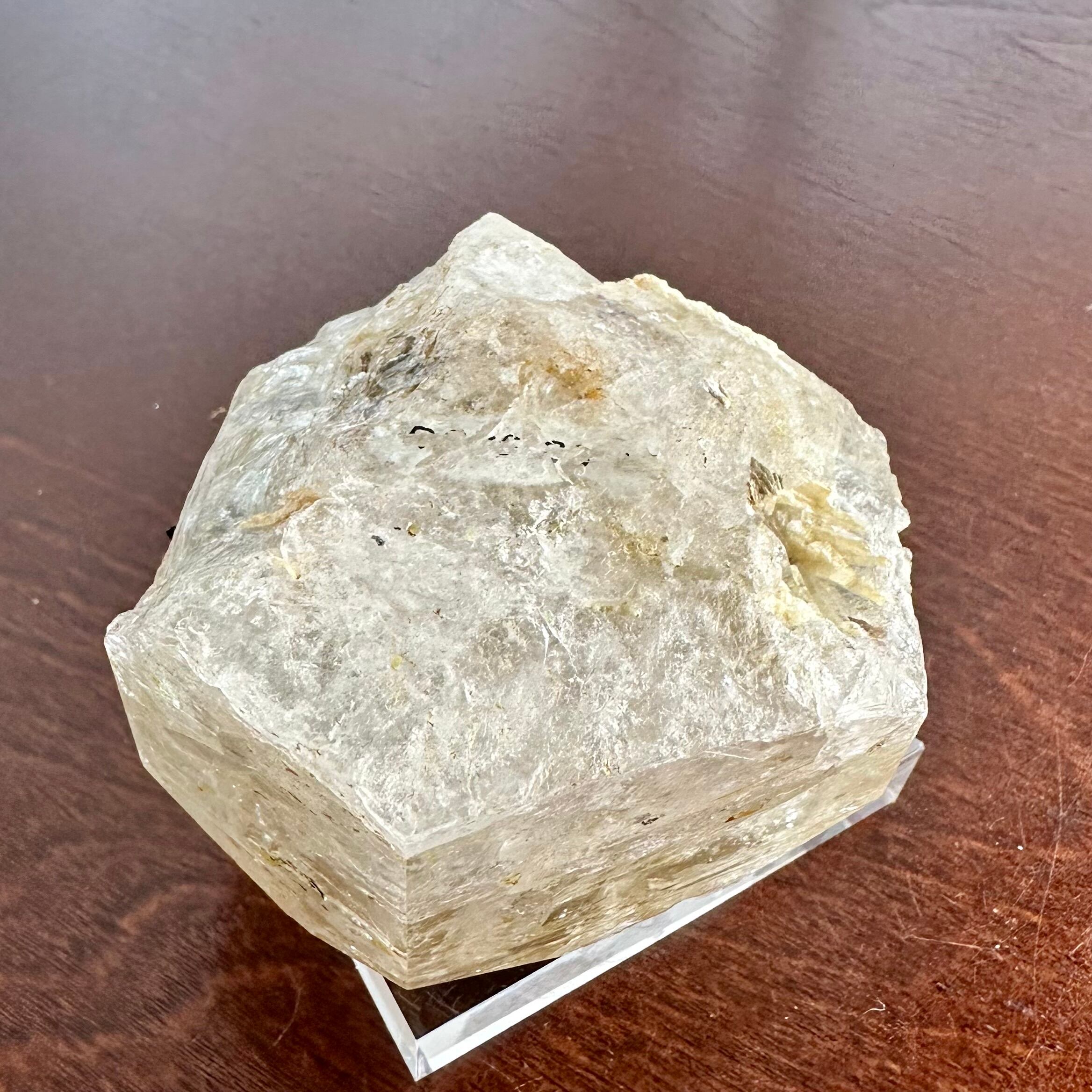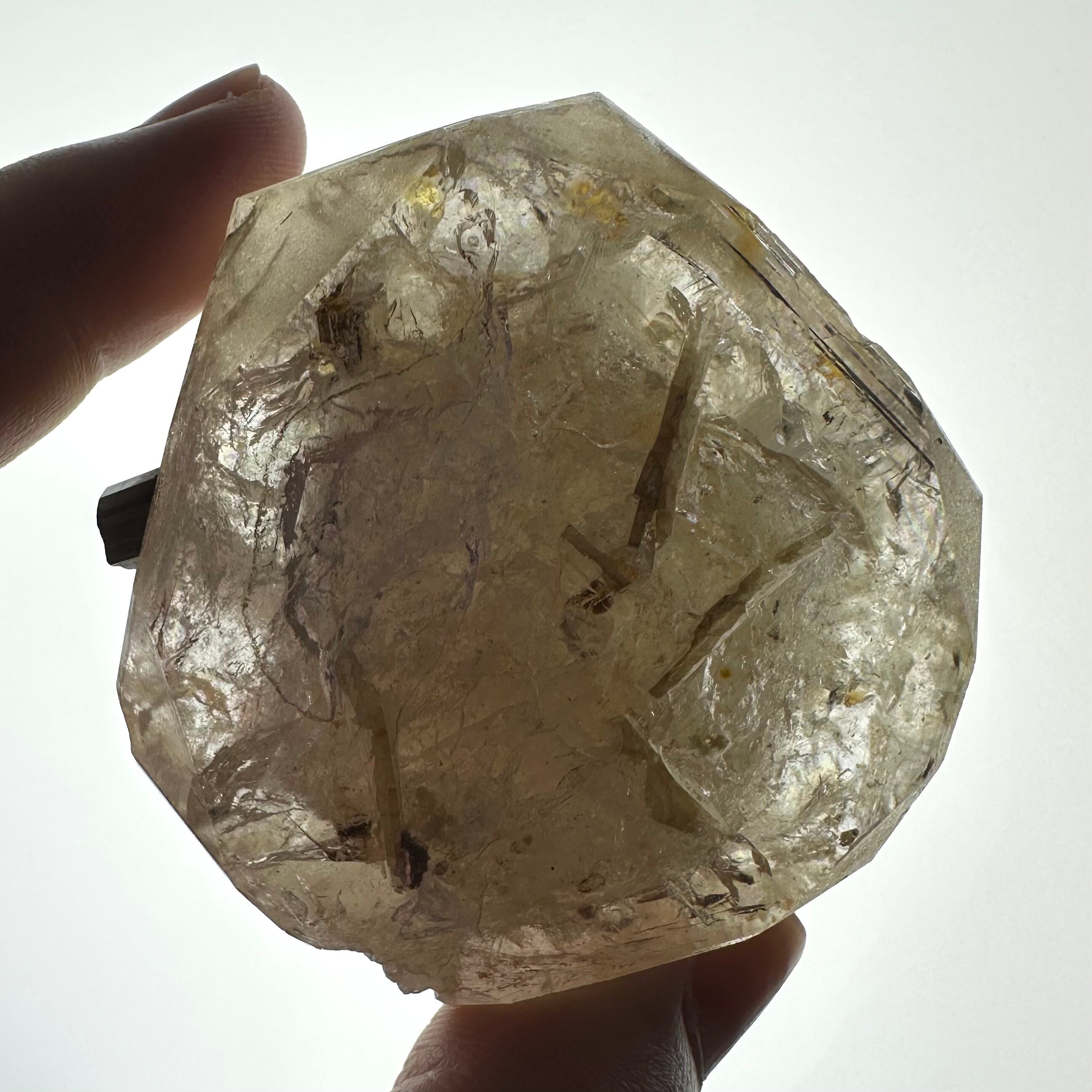 約6センチ幅のサイズ感抜群のモルガナイトの結晶に小さくトルマリンが貫入しています。