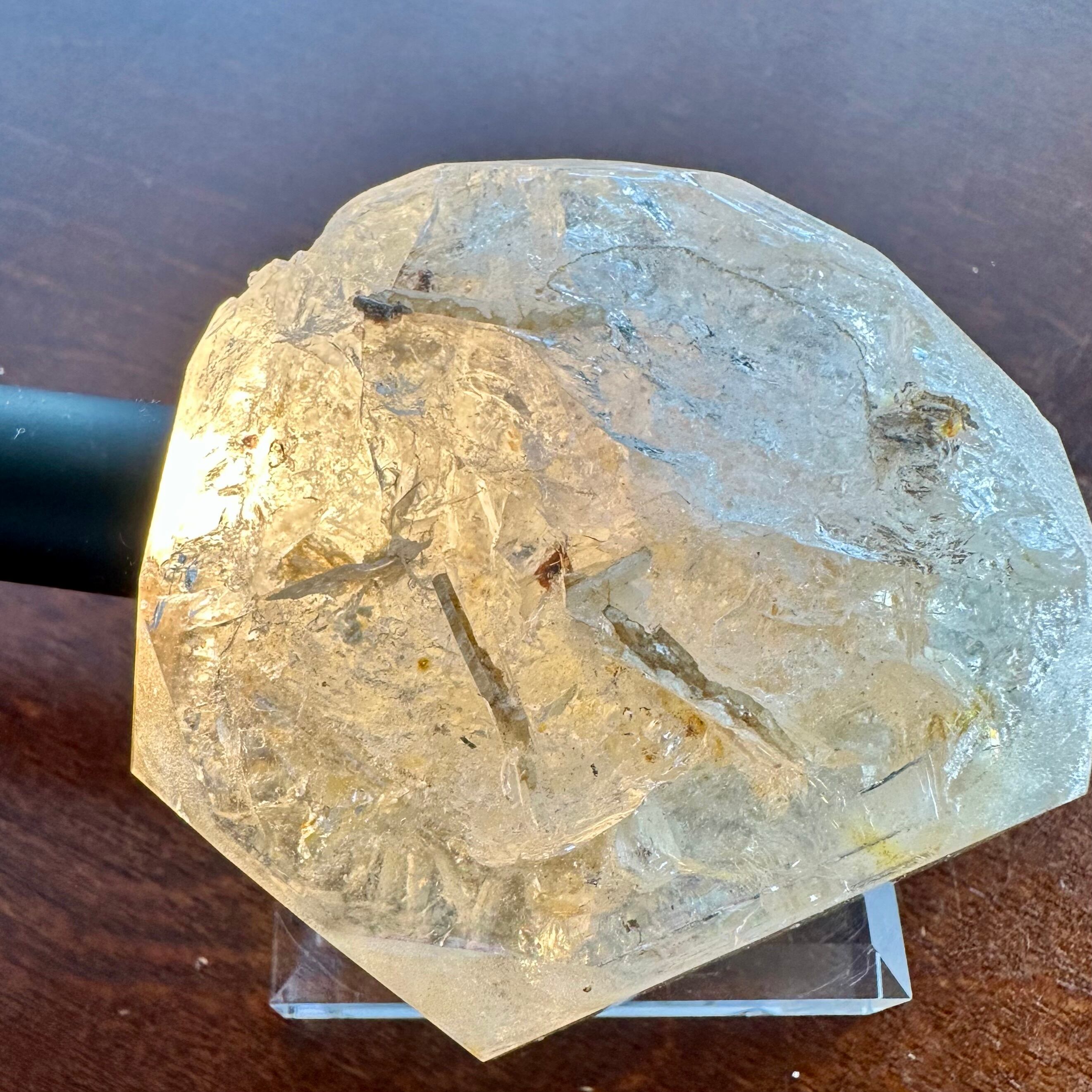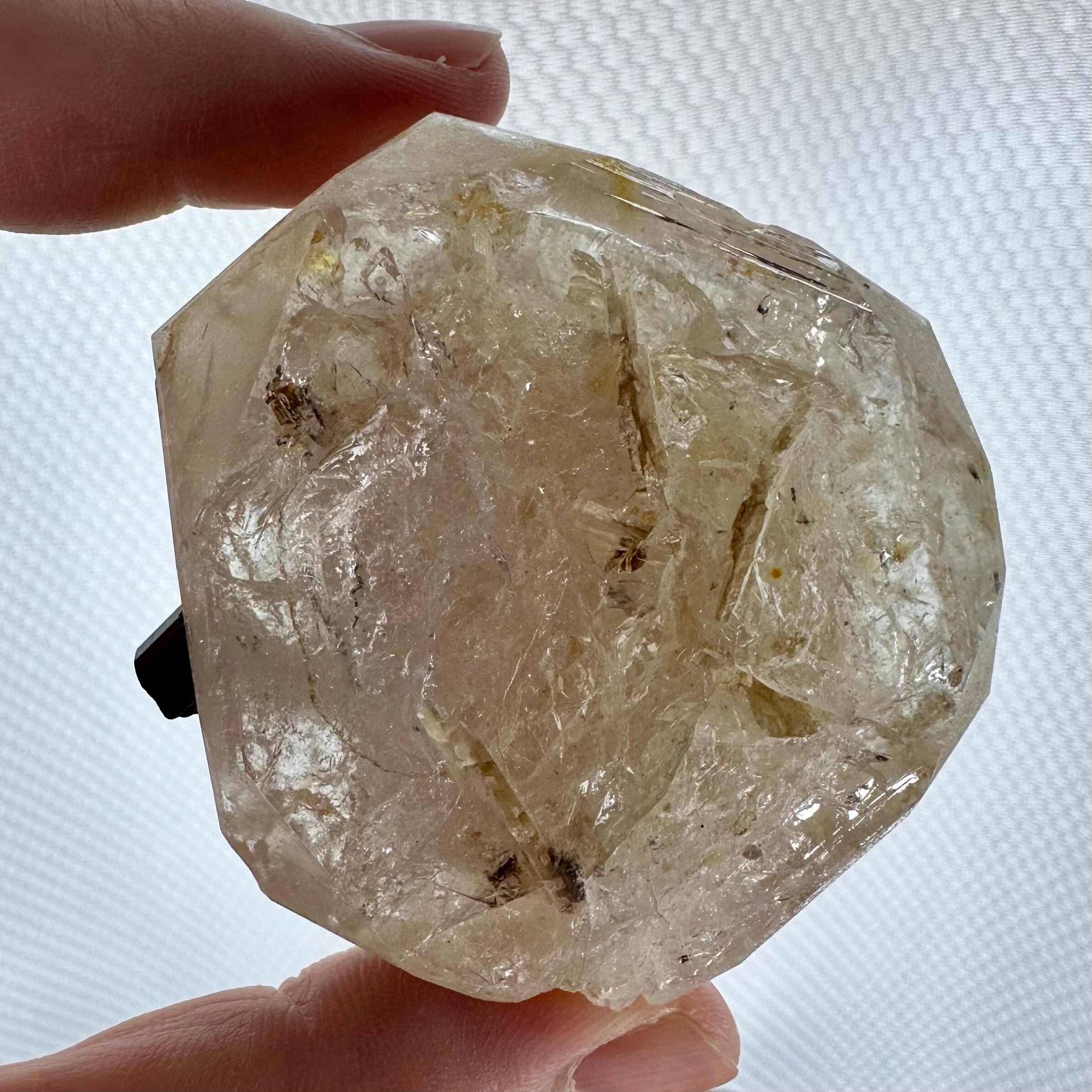 モルガナイトと記載していますが、中心部こそ淡くピンクがかっていますが全体的にはカラーレスに近く、ベリルと表記する方が自然かもしれません。