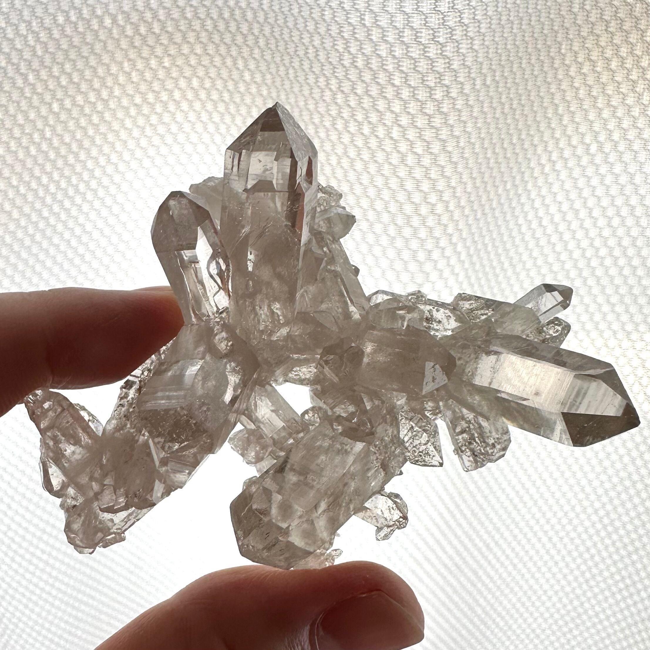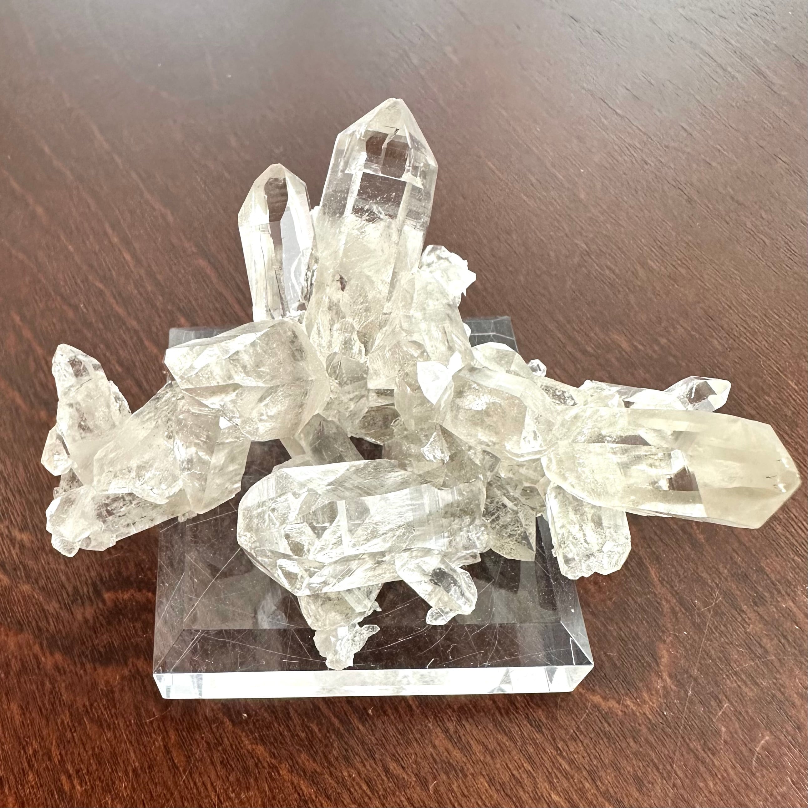 結晶の入り組み方がユニークで、全体的なフォルムの魅力が際立っているのと同時に、透明感やテリといったクォーツそのものの魅力も十分に感じられる標本です。