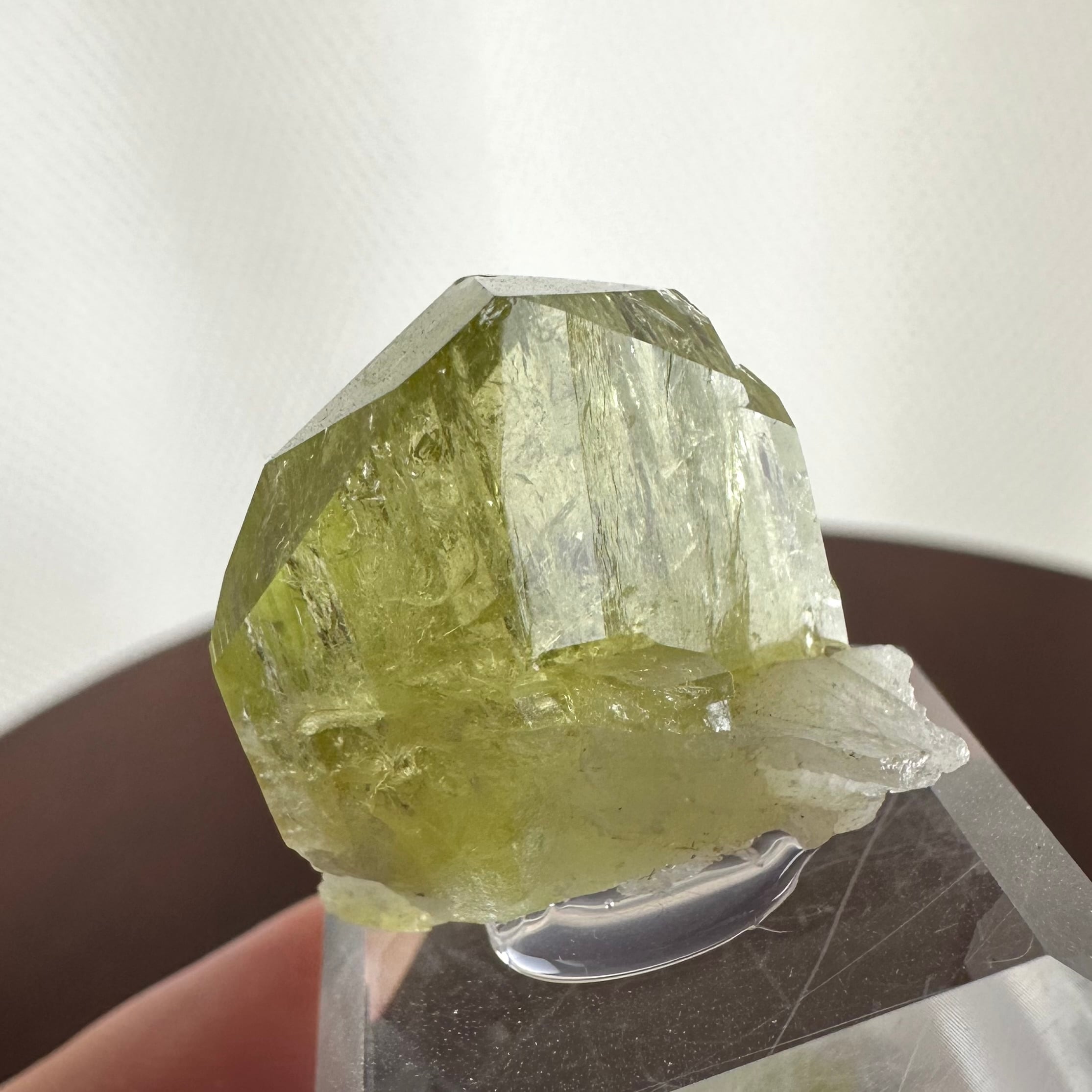 ブラジリアナイトの結晶、強いレモンイエローの発色が特徴的です。