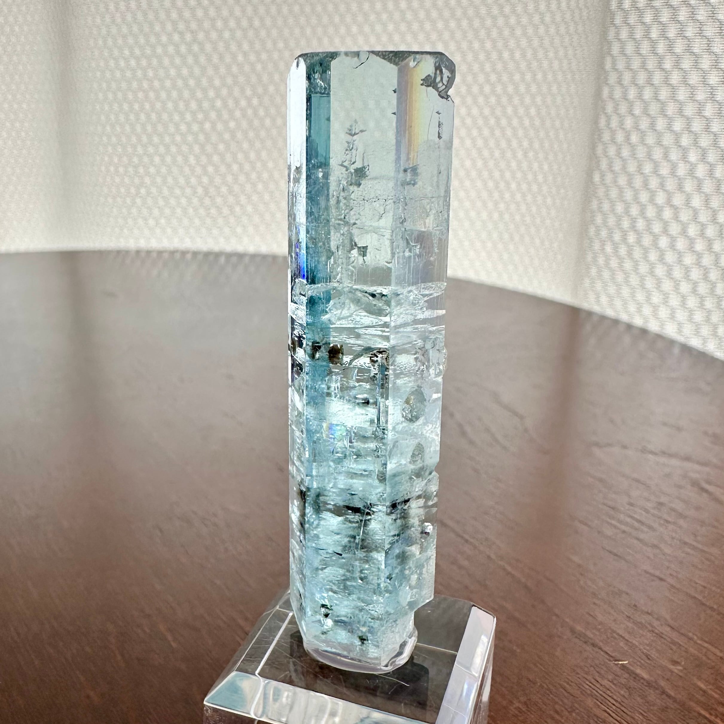 当該産地のアクアマリンとしては発色が濃い部類に入り、かつその発色を維持しながら透明感とテリそしてサイズ感を持っていて、高いレベルで全てがまとまっている標本です。