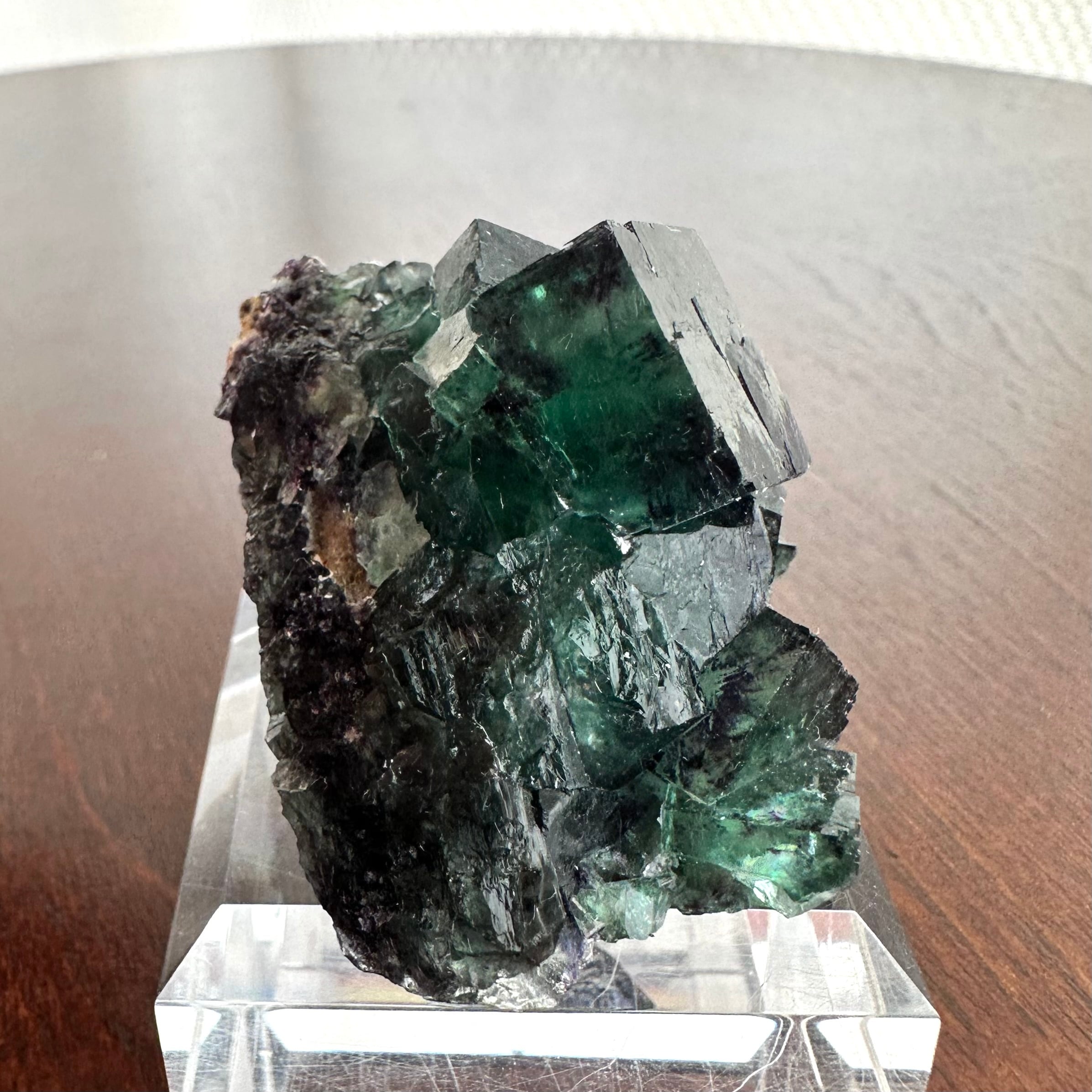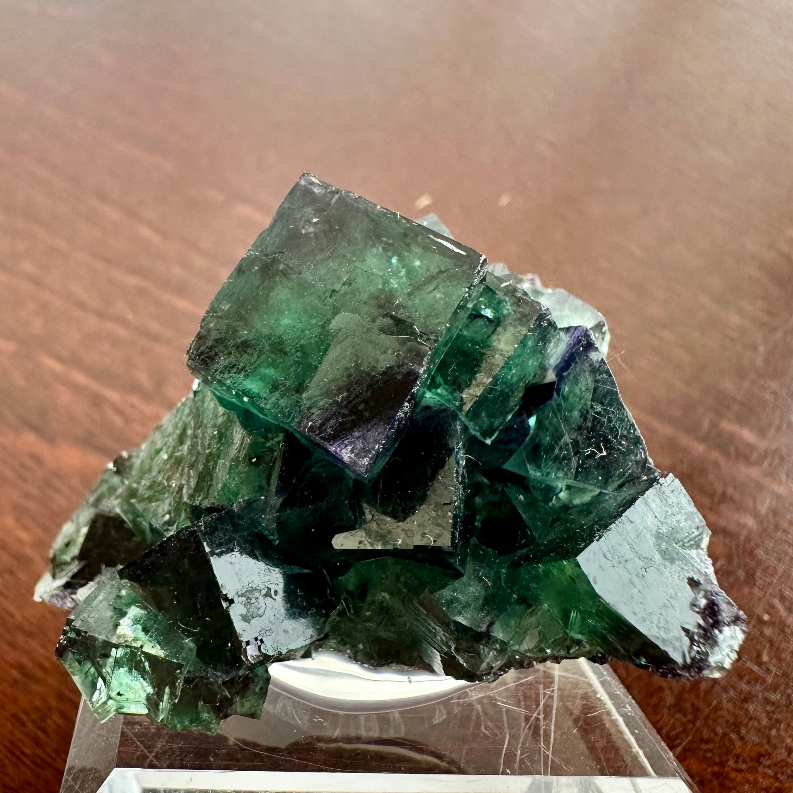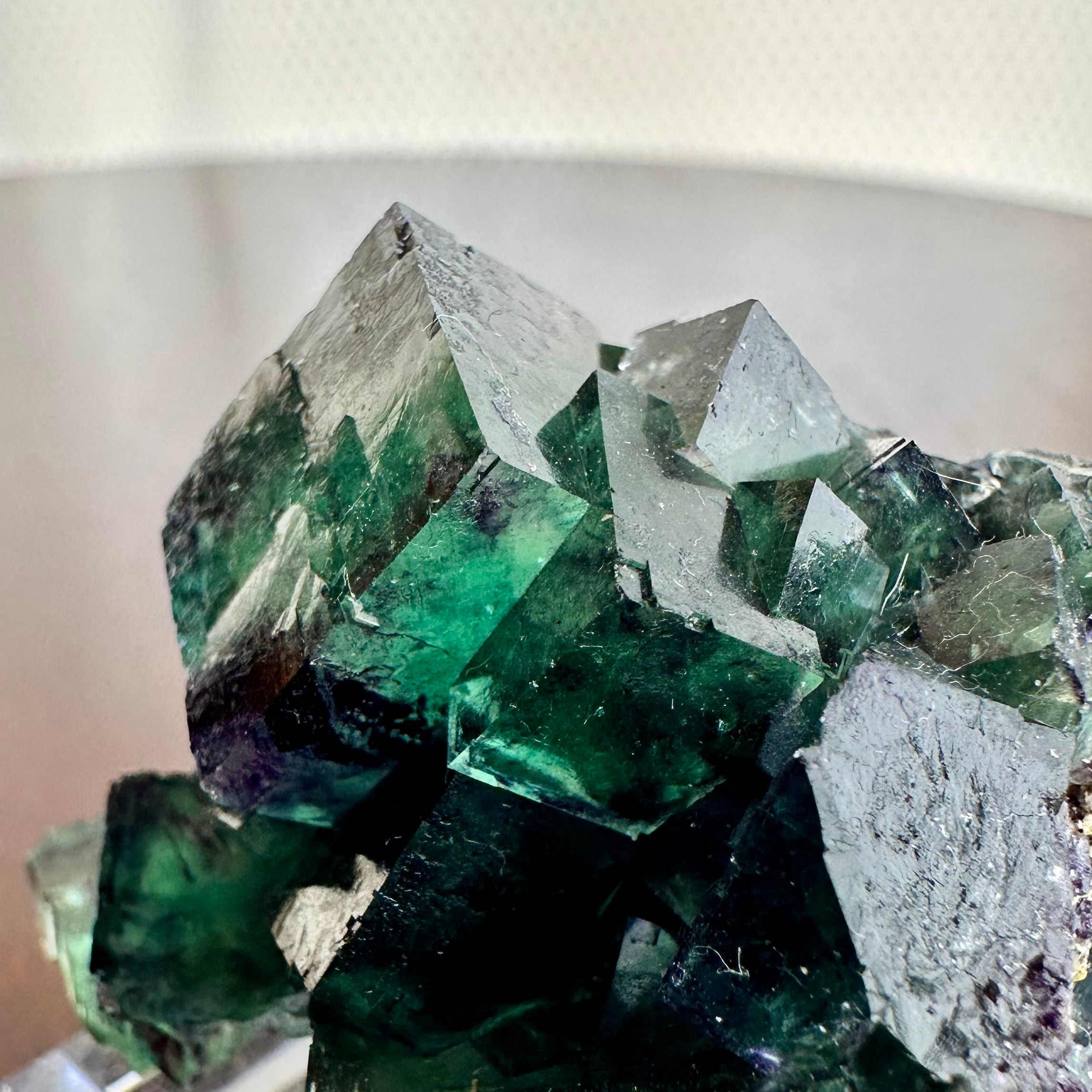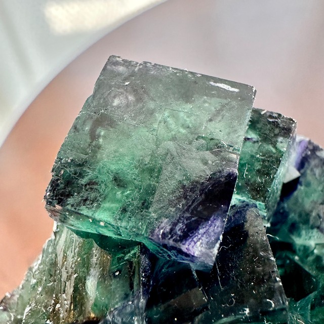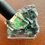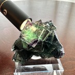 この産地のものとしては結晶の光沢が強く出ていて、透過光下ではしっかりと透け感がありグリーンやパープルの発色が混ざり合う感じが美しい標本です。