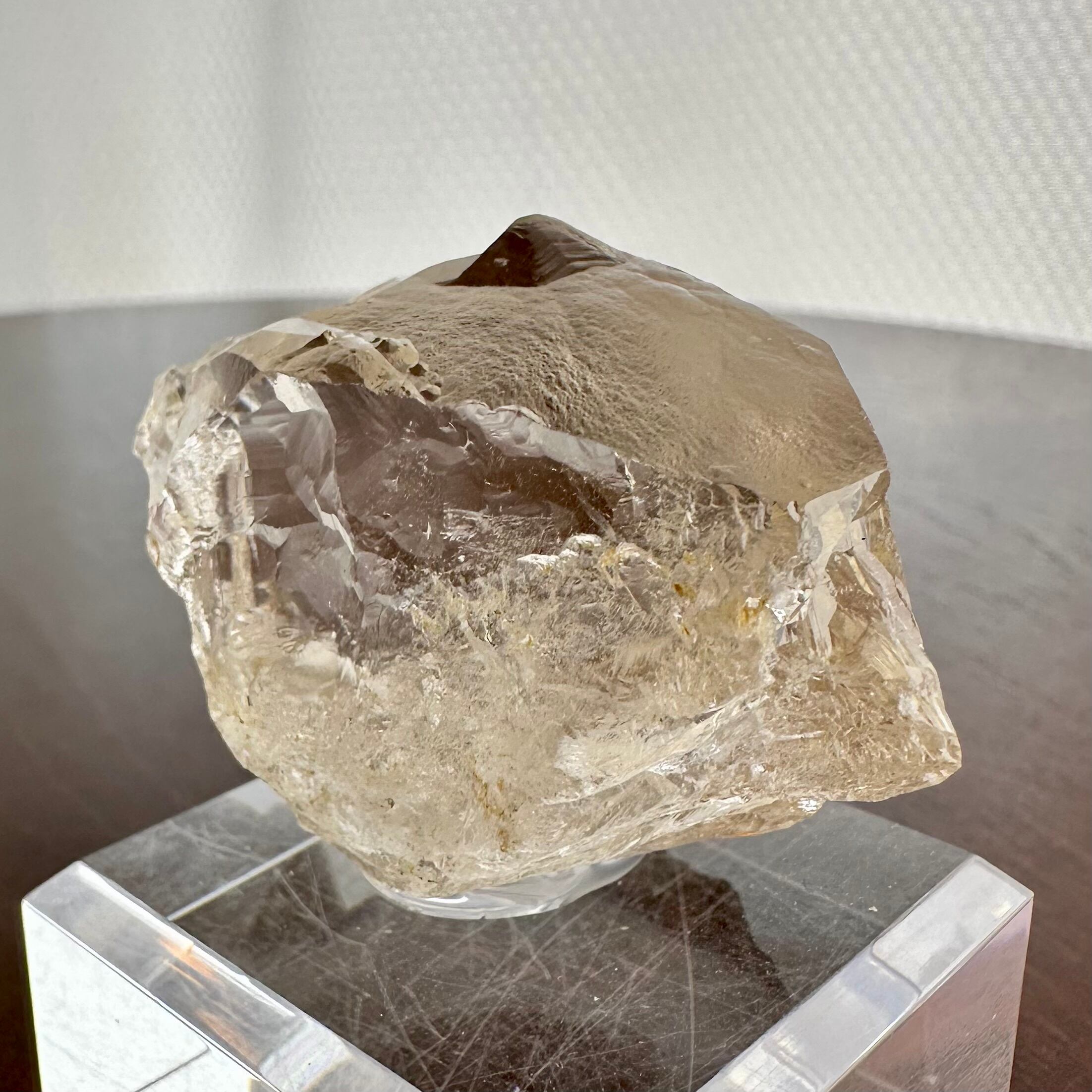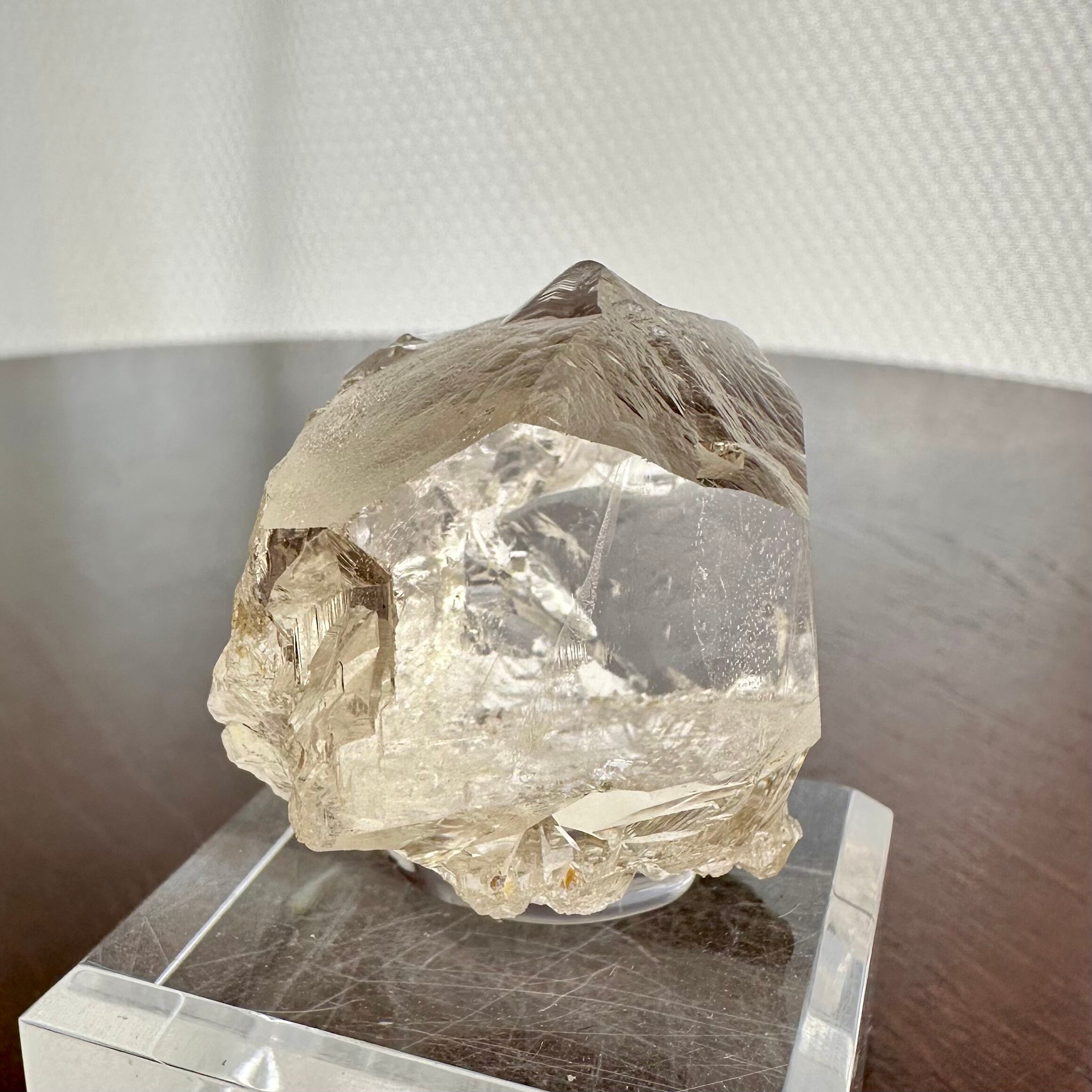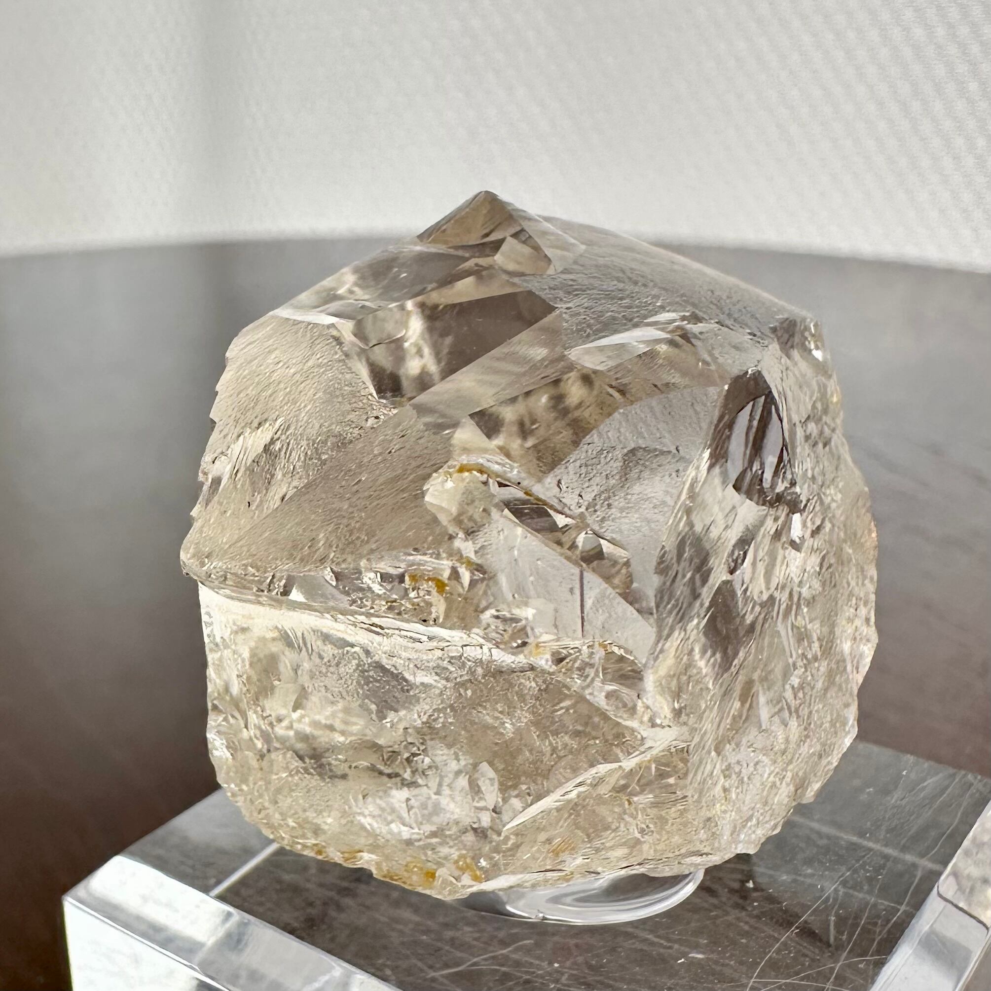 しっかりと厚みがありながら結晶内部はダメージが少ないまさに宝石質な結晶で、かつ透明感とテリも抜群のフローター結晶です。