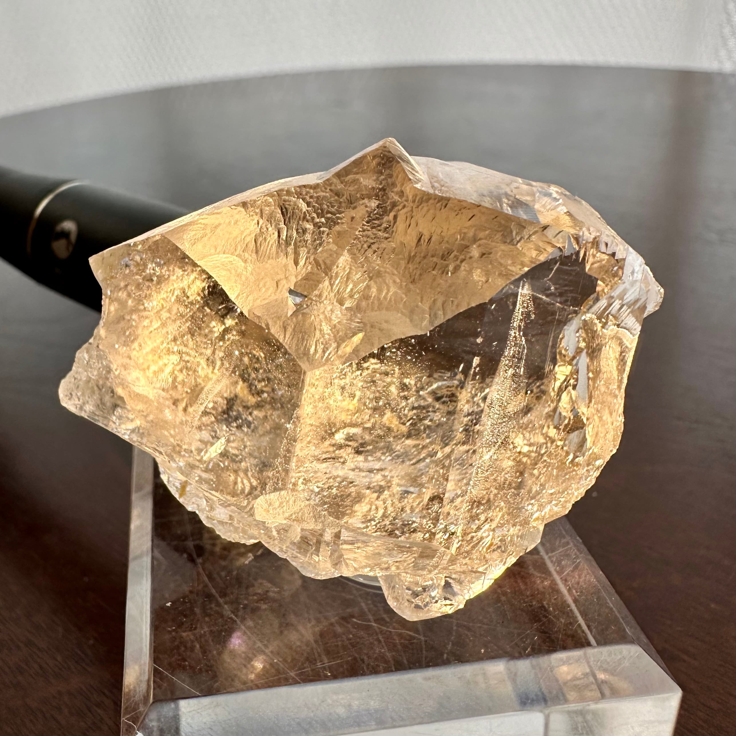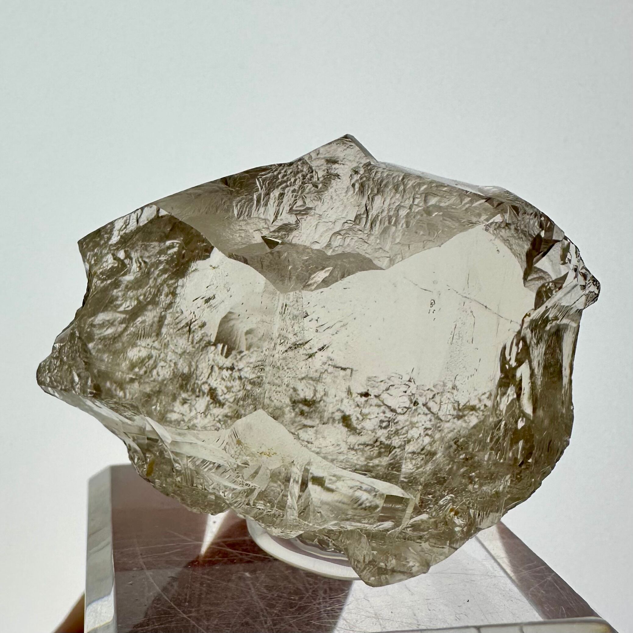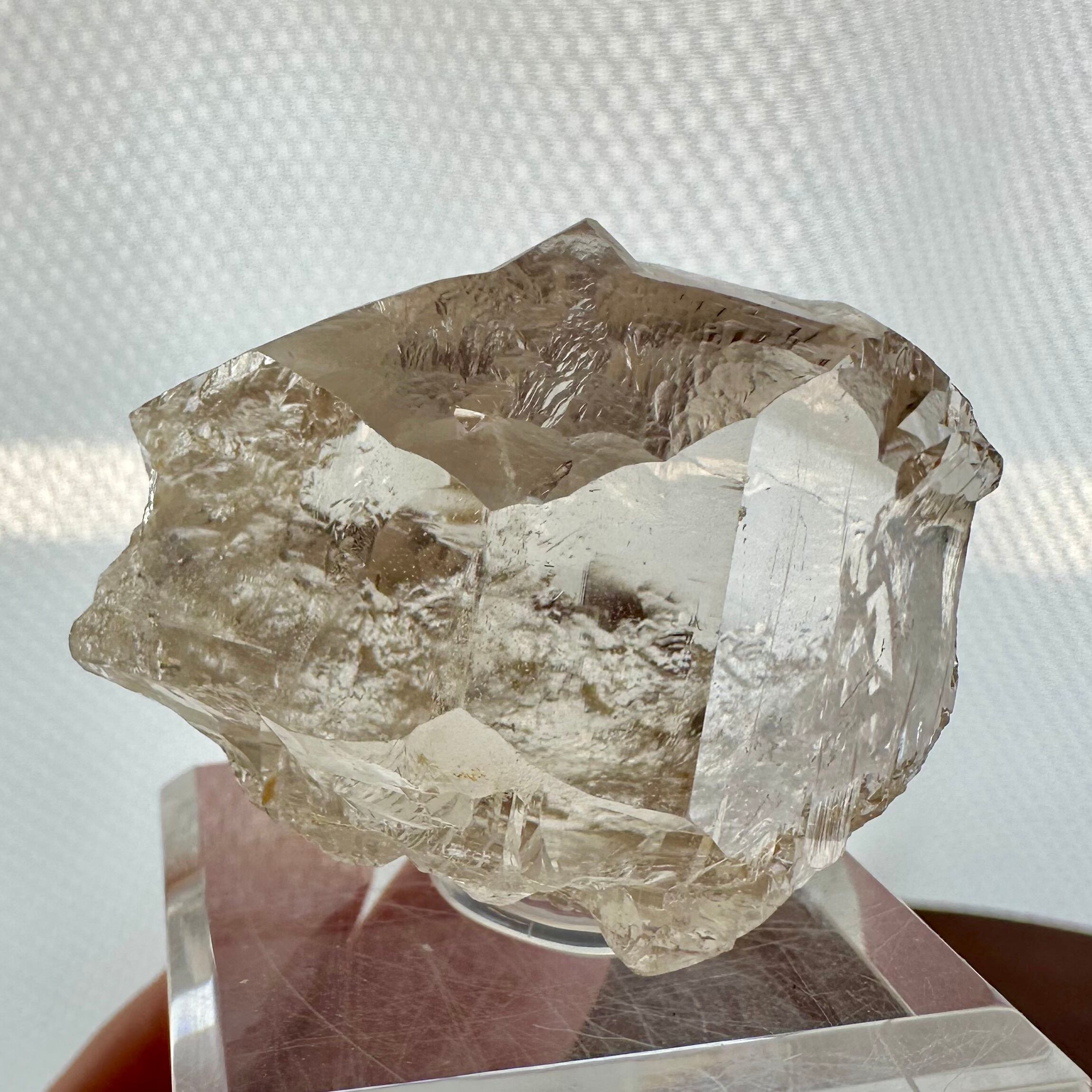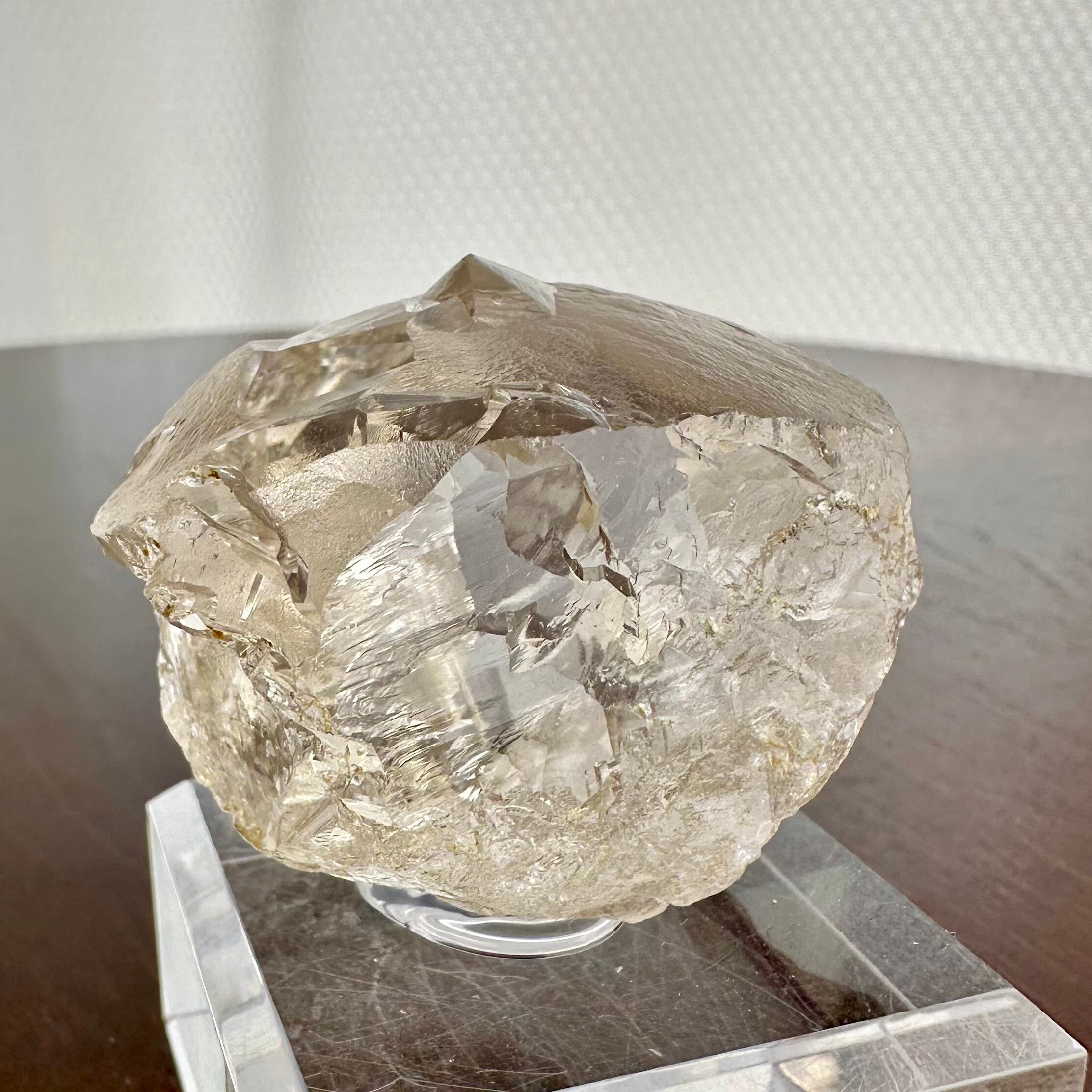 しっかりと厚みがありながら結晶内部はダメージが少ないまさに宝石質な結晶で、かつ透明感とテリも抜群のフローター結晶です。