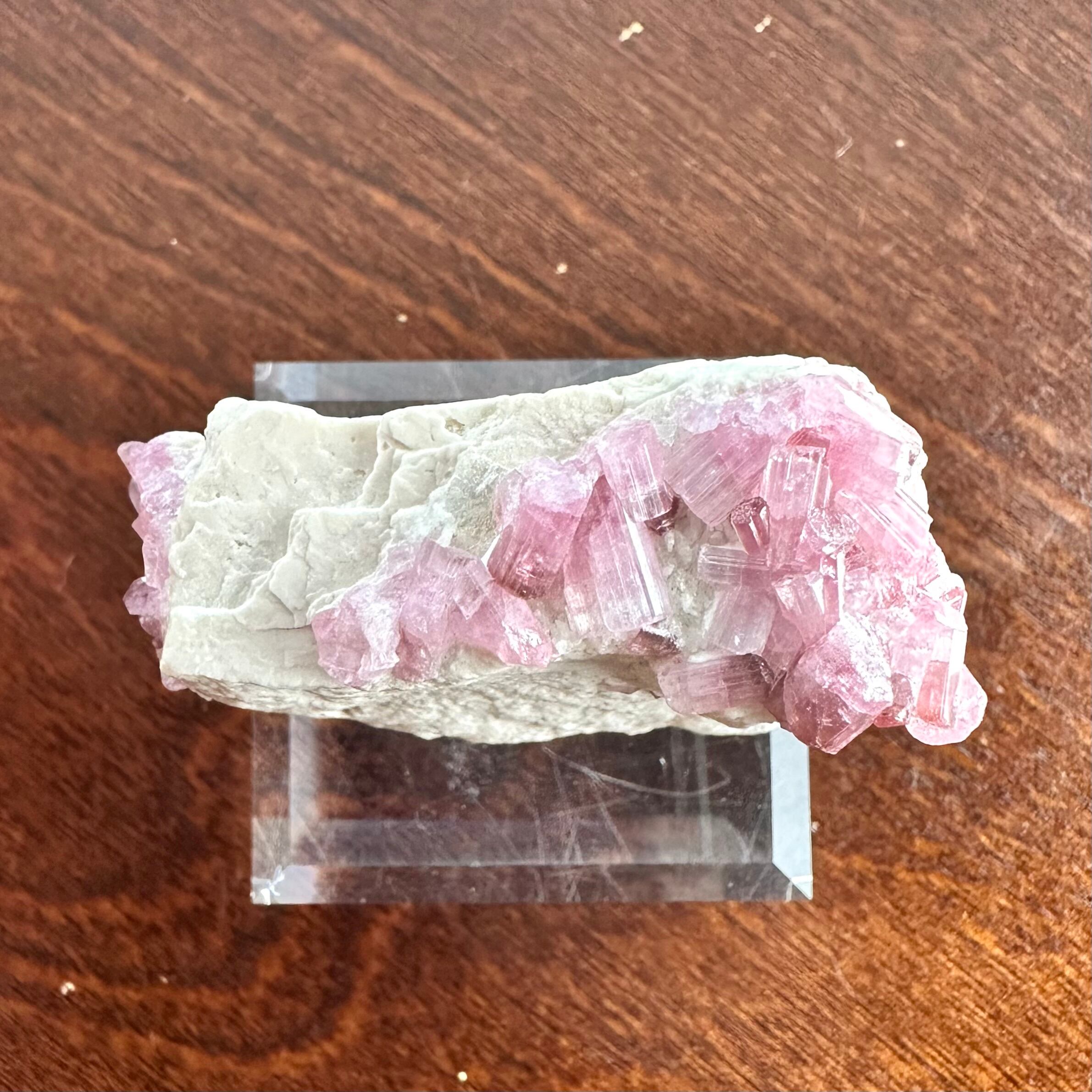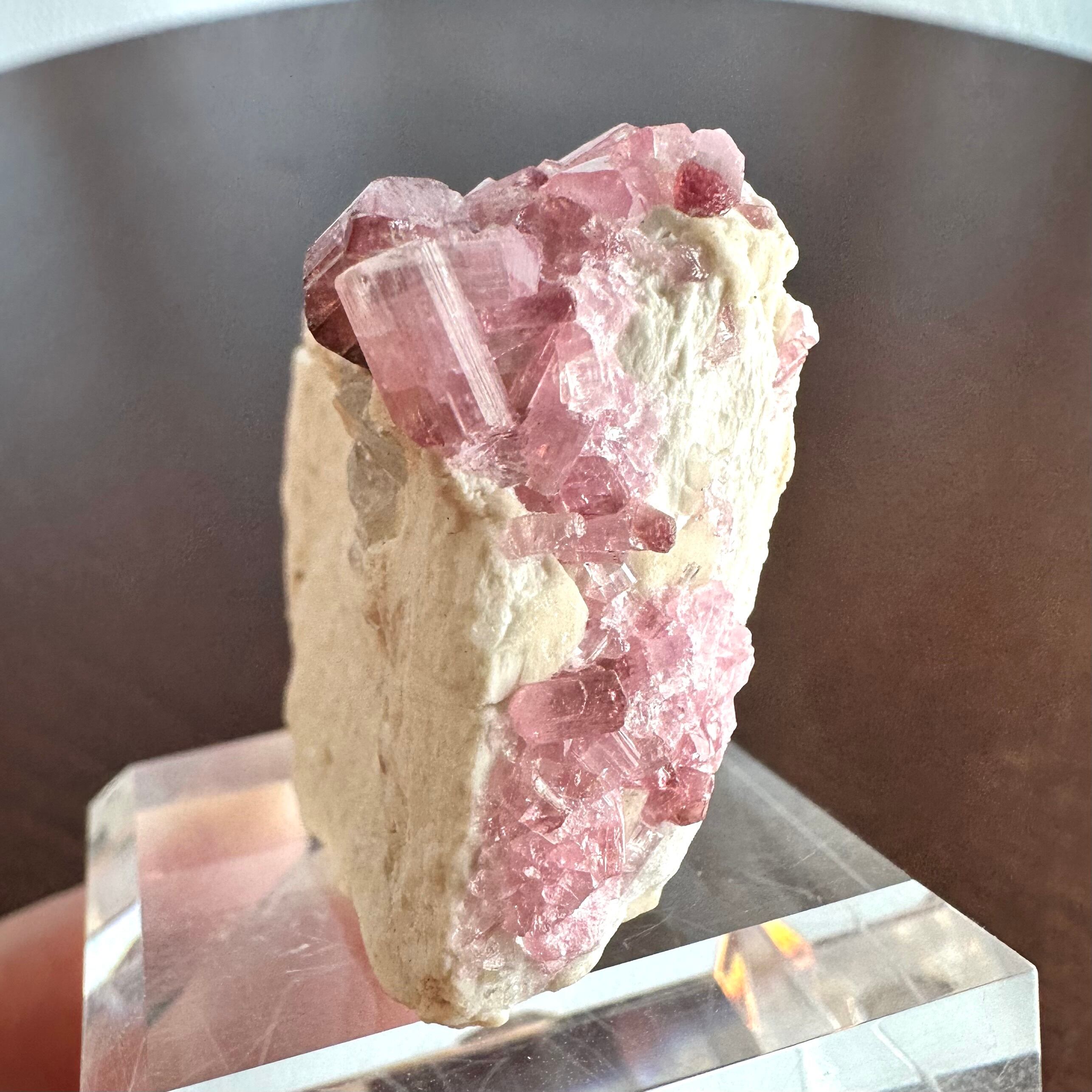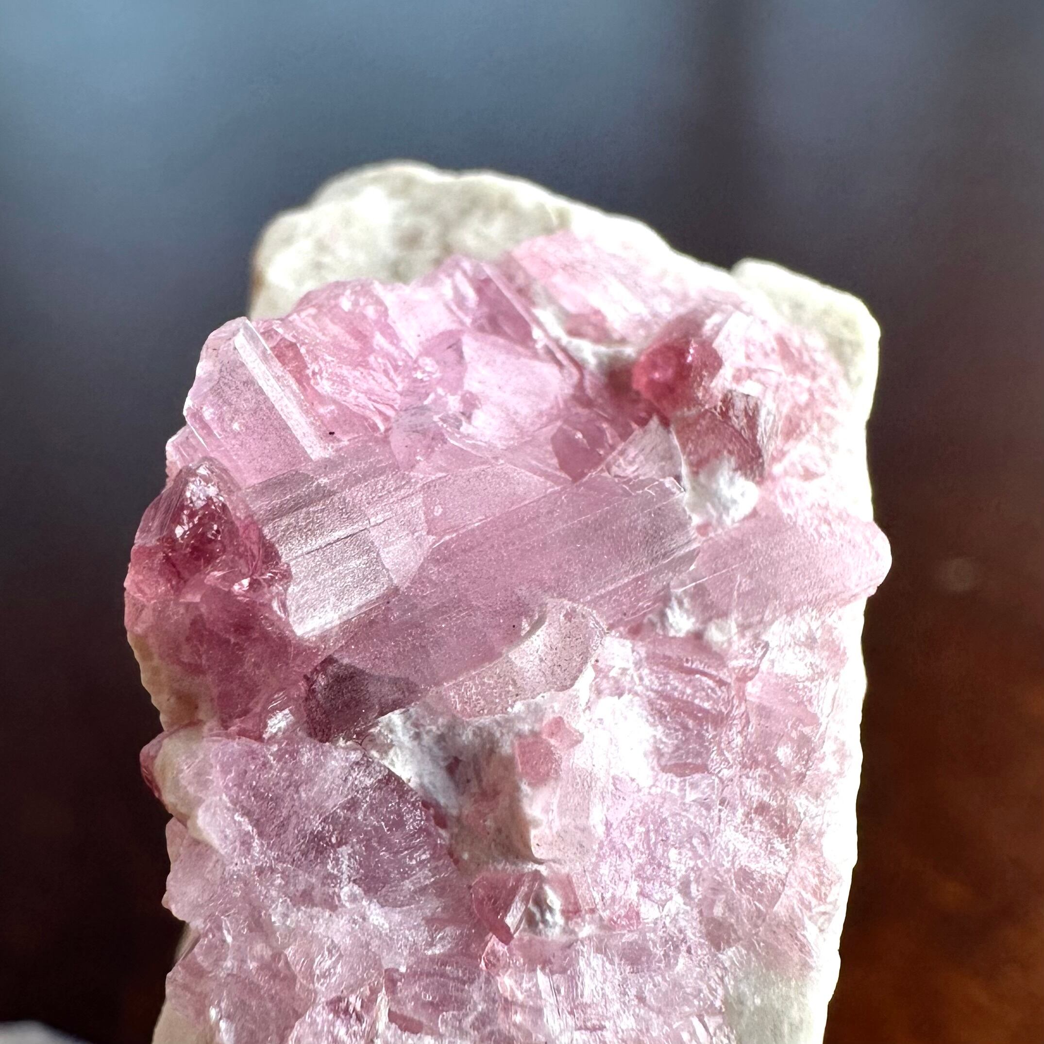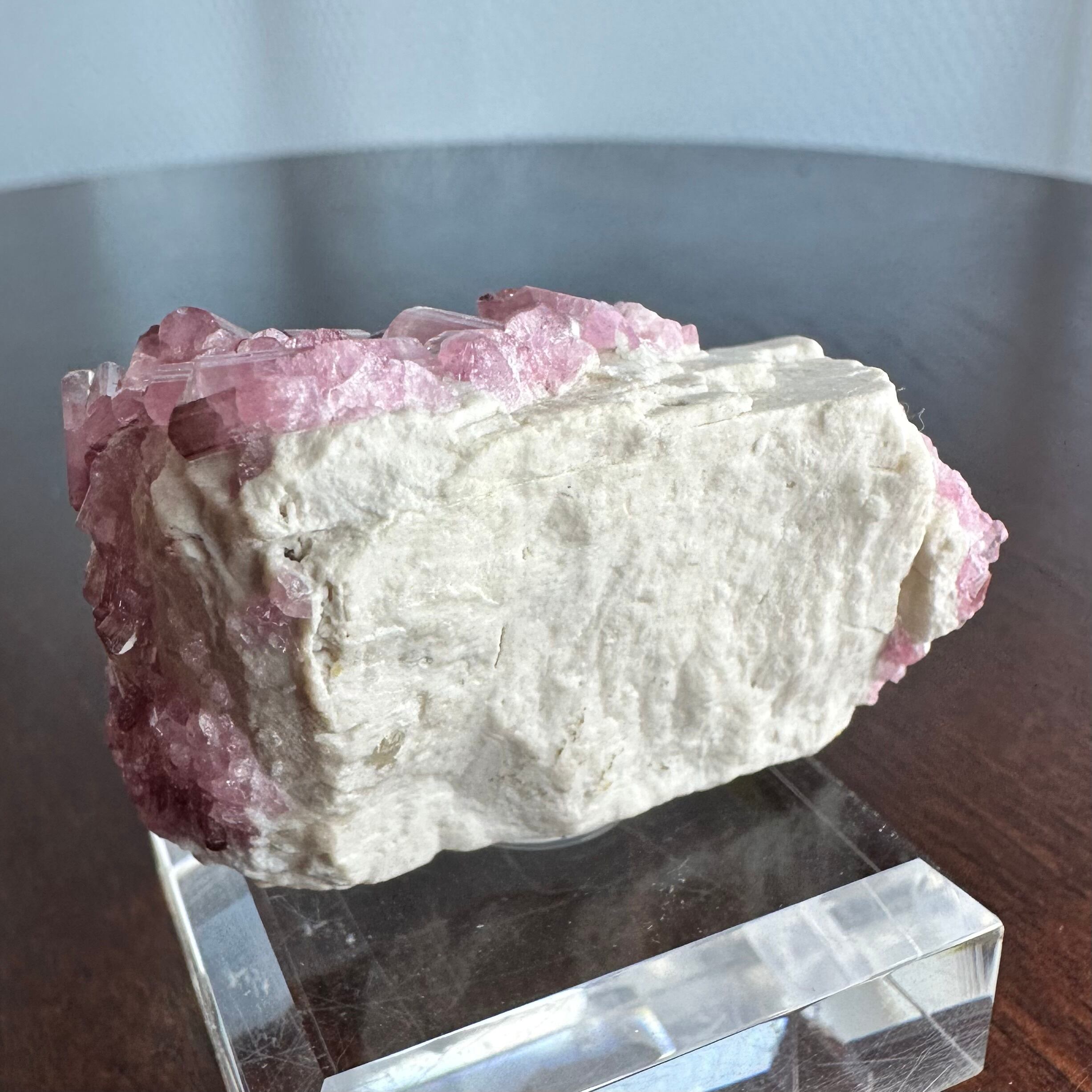 ルベライト表記ですが実際にはピンクトルマリンと呼ぶべき部分の方が多めの、ピンクからレッドの発色が白い母岩に映えるミャンマー産の標本です。