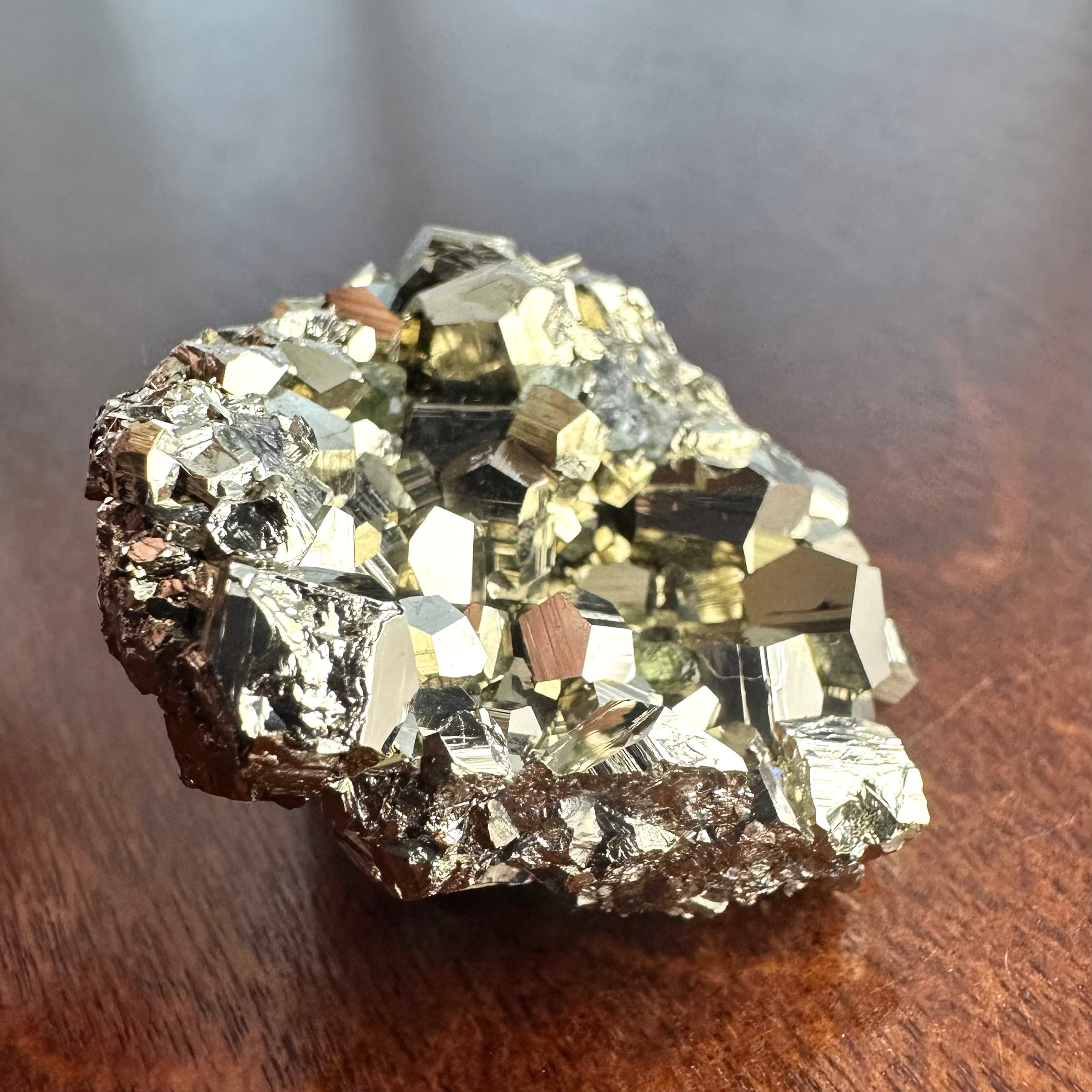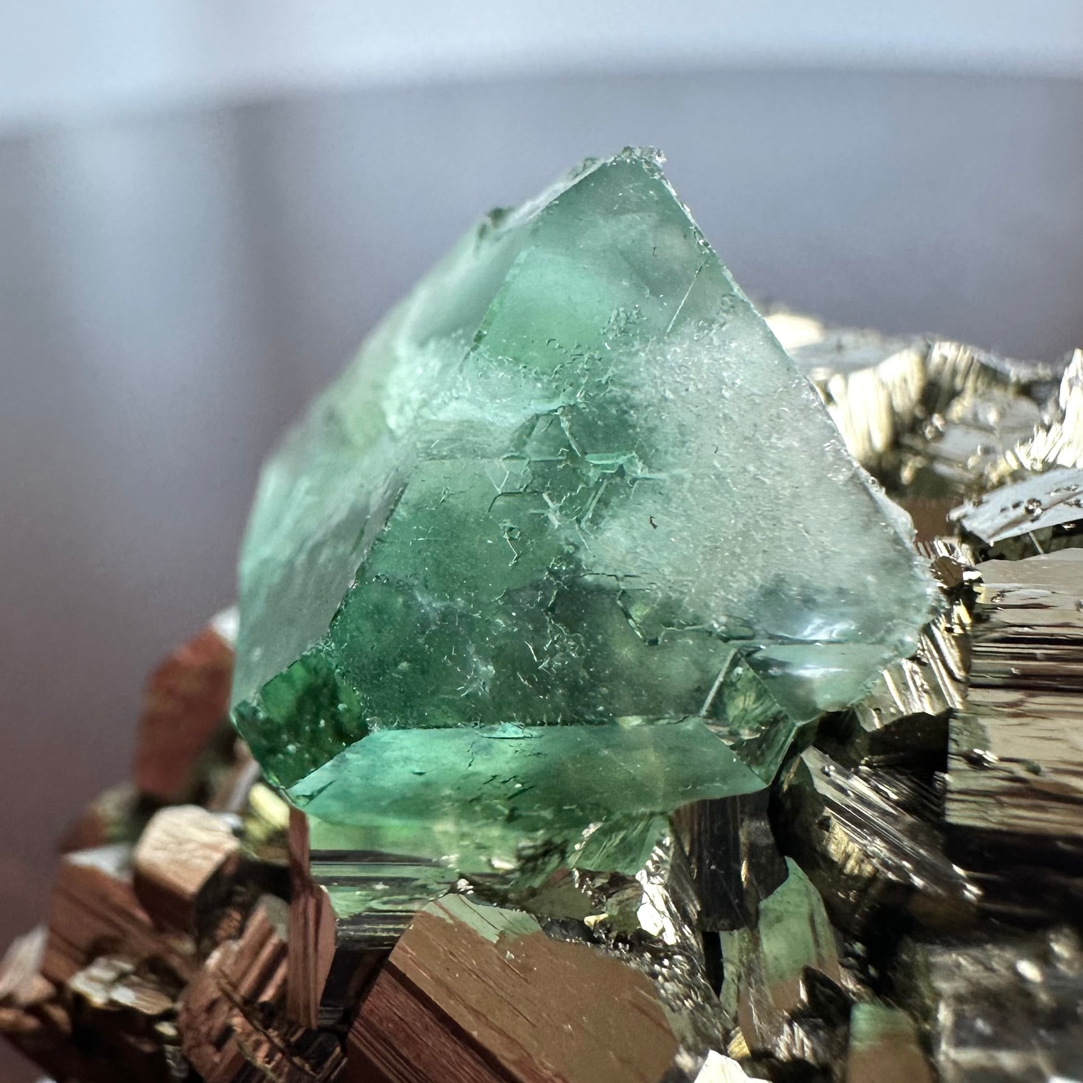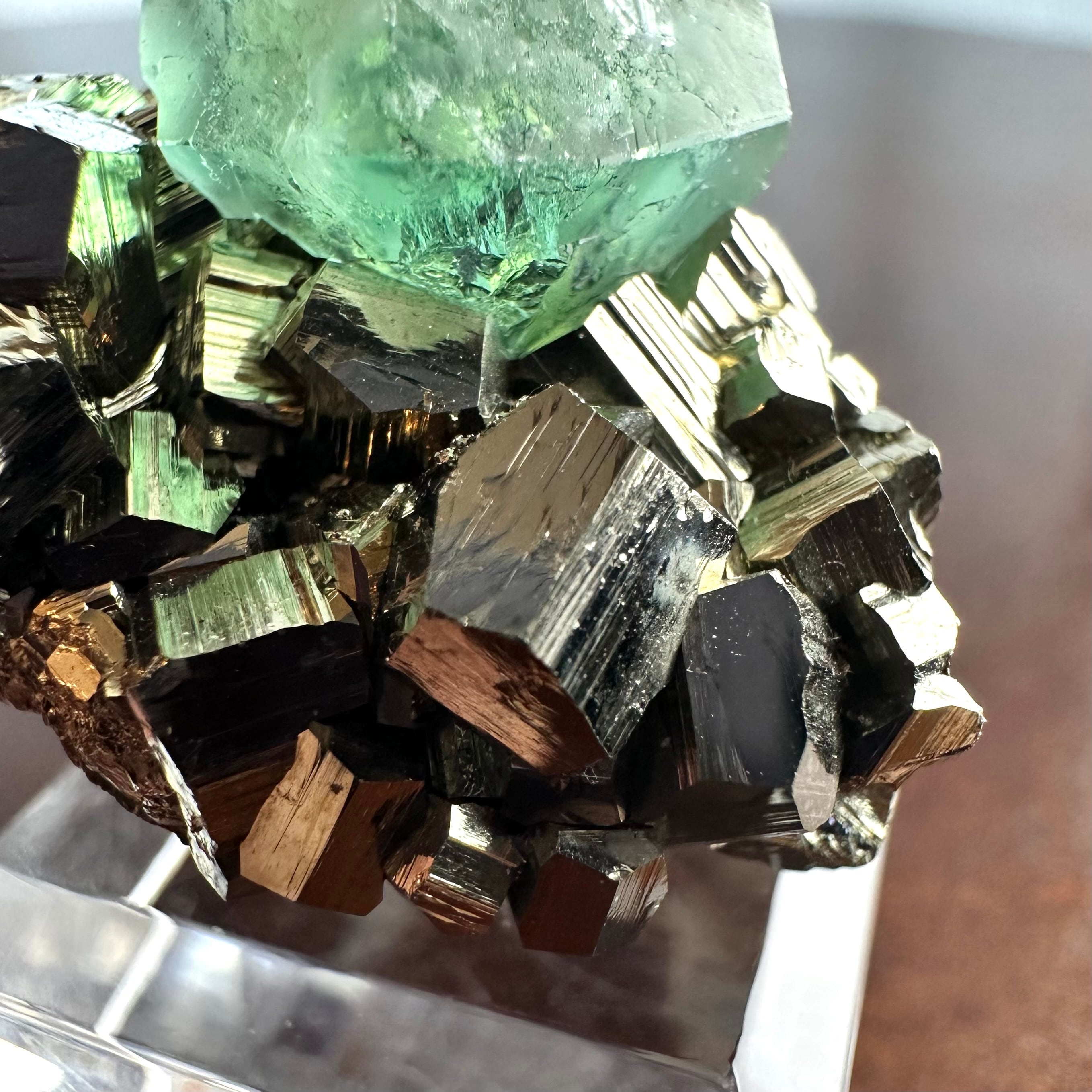 ペルー、Milpo Mineのグリーンフローライトとパイライトとのコンビネーションです。