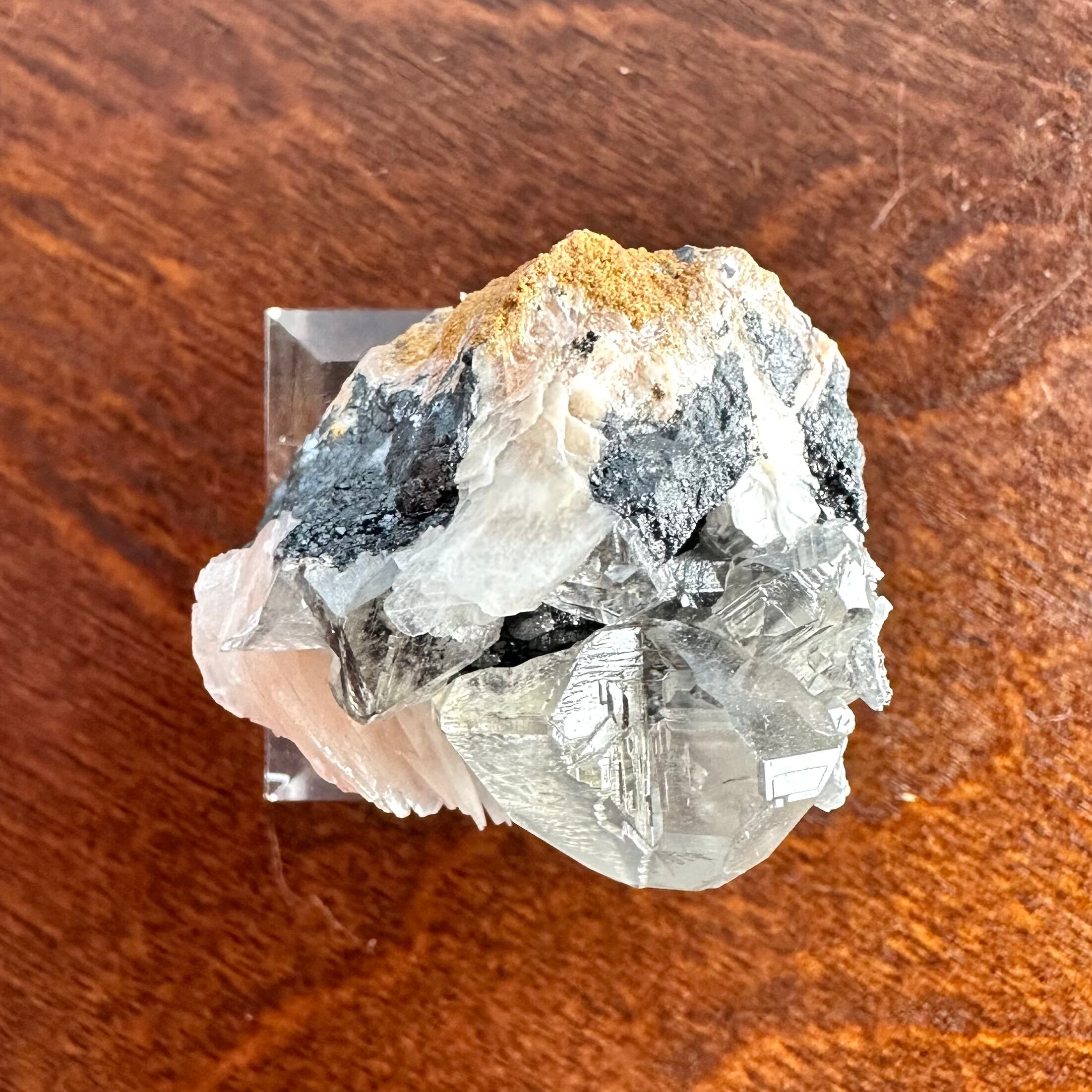 ここ数年流通をよく見かけるようになった、ガレナ上のセルサイトとバライトのコンビネーション、モロッコ産です。