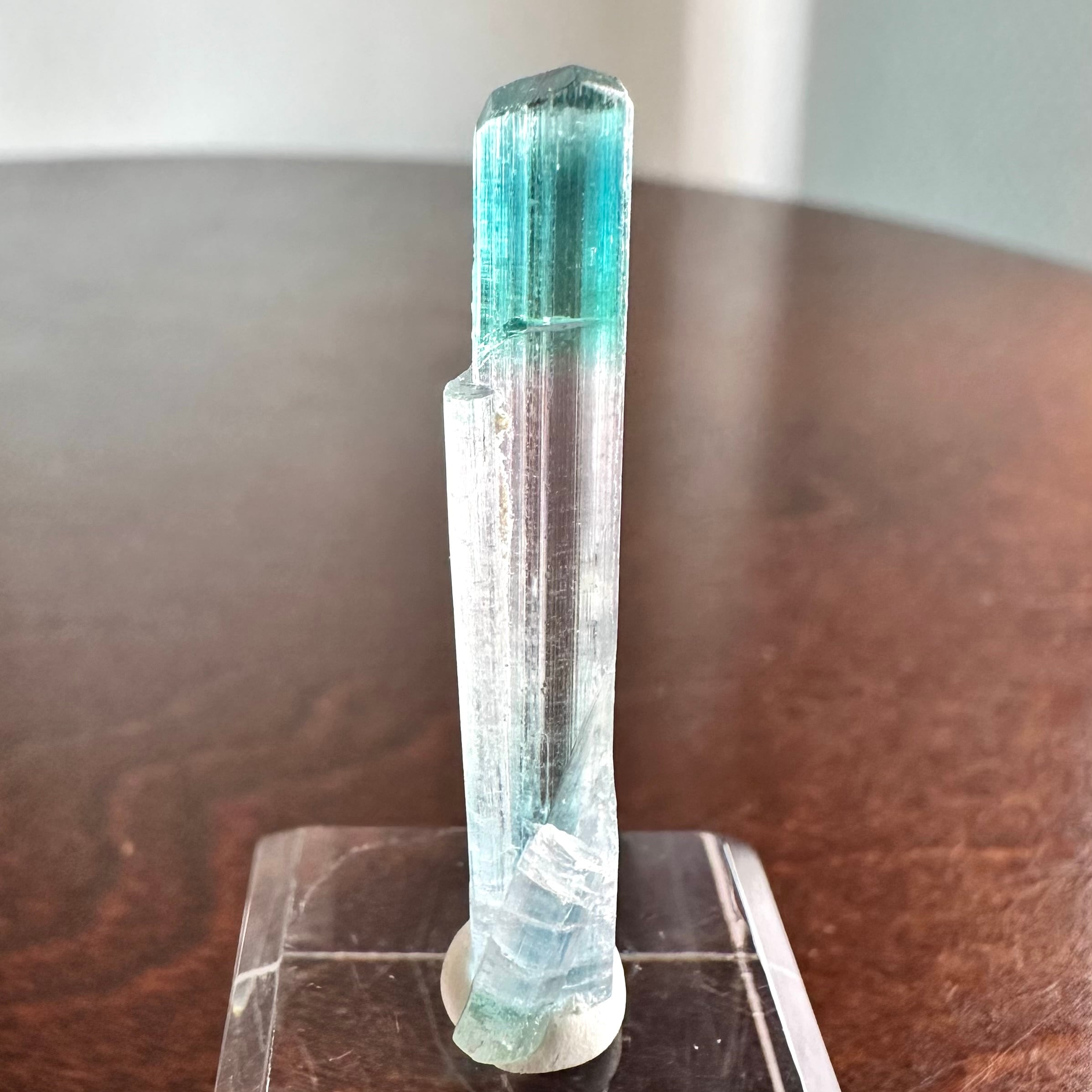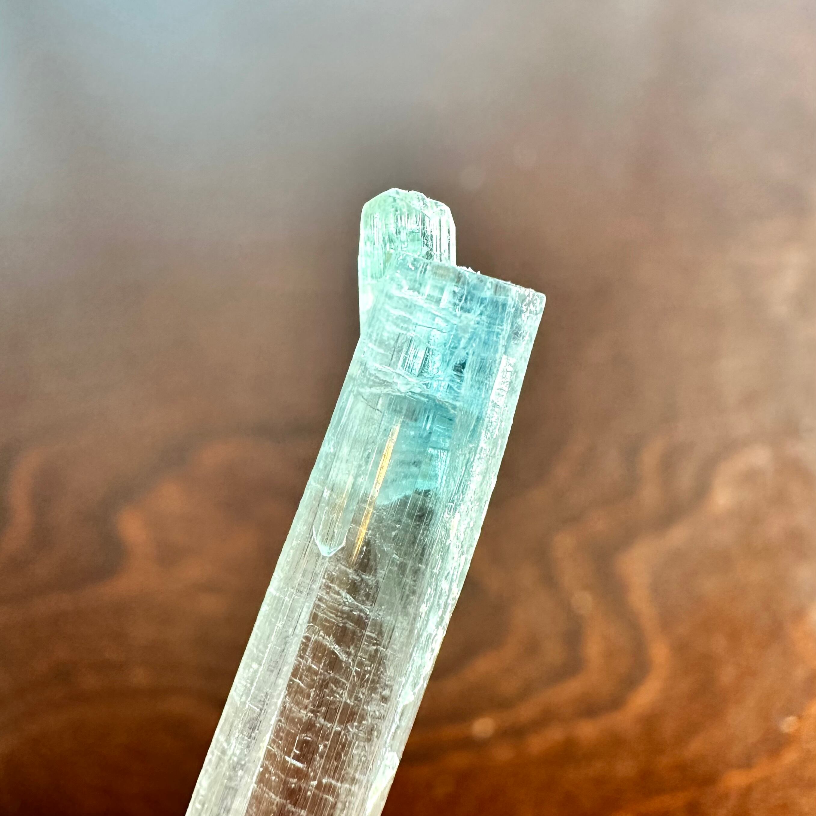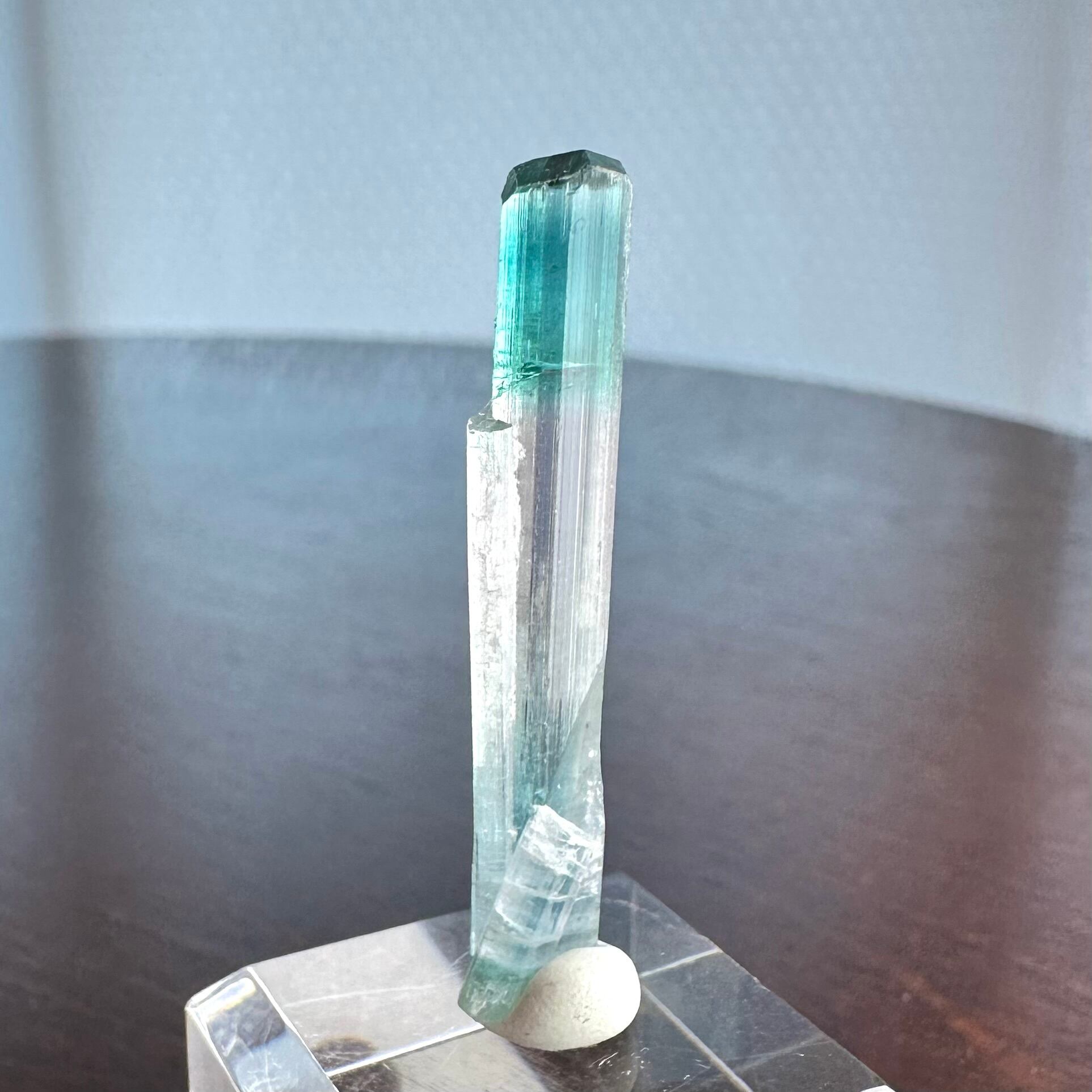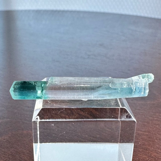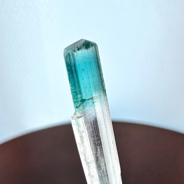 細身ながら発色の良さから存在感があり、両錐で片側には小さな結晶が見られます。