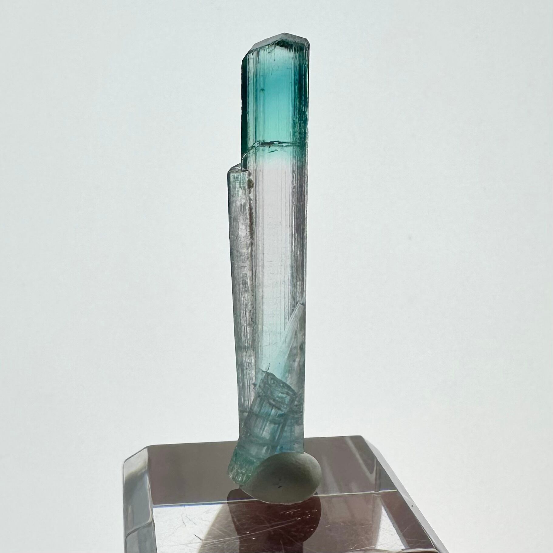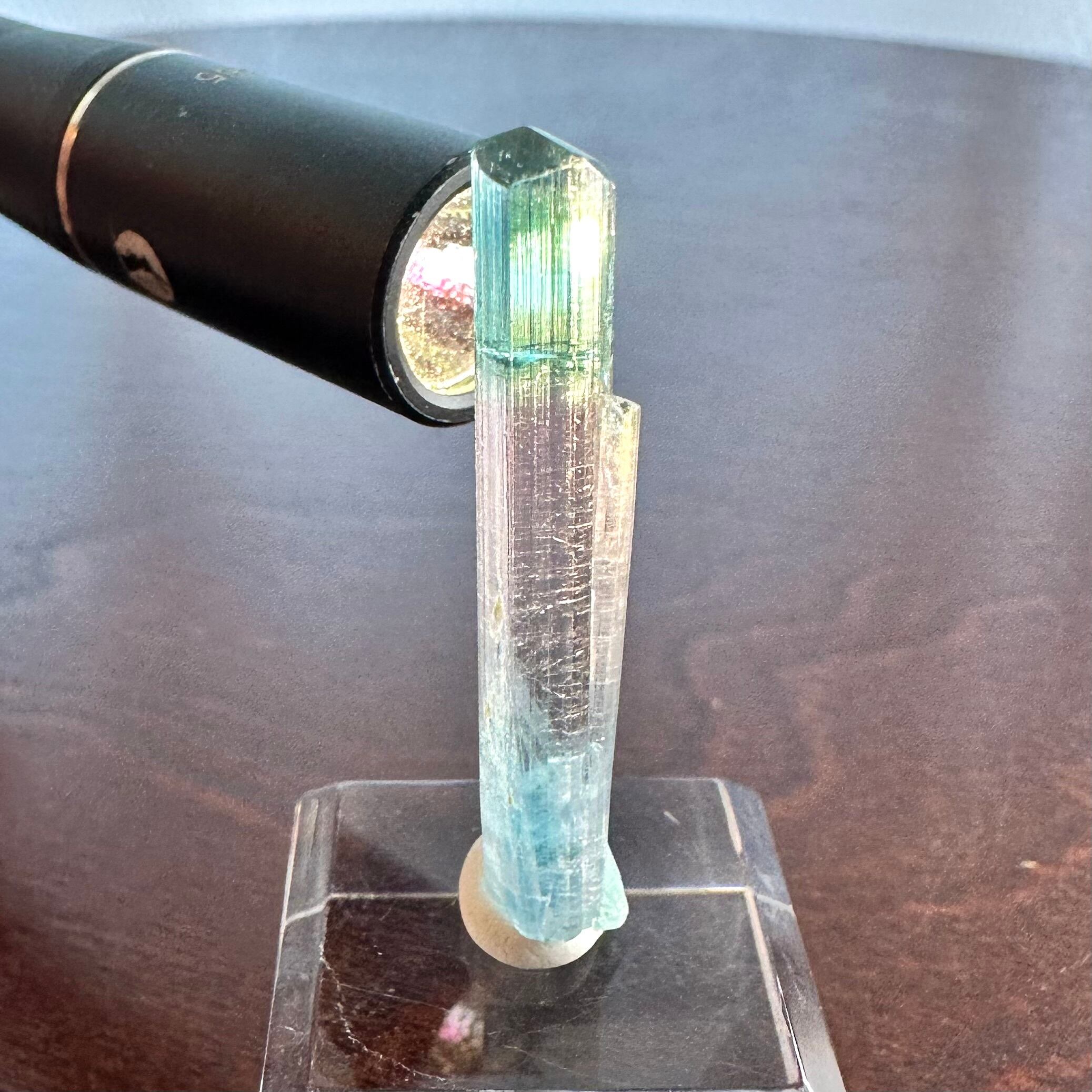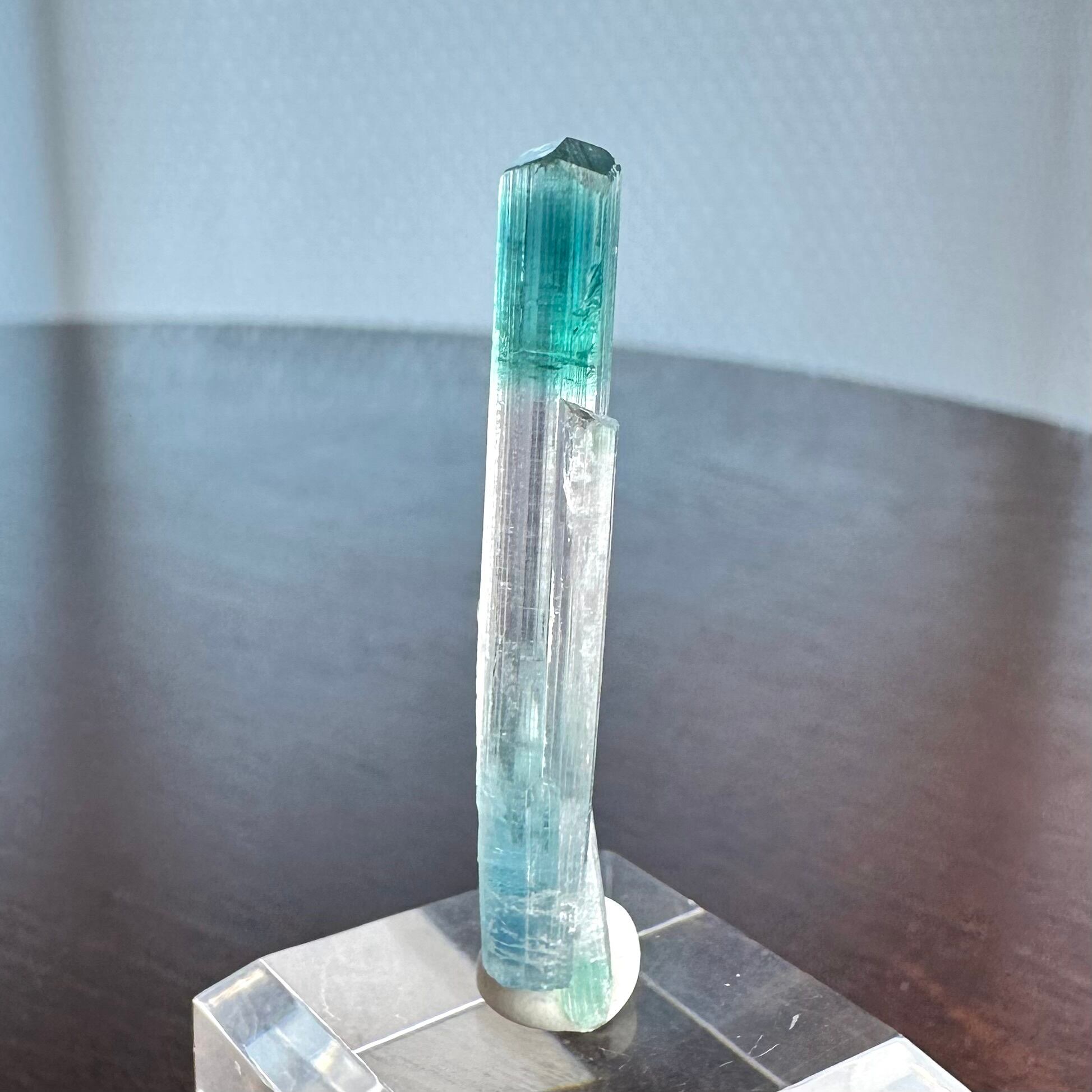 細身ながら発色の良さから存在感があり、両錐で片側には小さな結晶が見られます。