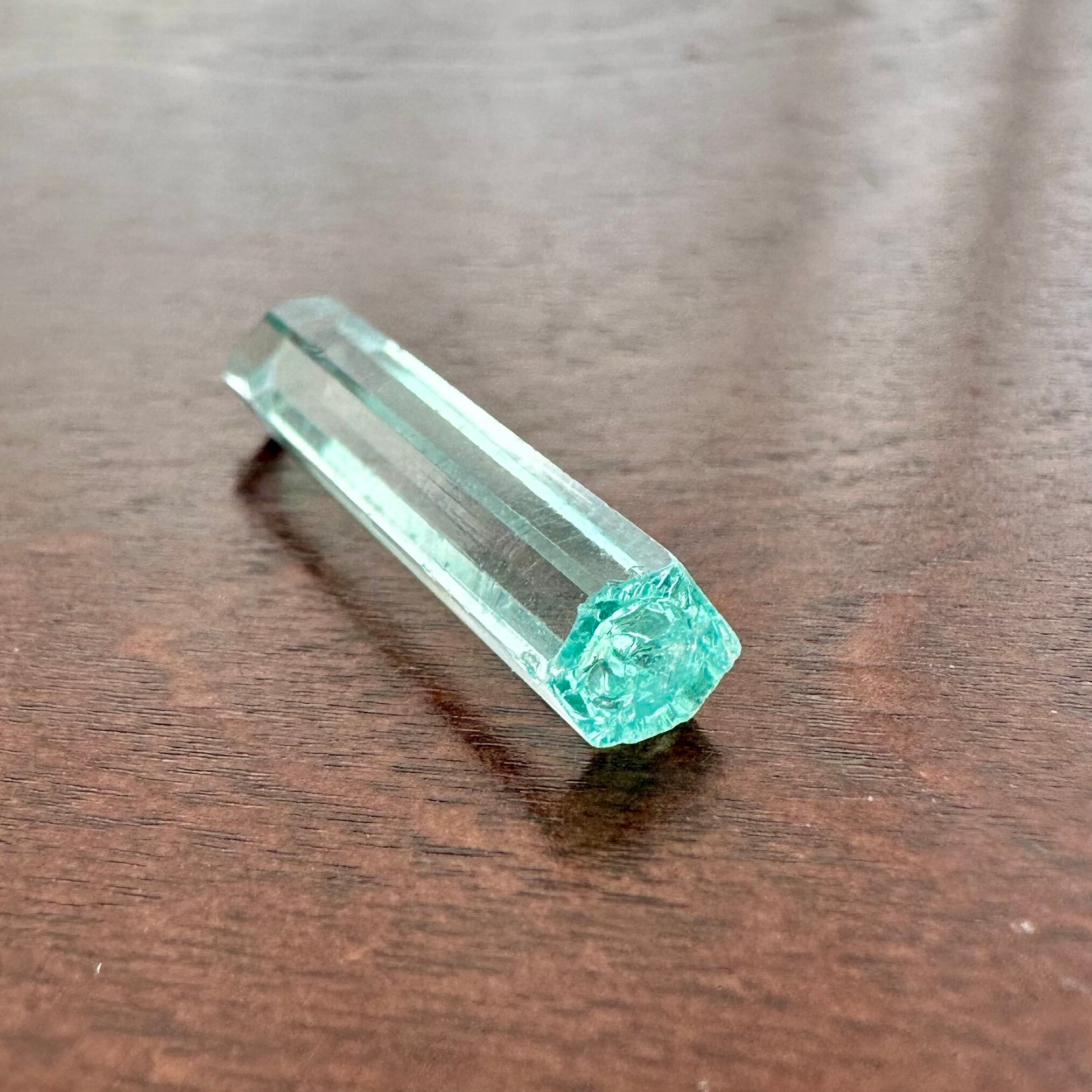 このエリアの、この発色のものはグリーンベリルやバナジウムベリルと呼ばれることもありますが、今回は青みが強めでトップが美しく残り、ダメージが極力少ないものを厳選して選びました。