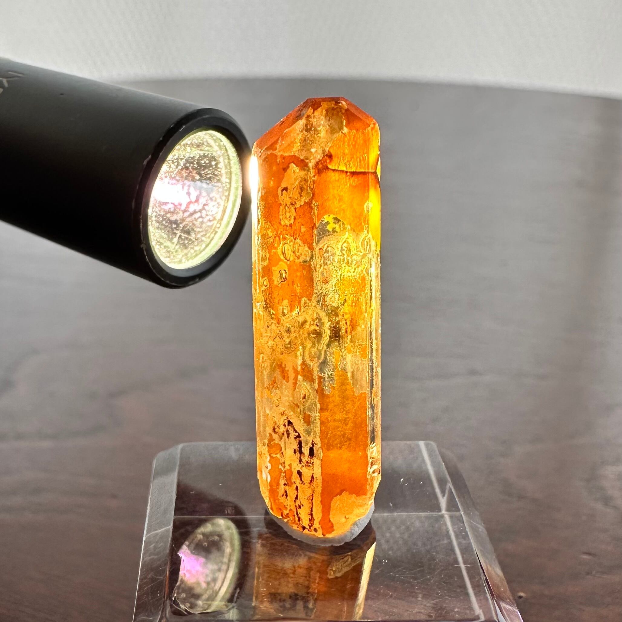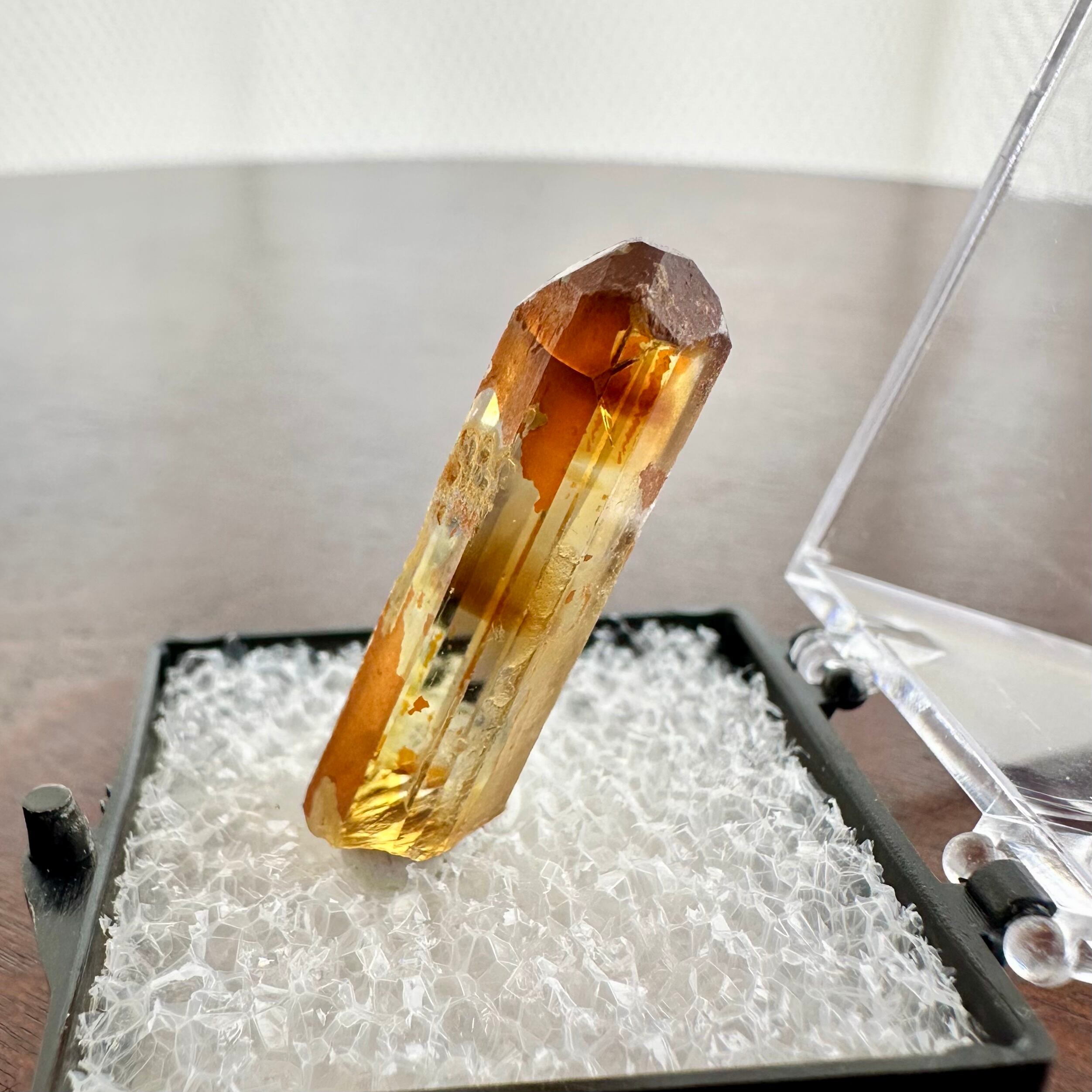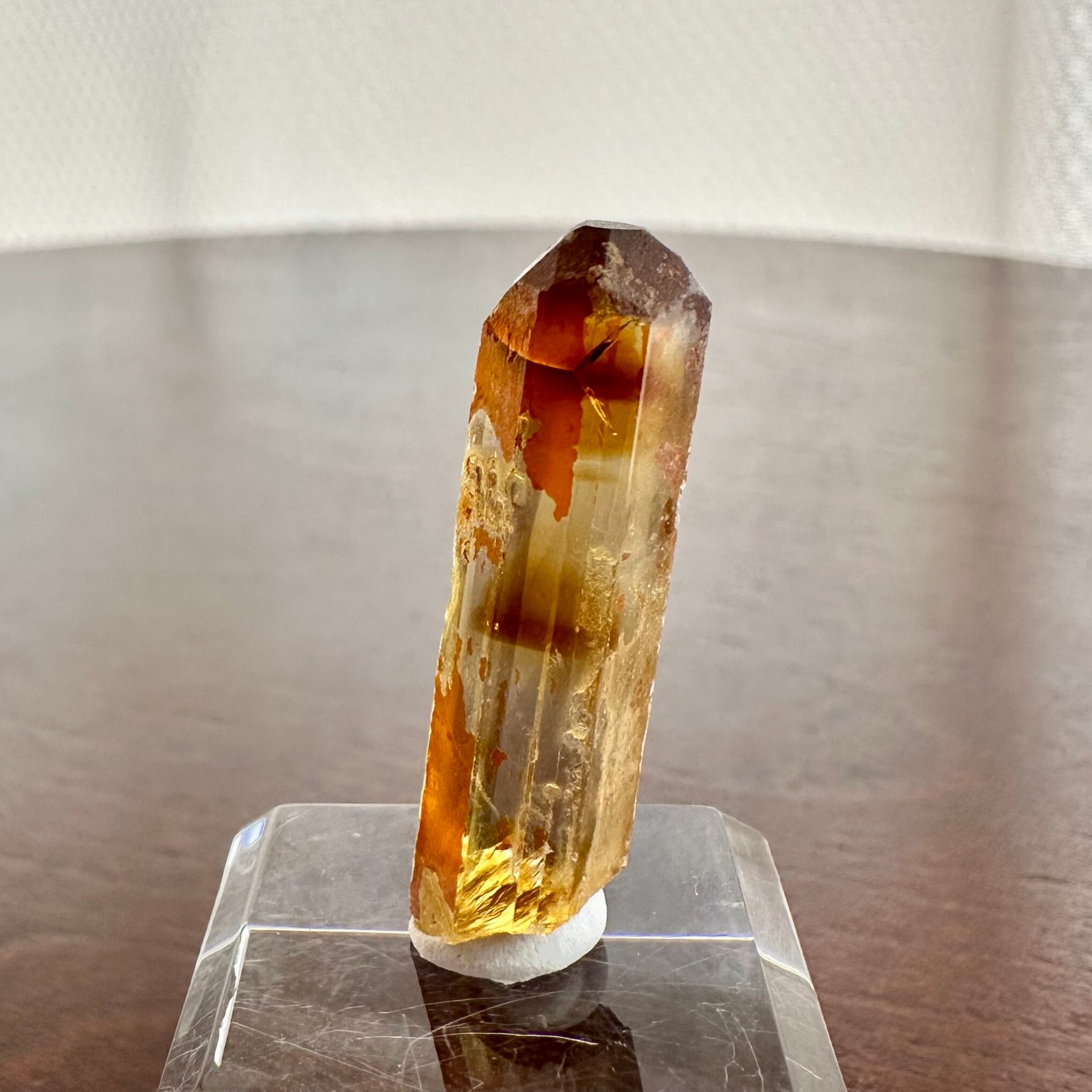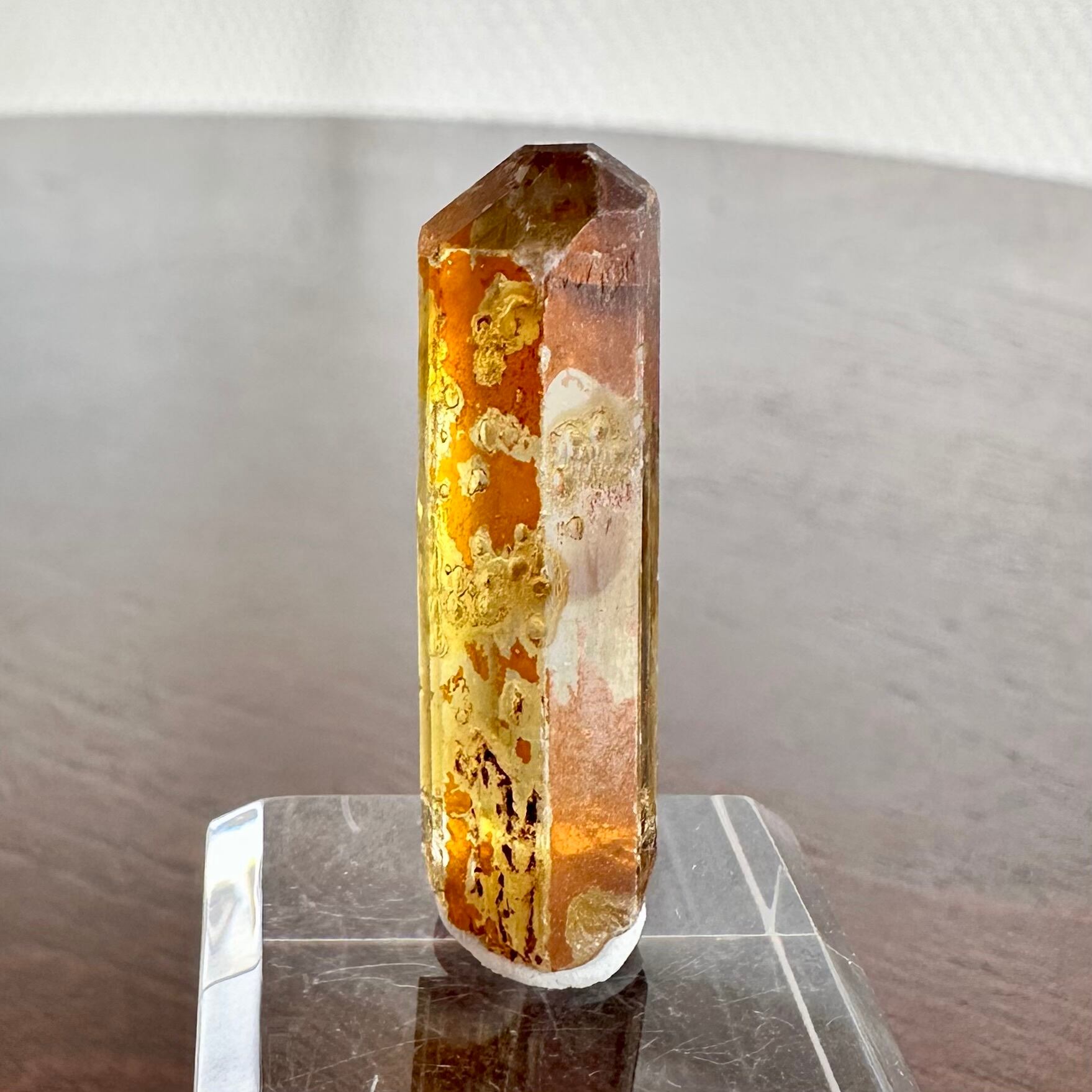 ハニーカラーの結晶は表面の付着物で発色が増強されているようで、その濃淡の具合もユニークです。