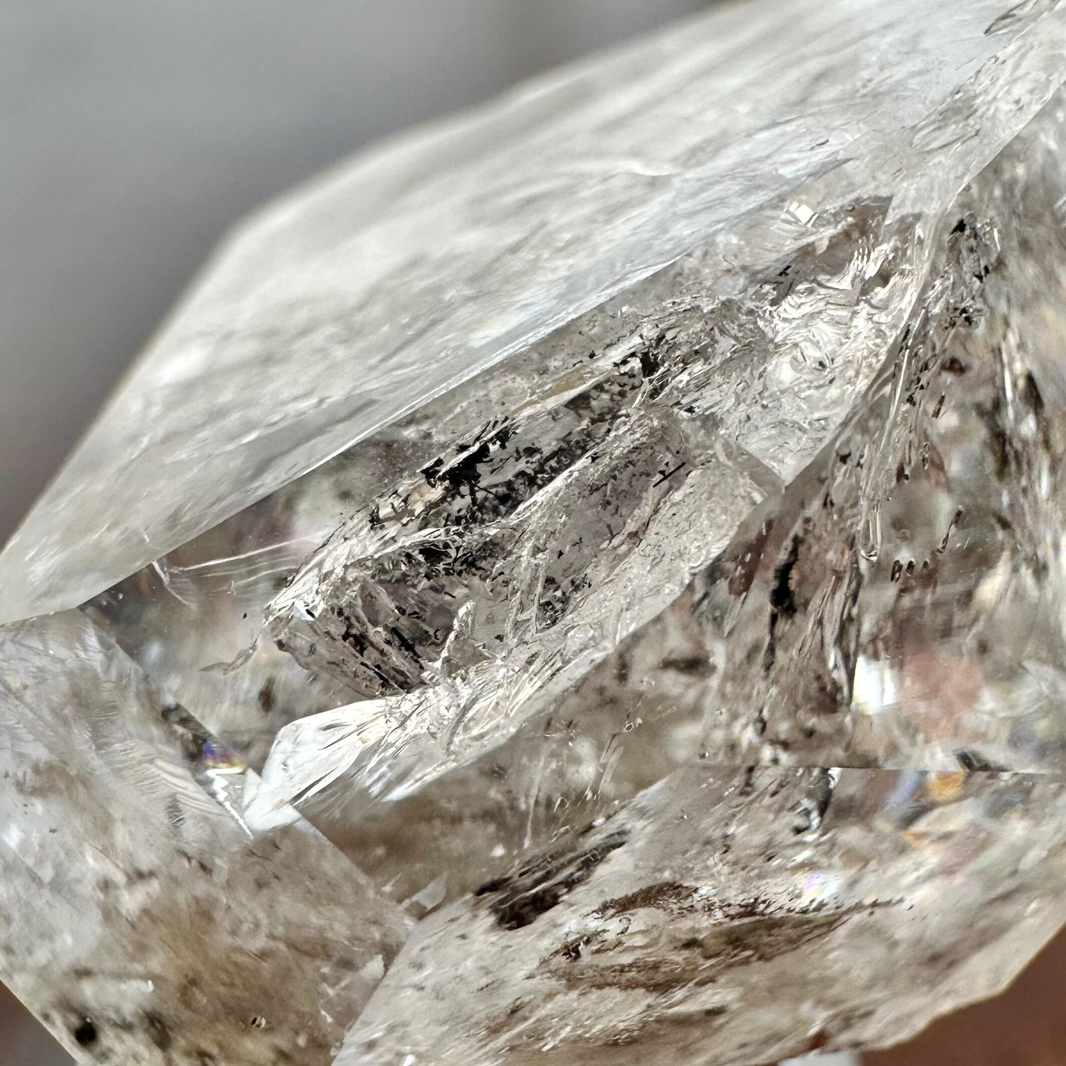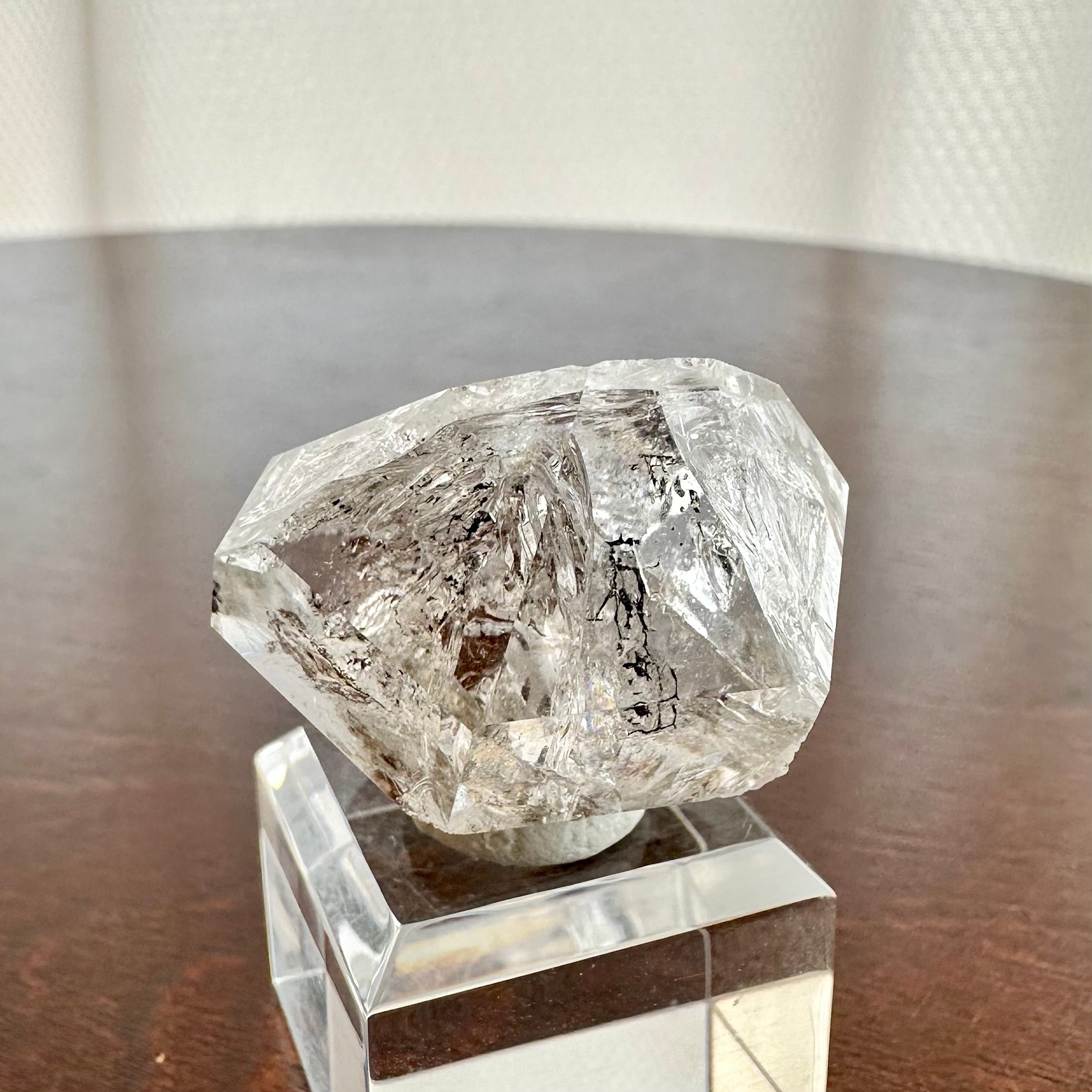 ハーキマーによく見られるタールのような黒い付着物も残りますが、クリアな結晶を際立たせているかもしれませんね。