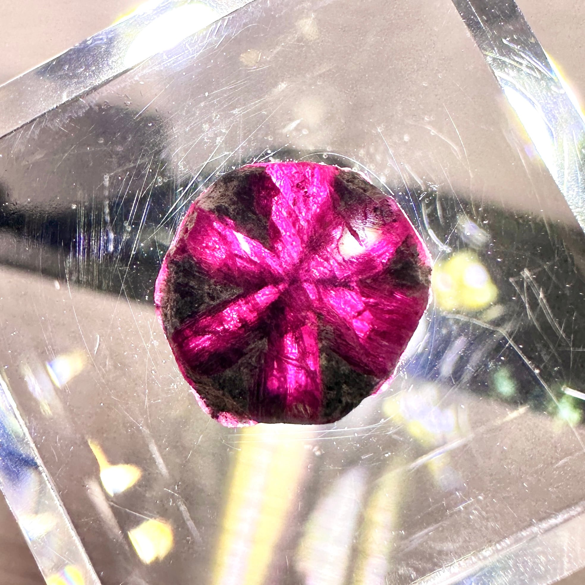 ミャンマー産のトラピッチェルビーです、スライス後に研磨されています。