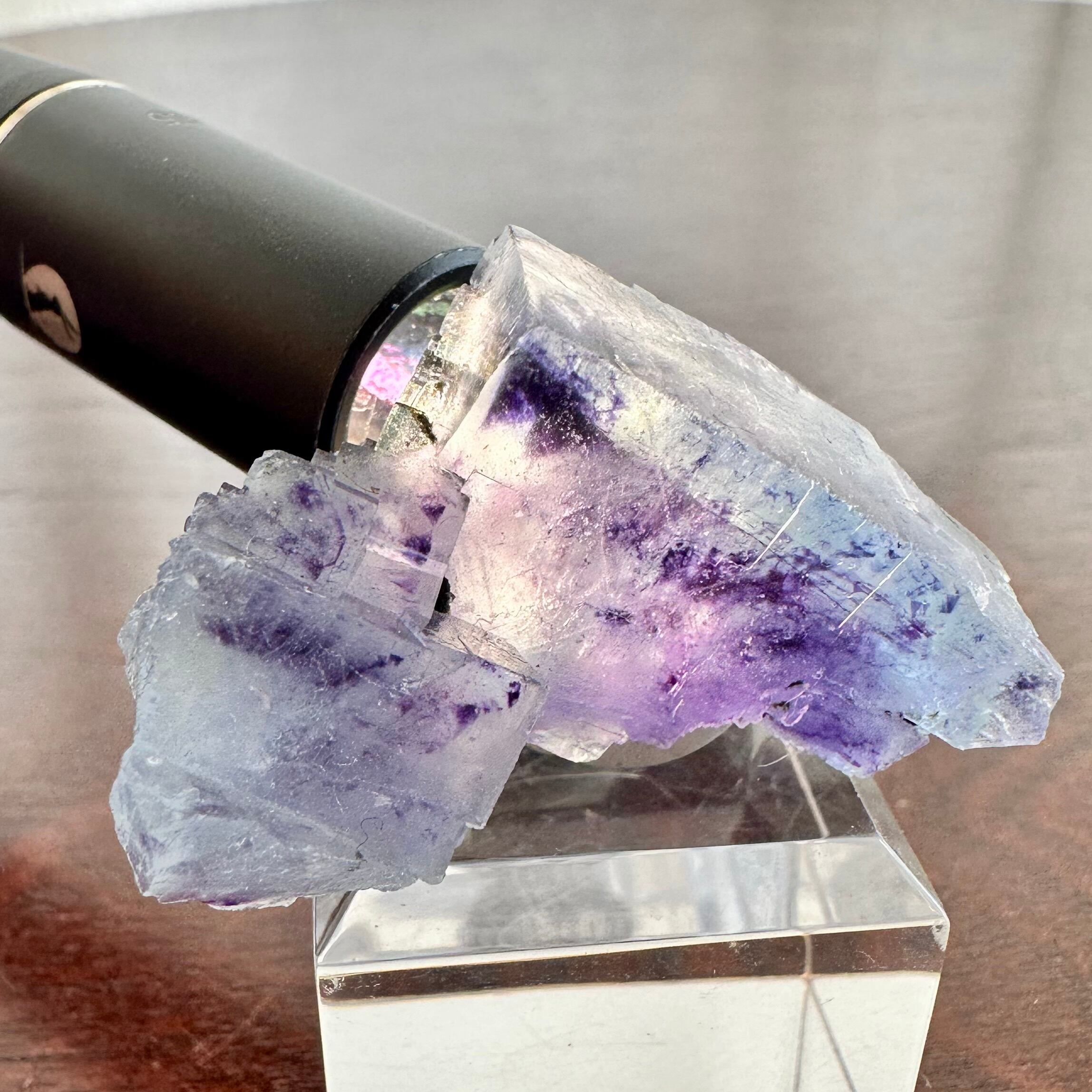 ブルーをメインにパープルやグリーンの発色が混在し、それが独特な模様のように見え、透明感とテリも良好です。