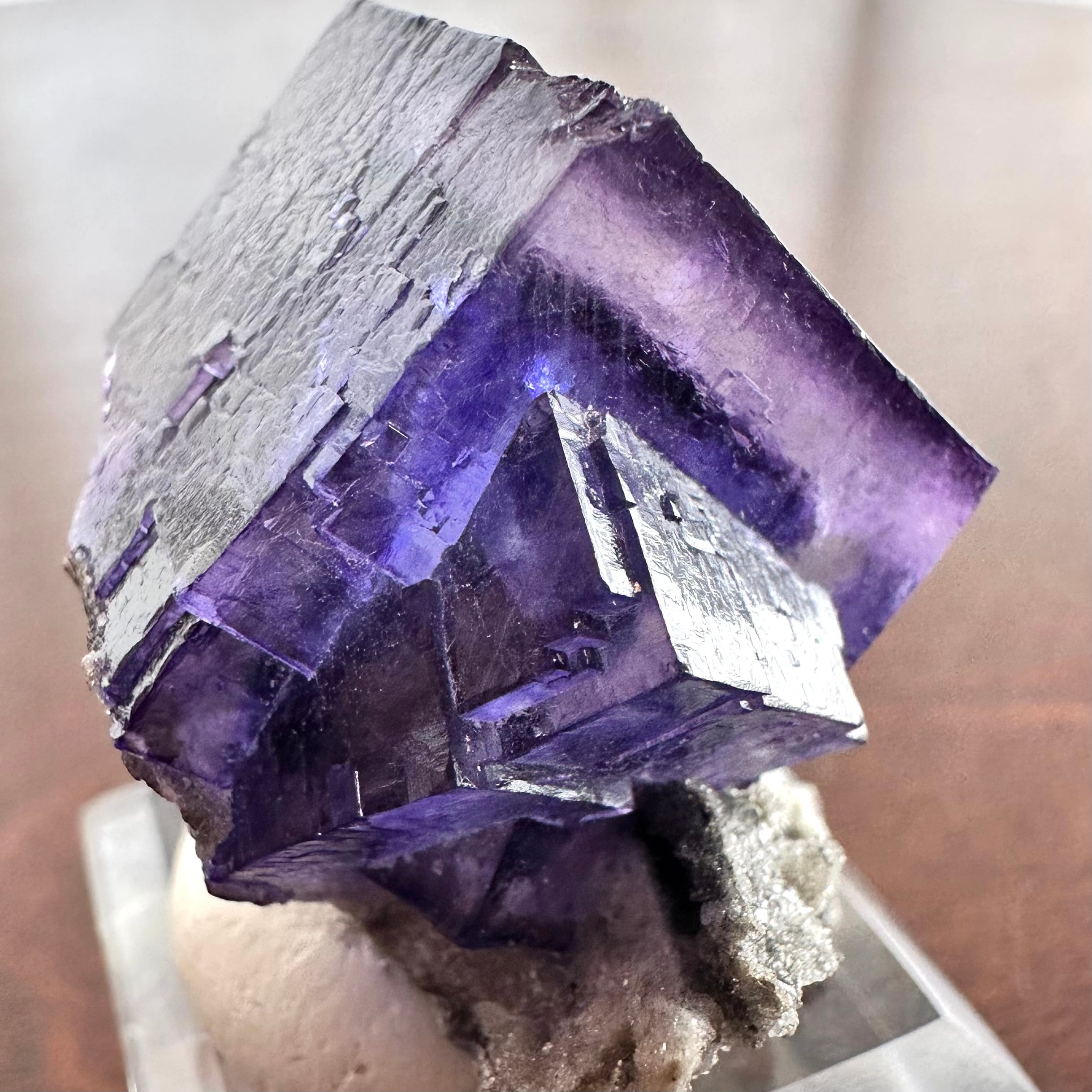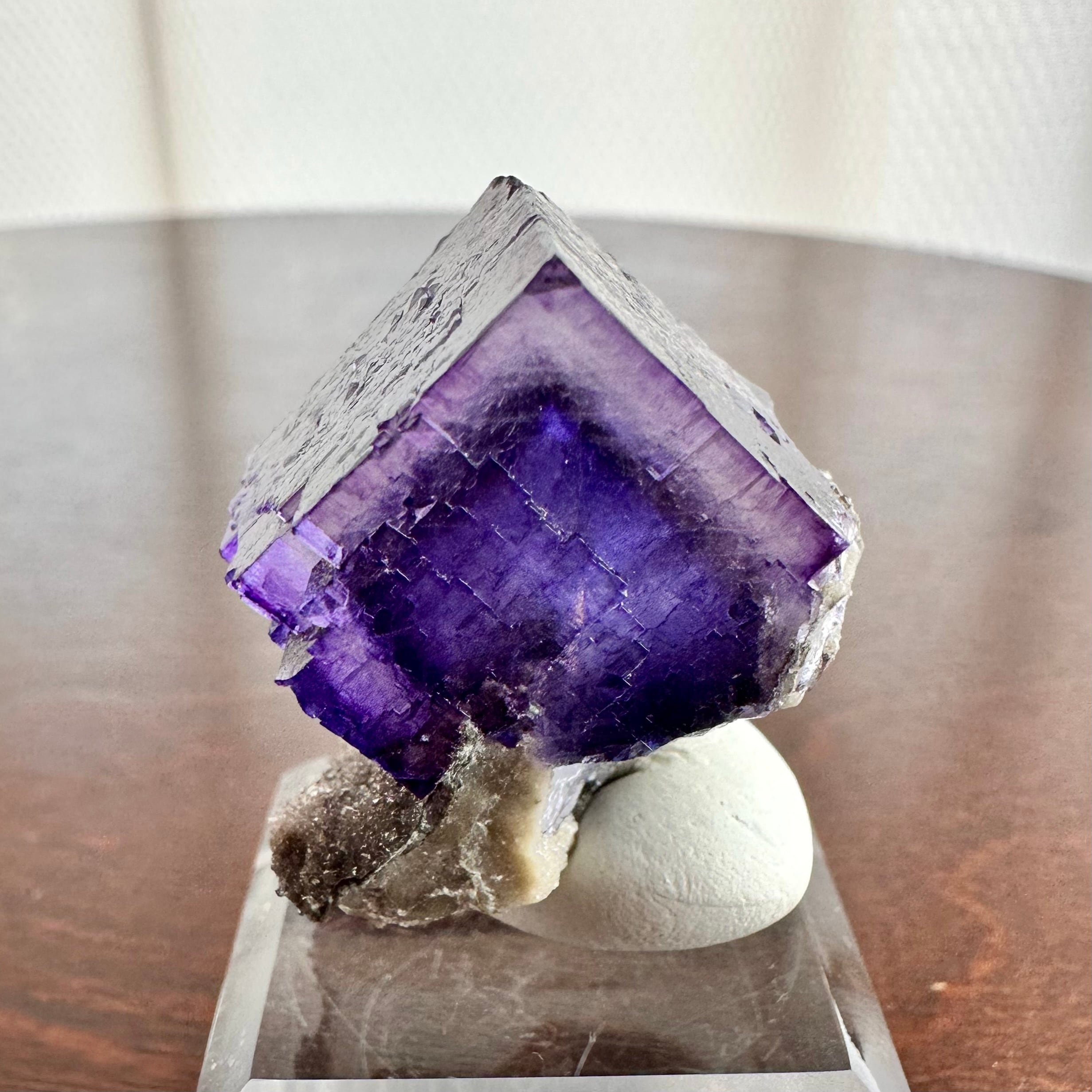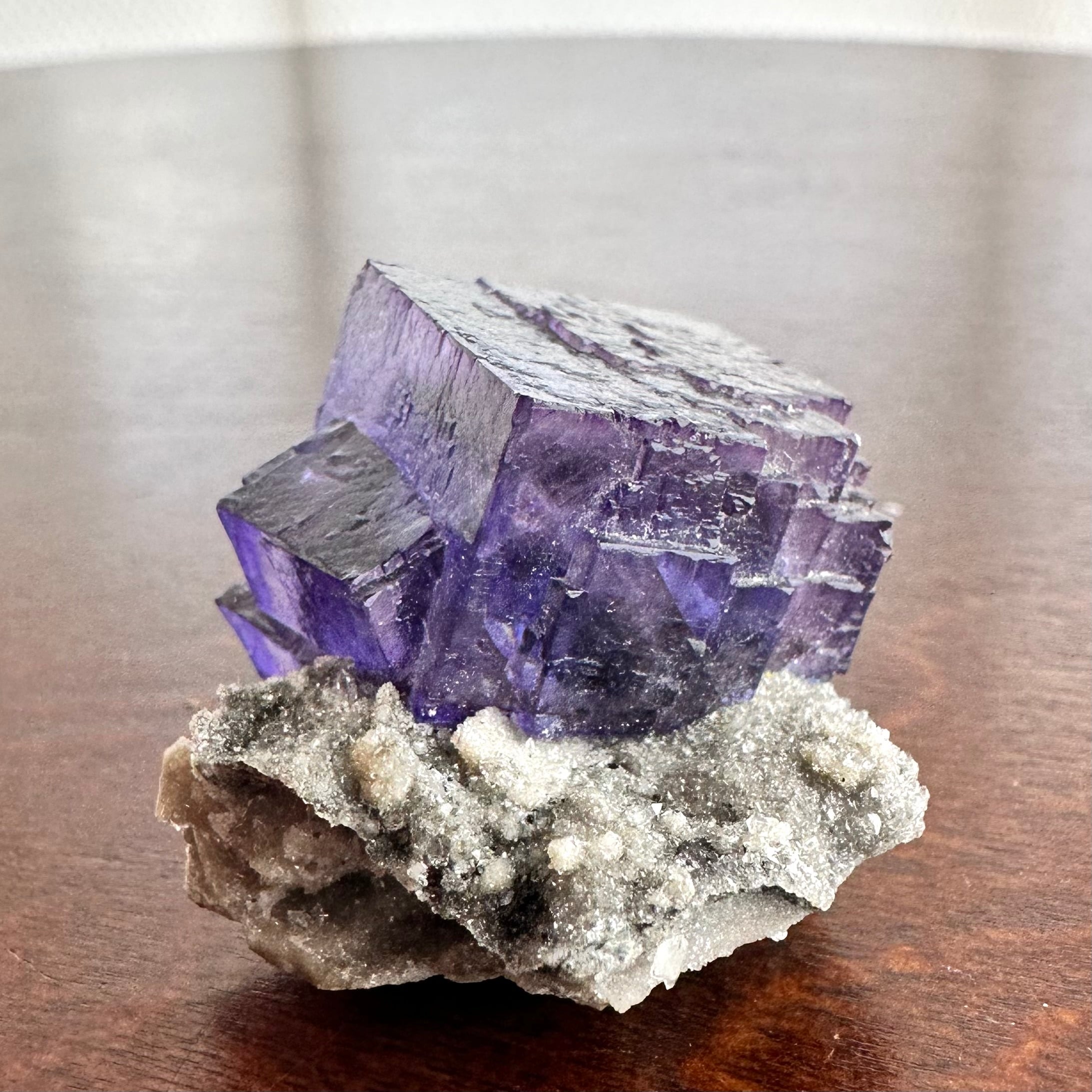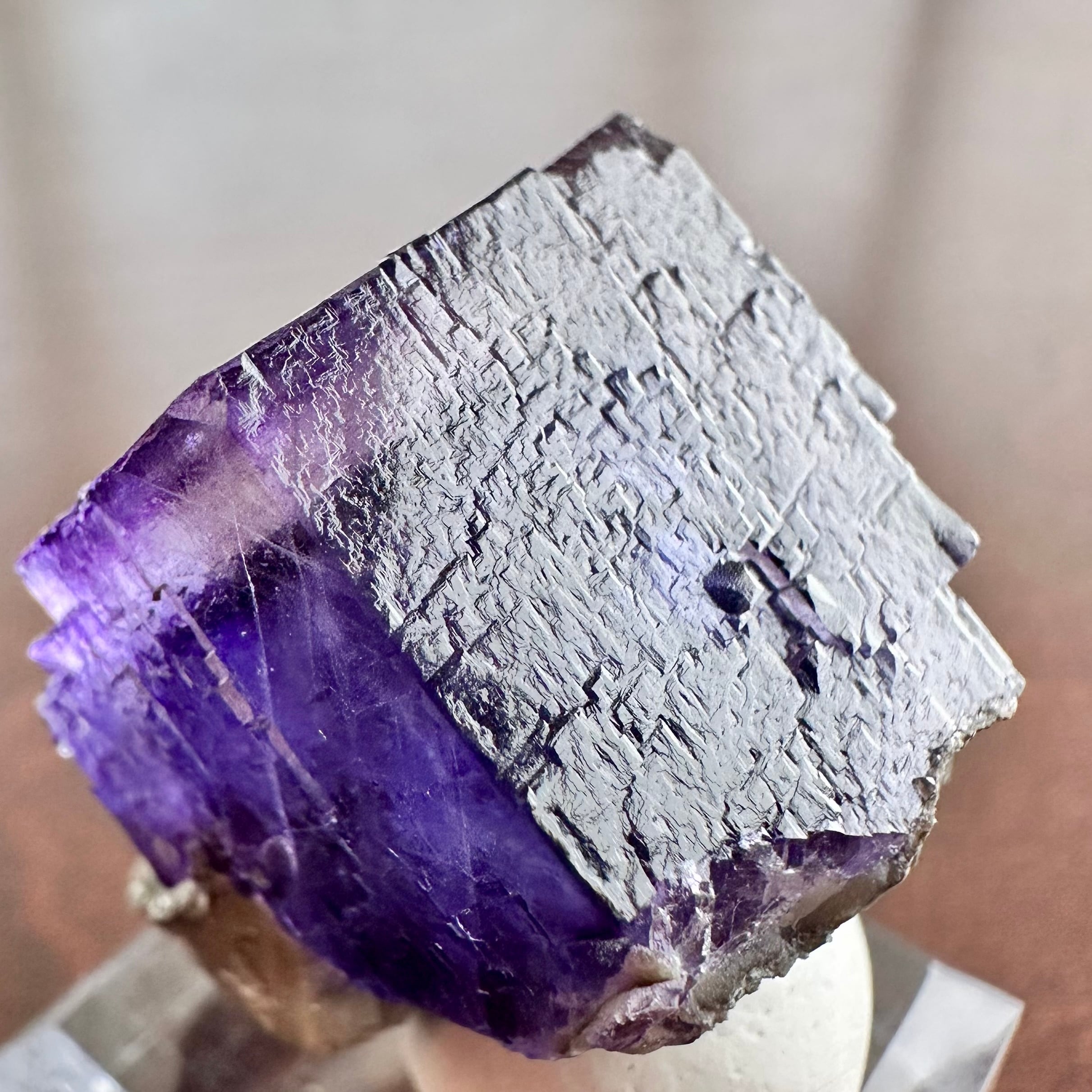 比較的流通量は多めの産地ながら、閉山した話も毎年流れつつ近年では良品が少ない中、この標本は結晶表面の凹凸の美しさや発色の良さ、何より美しいゾーニングが複数の面から見られるキューブ状の結晶のフォルムが魅力的です。