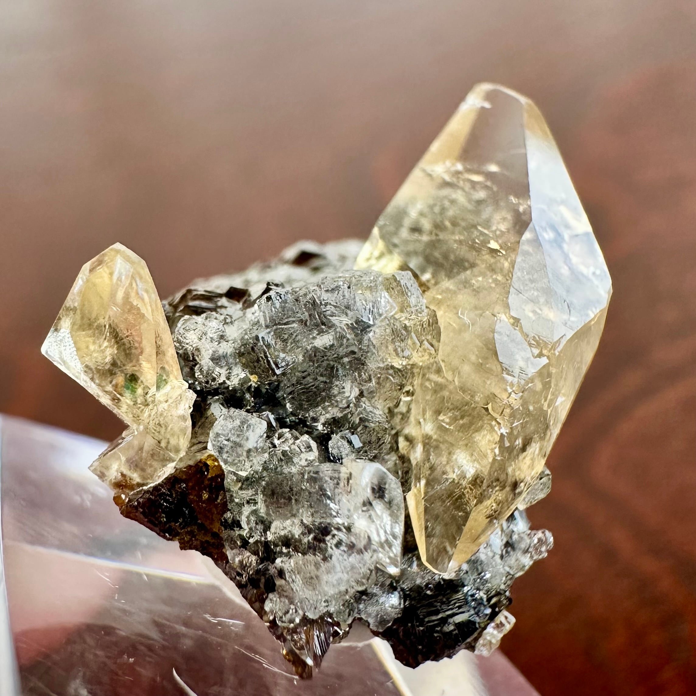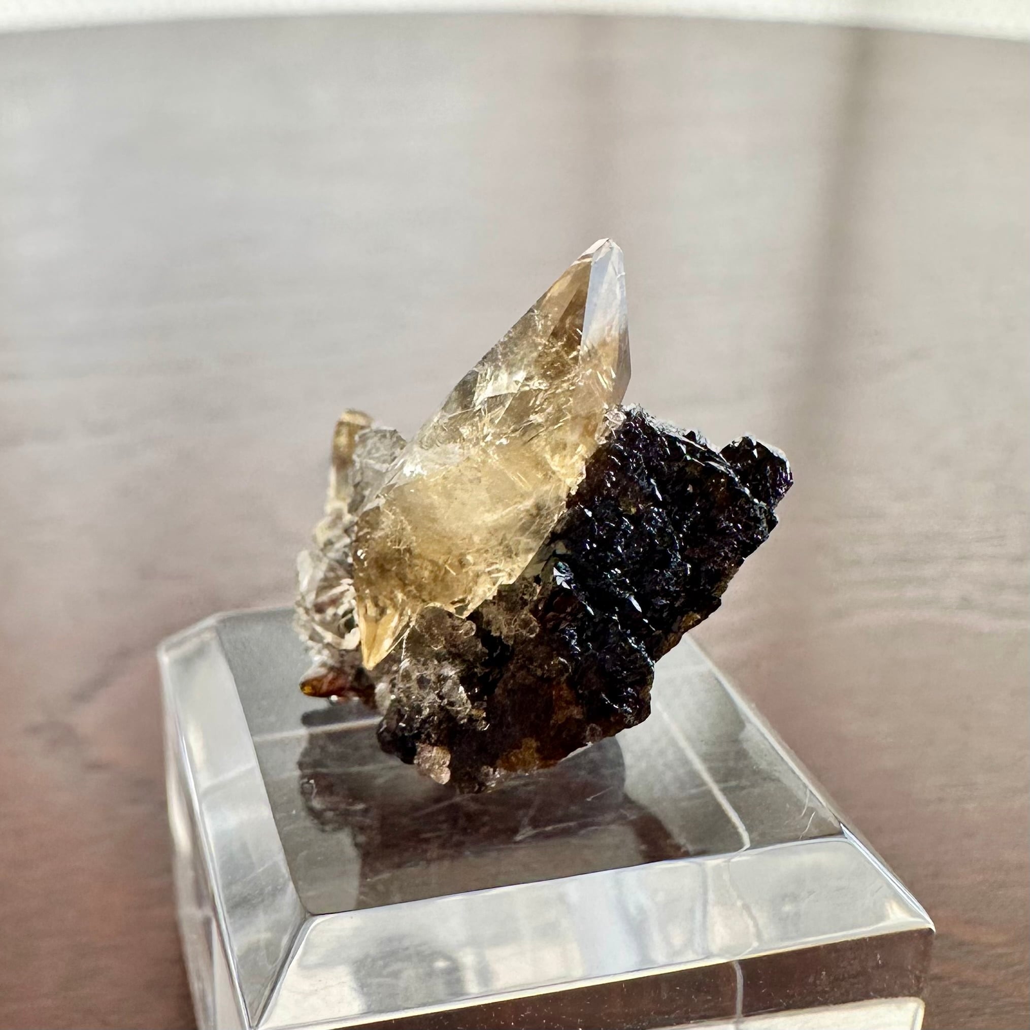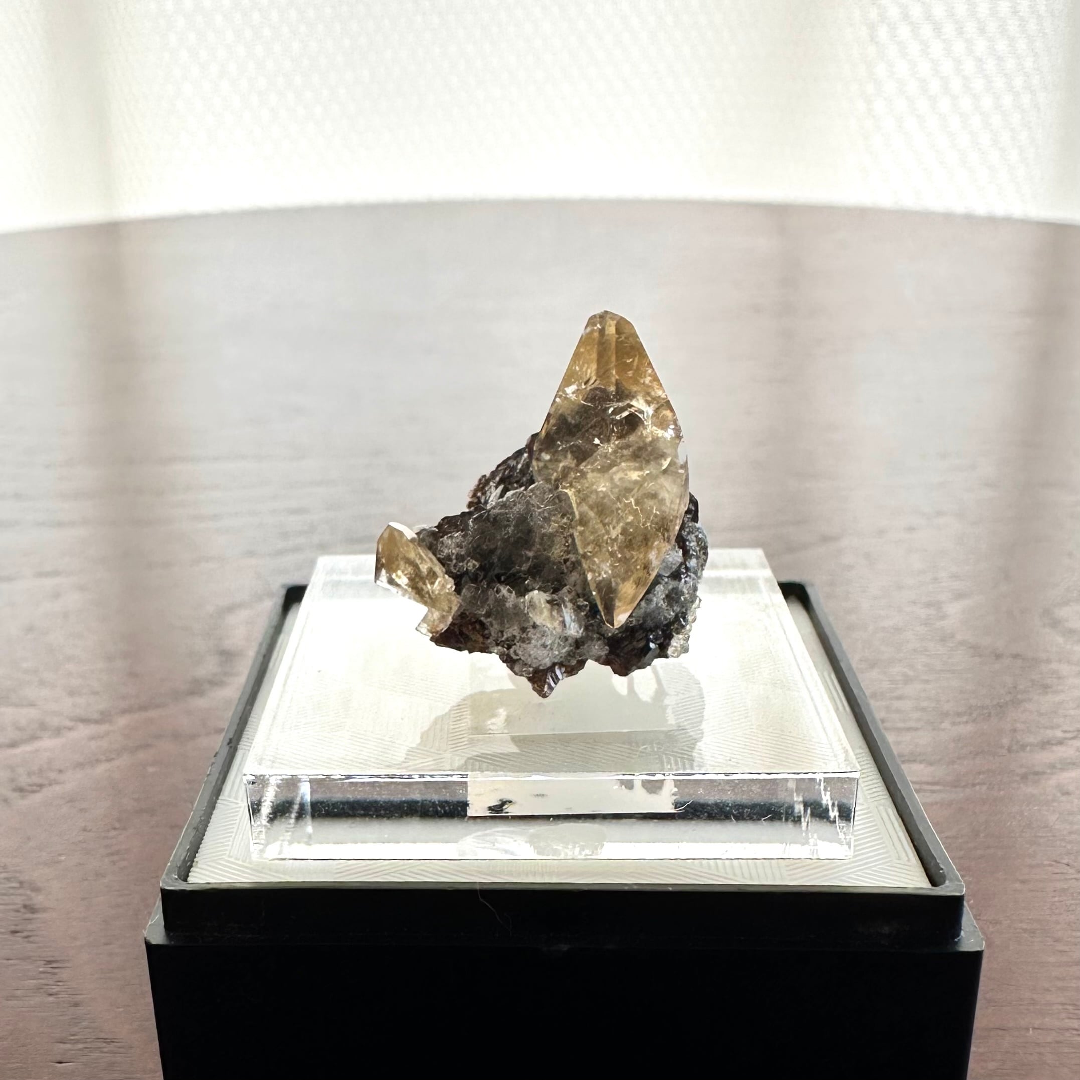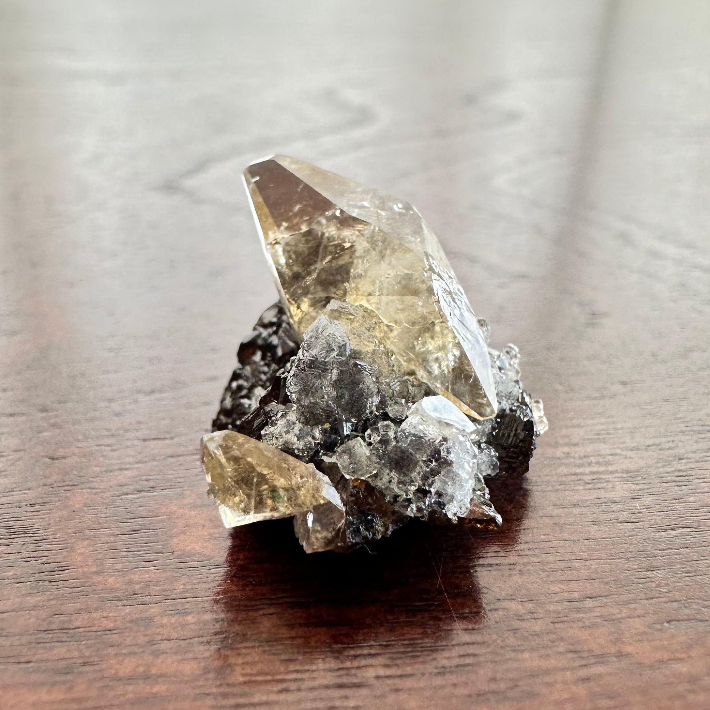 サムネイルサイズとしてもボリューム感控えめながら、整った両錐のカルサイトや全体的なフォルムの美しさがそれをフォローしています。