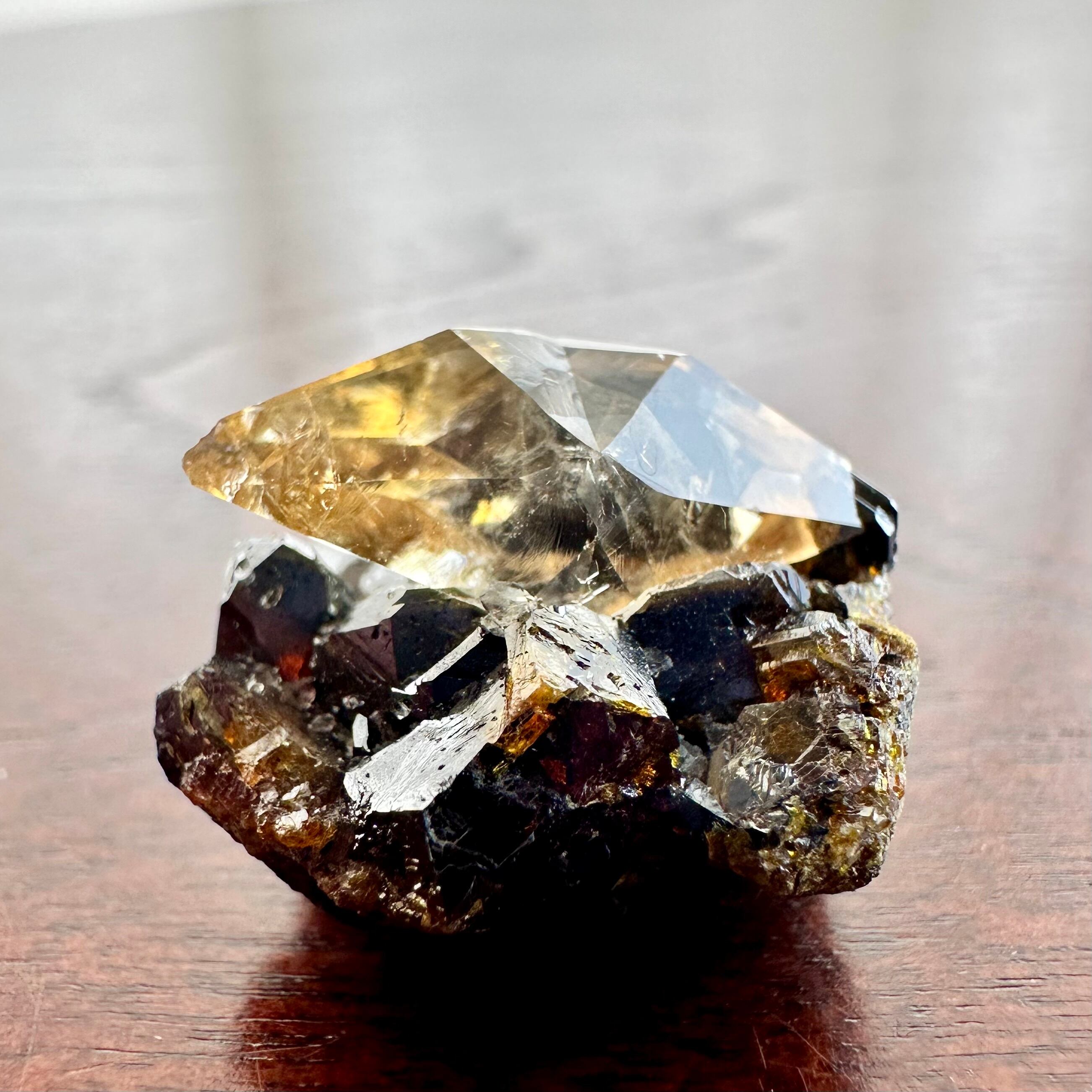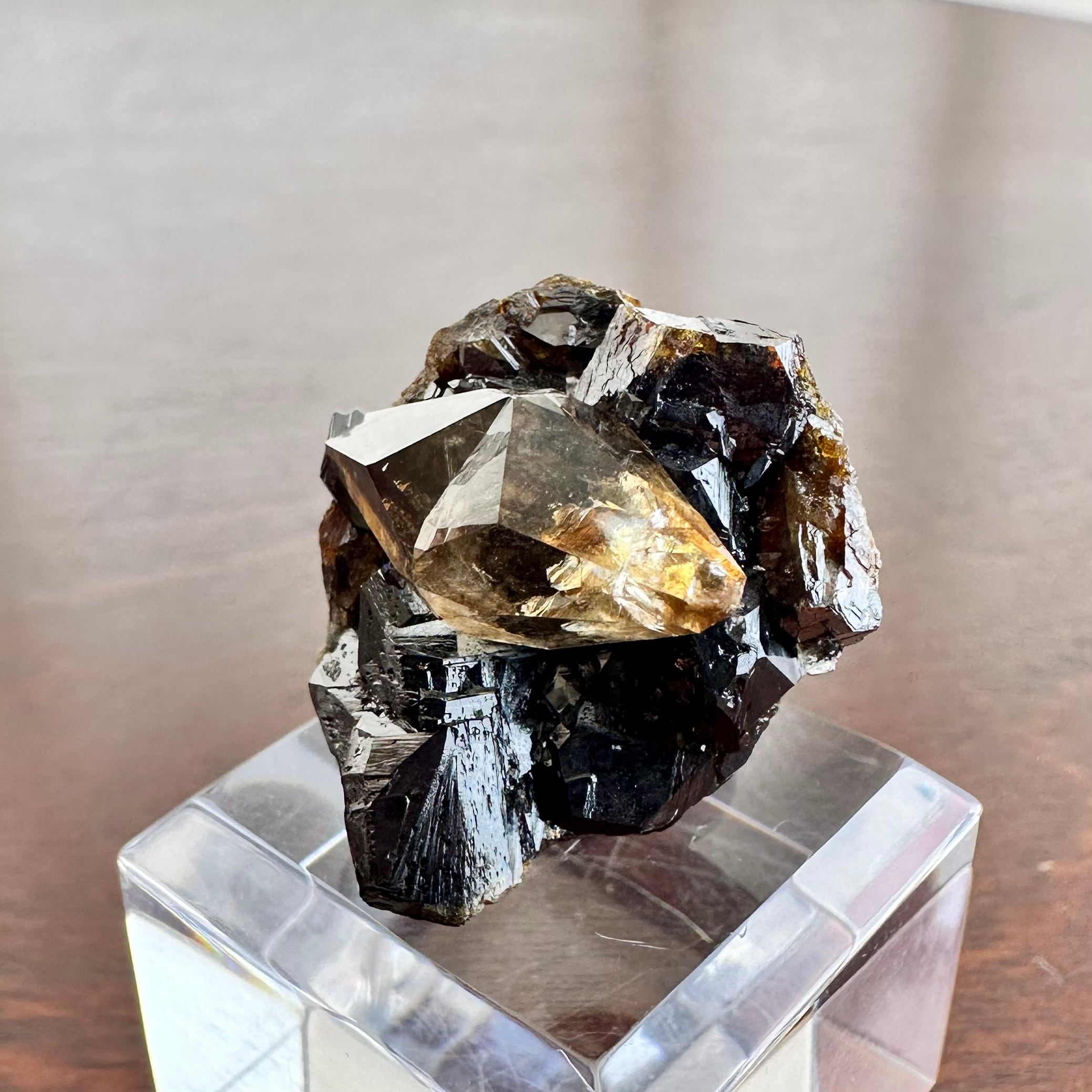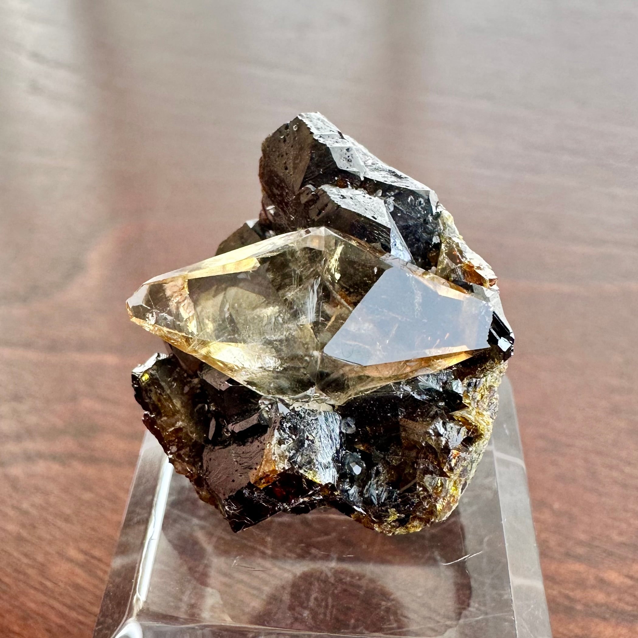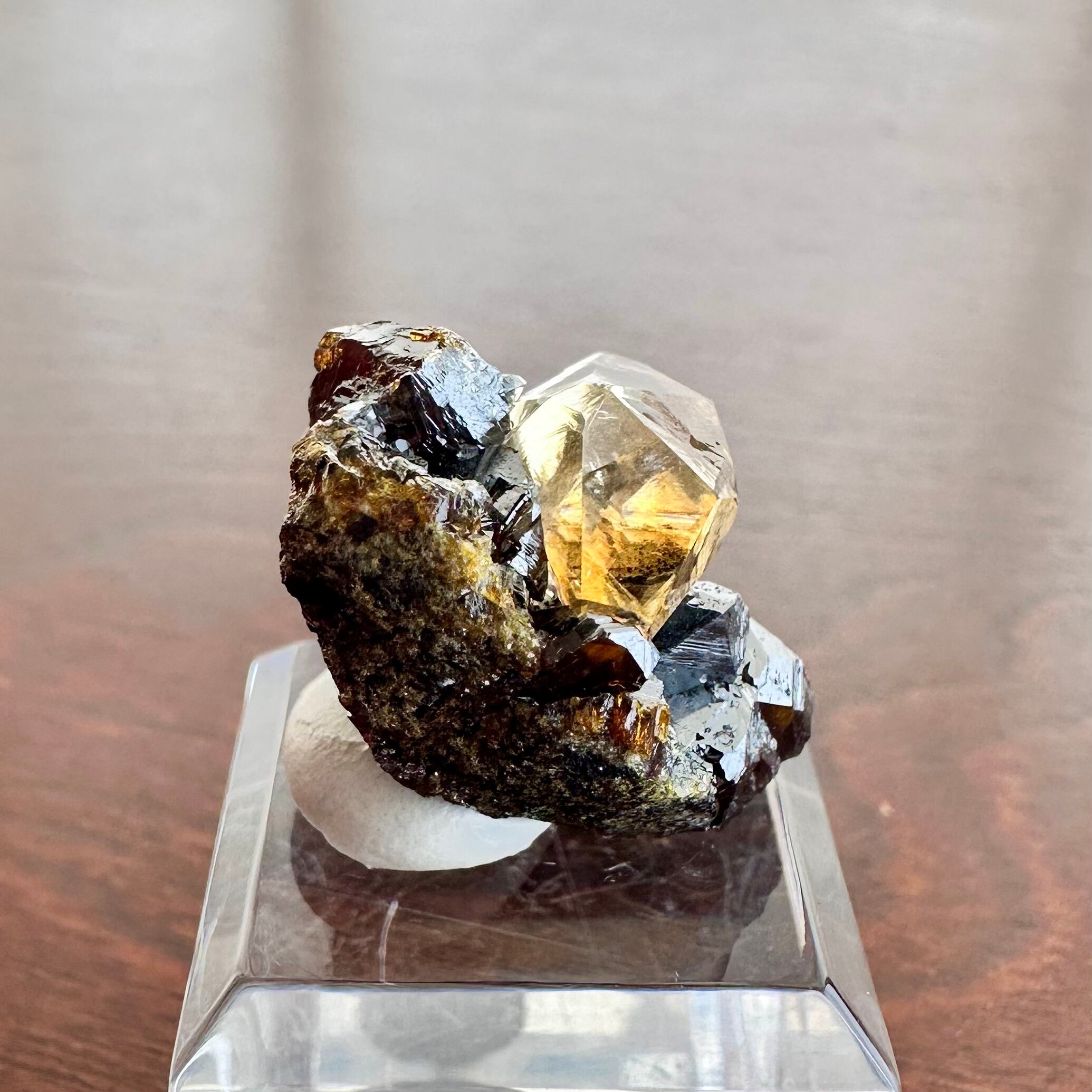 カルサイト、スファレライト共に状態が良く、カルサイトはクリアでテリがあって飴色の発色の良さが魅力的で、スファレライトは強いテリと透過光下での発色、そして透明度が魅力的です。