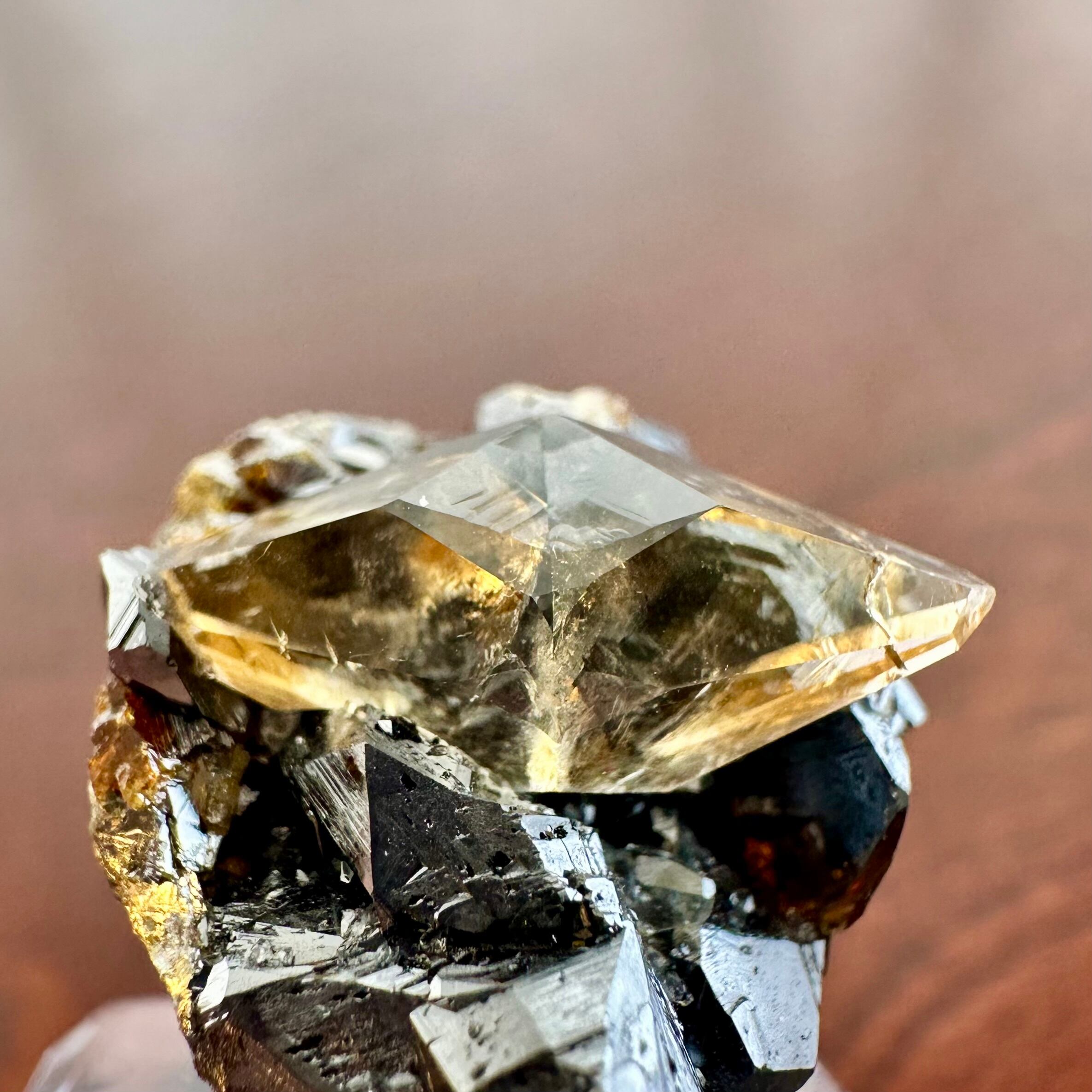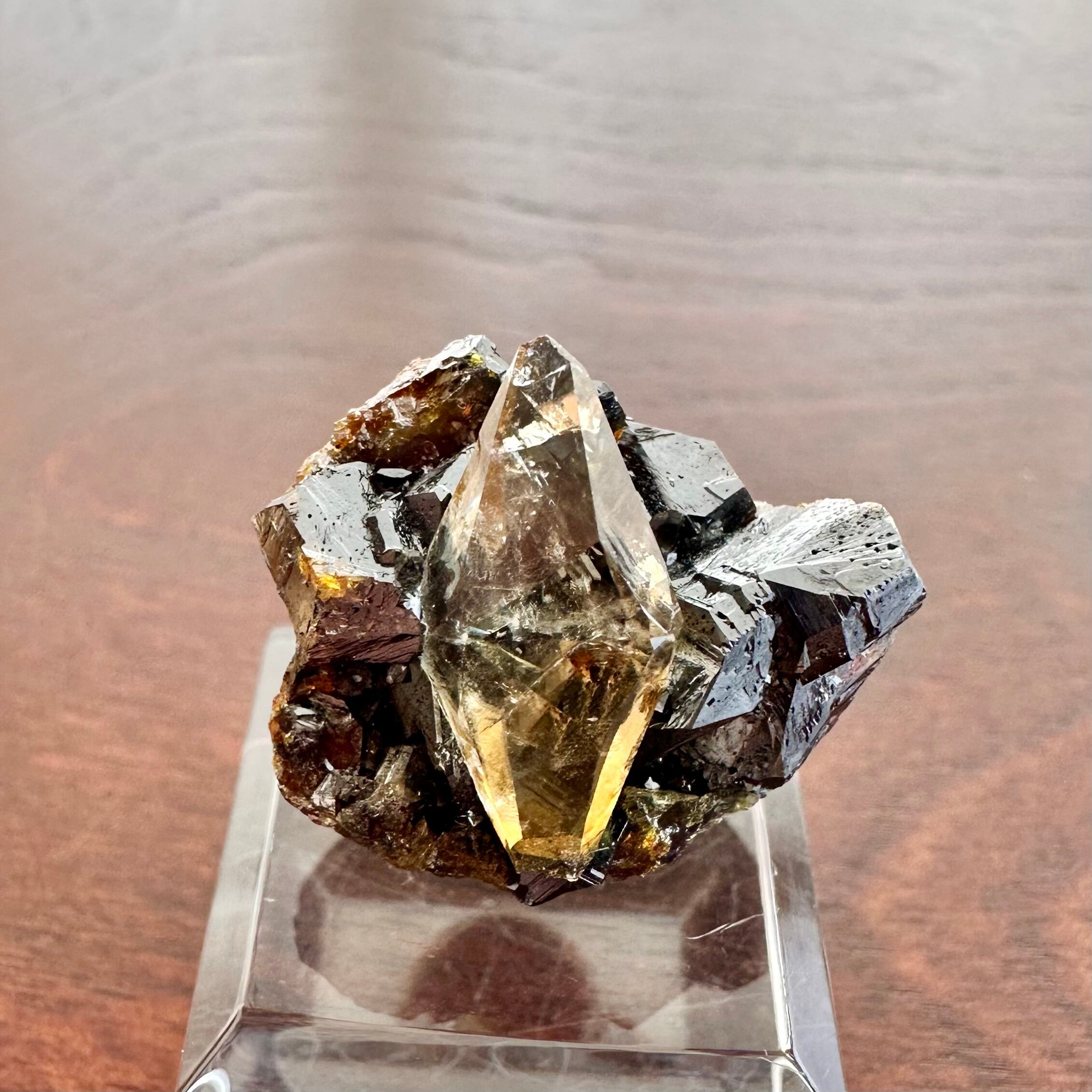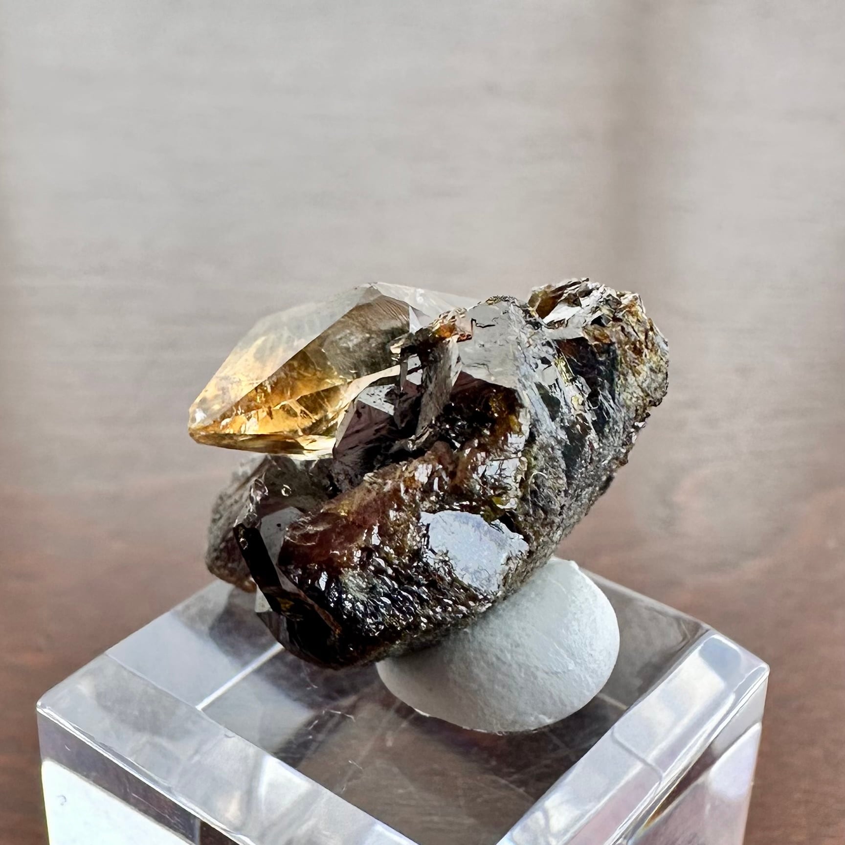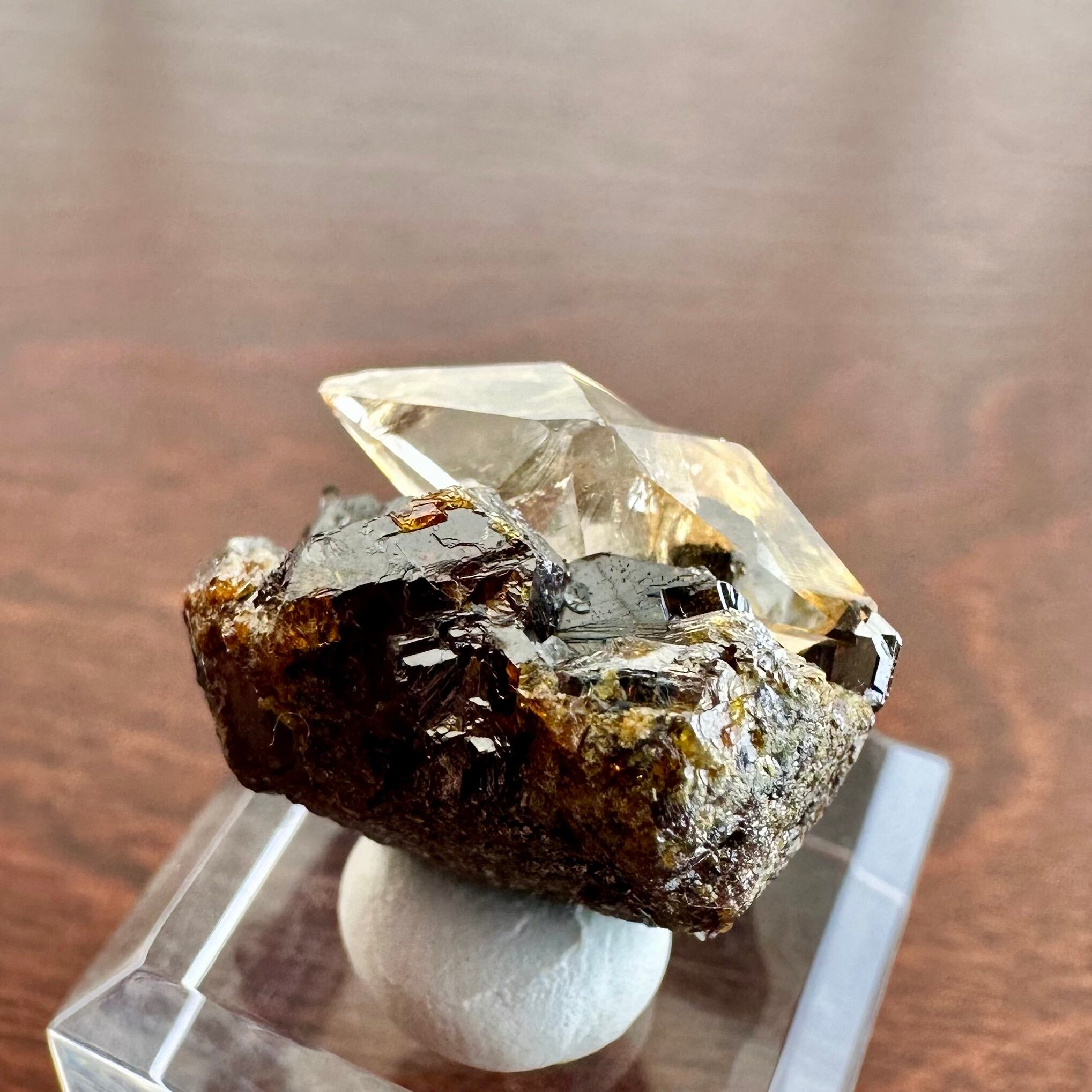 カルサイト、スファレライト共に状態が良く、カルサイトはクリアでテリがあって飴色の発色の良さが魅力的で、スファレライトは強いテリと透過光下での発色、そして透明度が魅力的です。