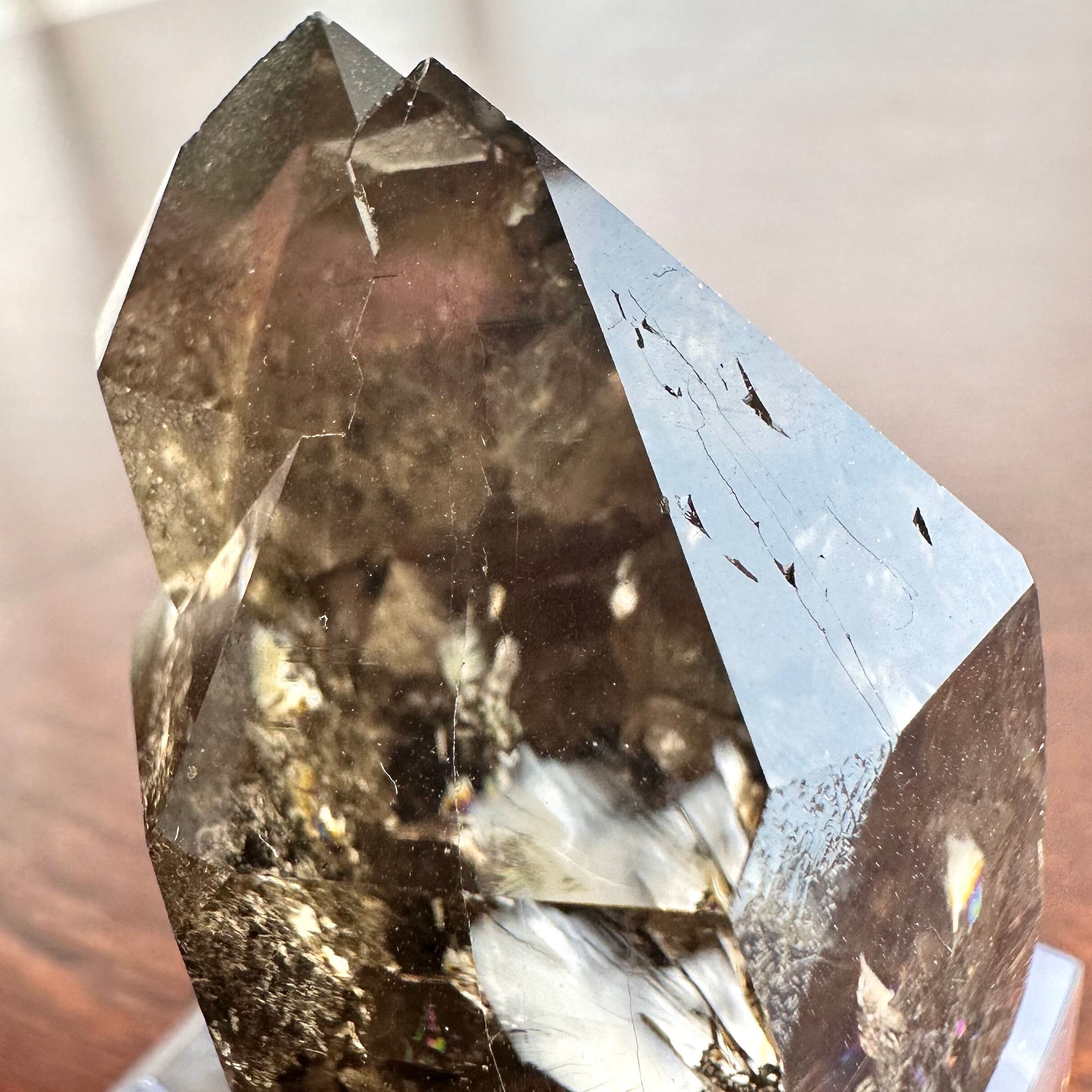 クリアさを全く失わずに濃いスモーキー具合を維持する良結晶で、ダメージも微少で結晶のテリも良好です。