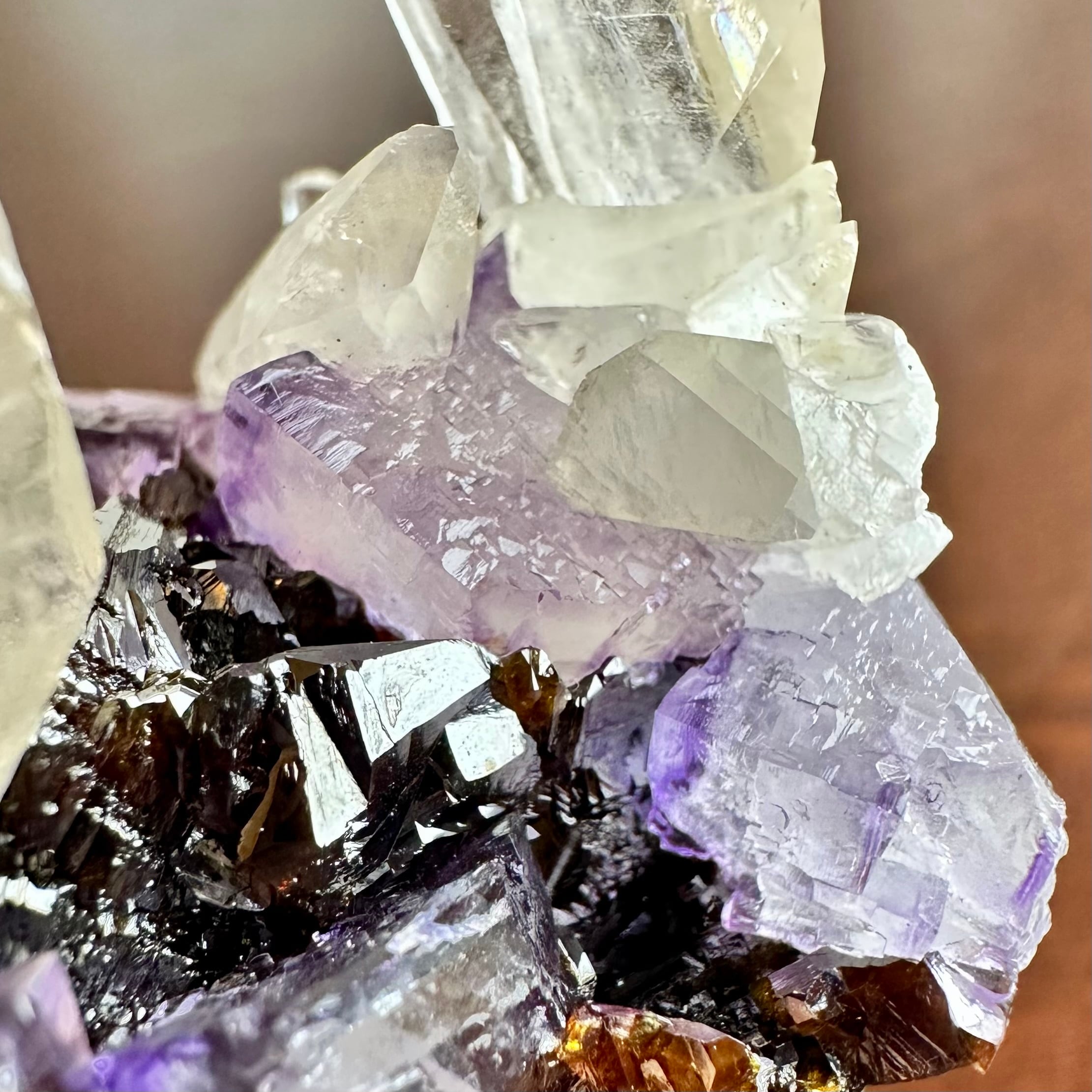 Calcite with Fluorite on Sphalerite