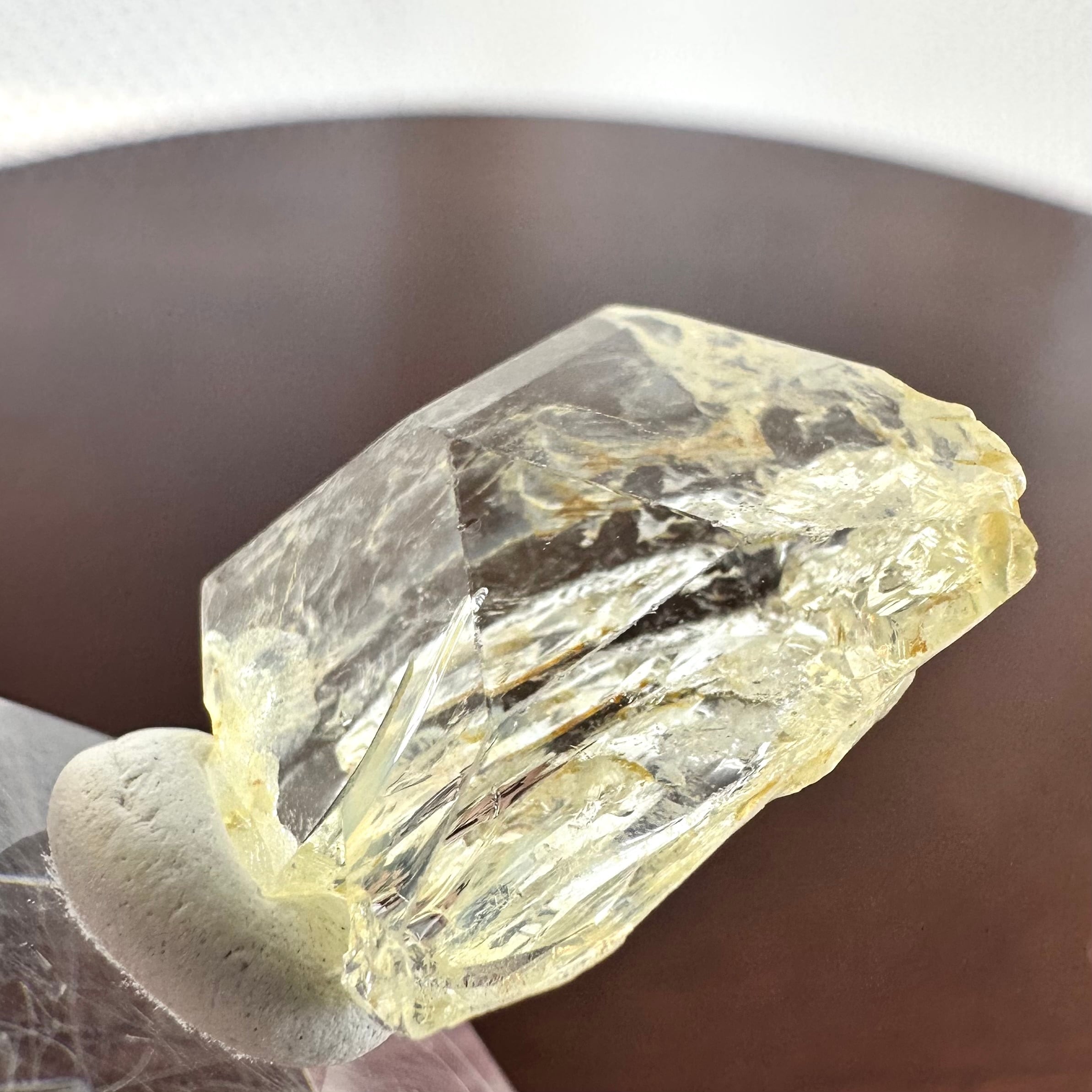 結晶面、表面はカットされたような美しさがあり、裏面は蝕像の様な溶け感のある結晶で、どちらもクリアでテリの強さも良好です。