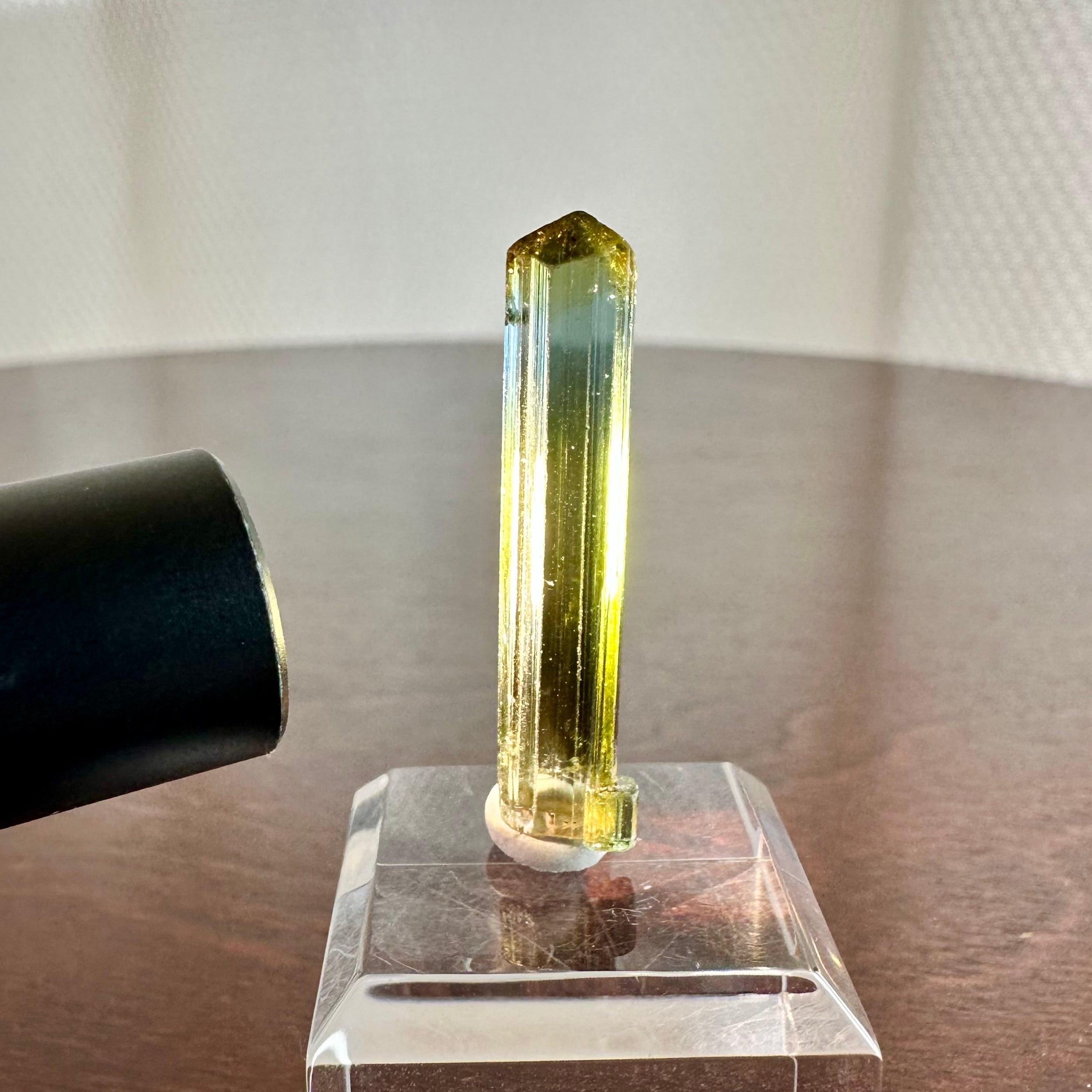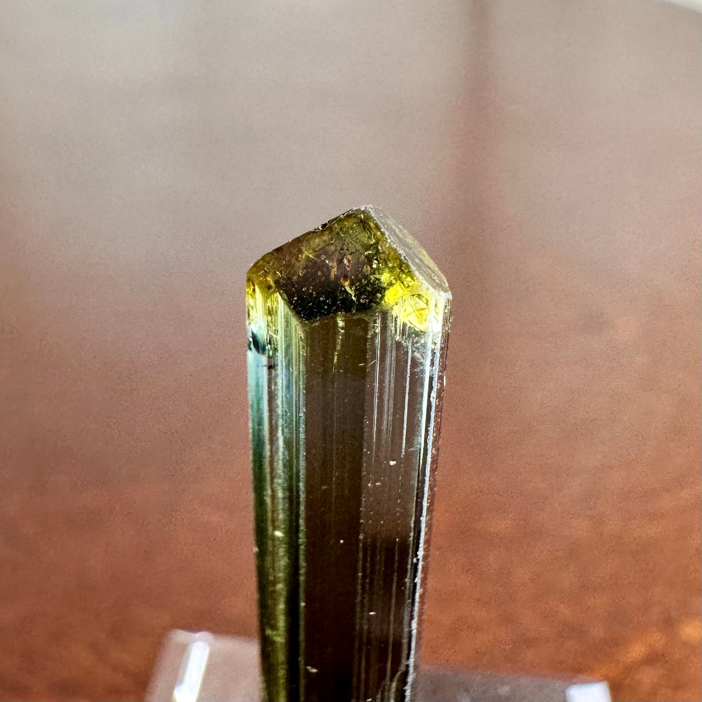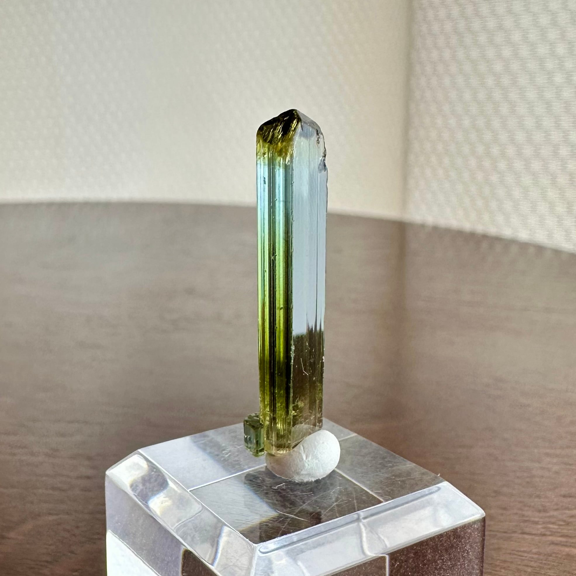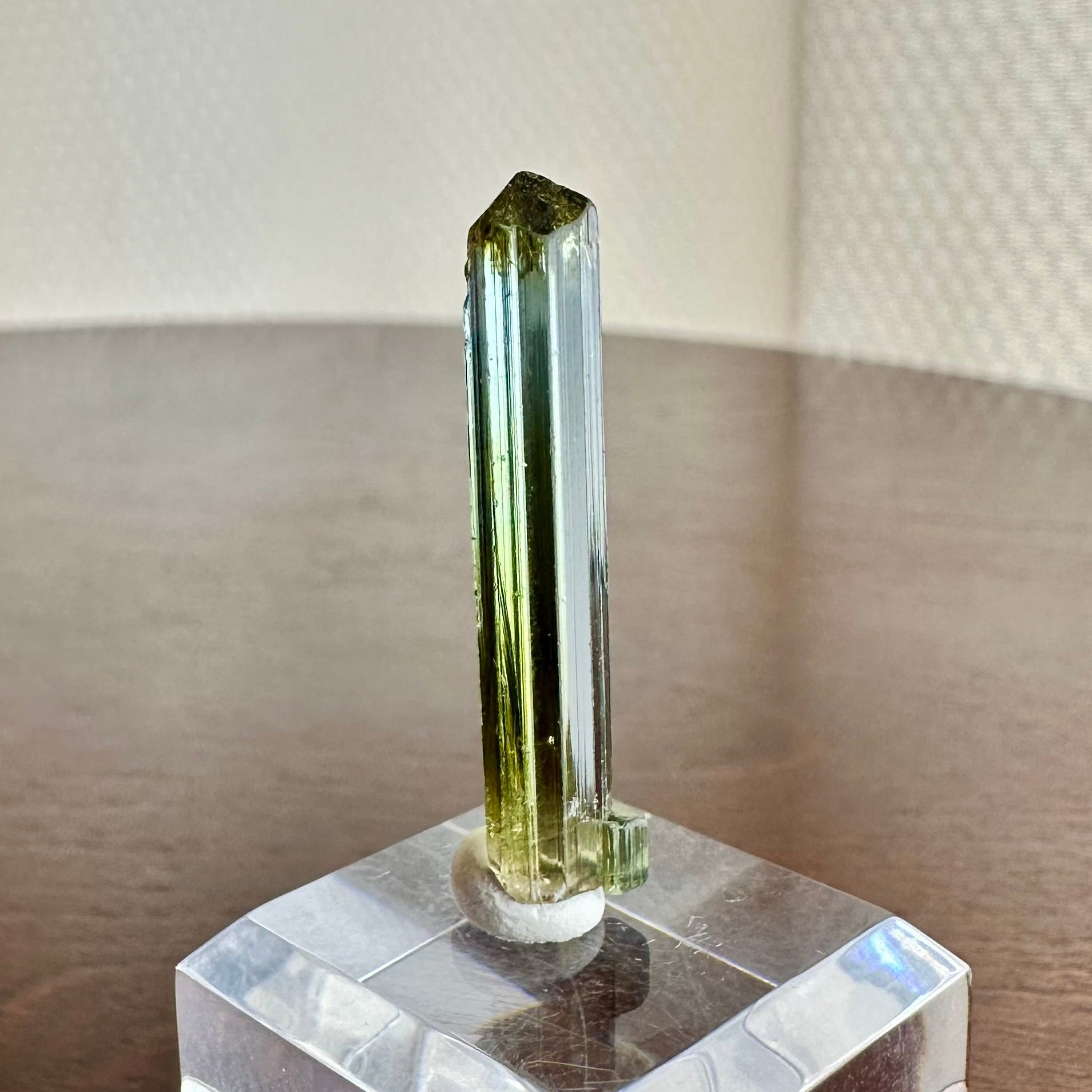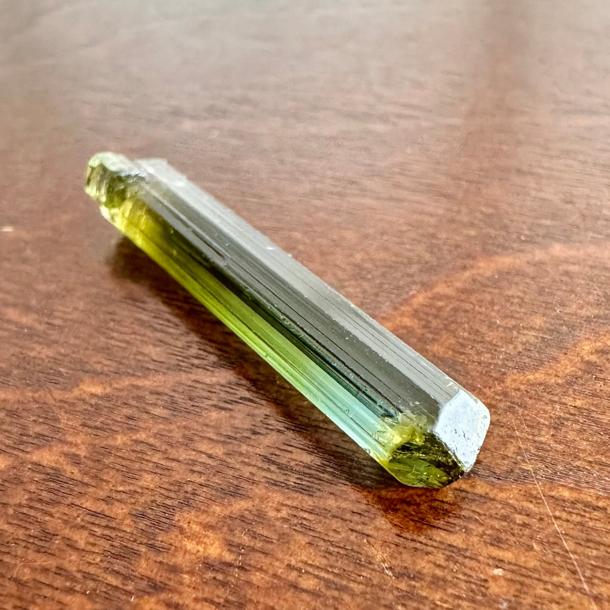 このエリアのものとしてはすっきりとした透明感のある結晶で、グリーンの中にダークブルーの色味が入るユニークな発色が魅力的です。