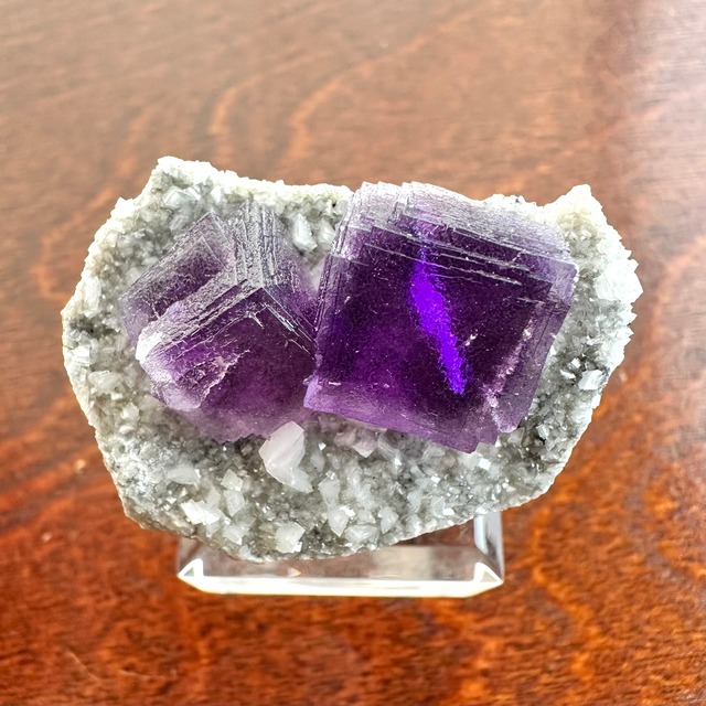 テネシー州Gordonsville Mineのパープルフローライトです、大小の結晶が並ぶ姿が可愛らしい標本です。