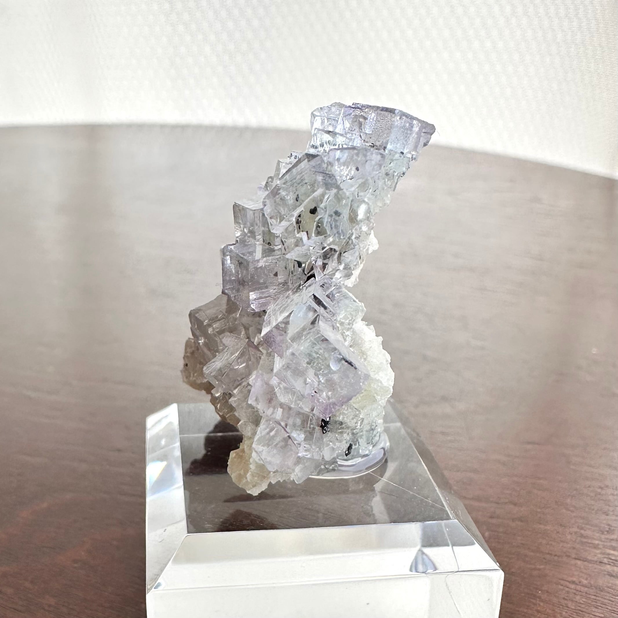 ニアカラーレスのクリアな結晶がメインながら、そこから中心に近付くにつれ、非常に淡いブルーやグリーン、イエローの発色が見られ、パステルカラーの弱いグラデーションが楽しめます。