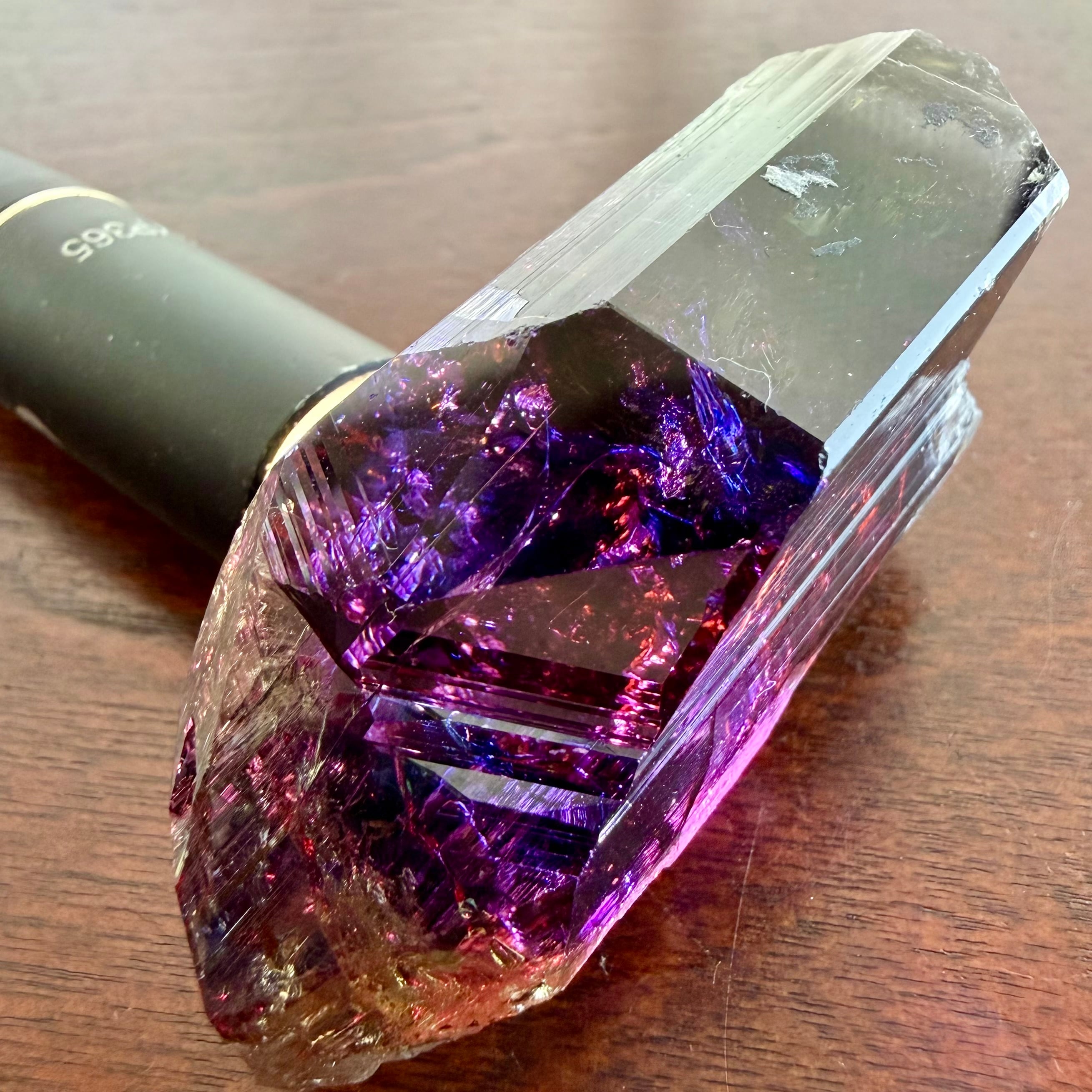 タンザナイトの結晶、国内で見かけるサイズ感としてはかなり大きい部類に入り、かつ見かけてもダメージが多い結晶が多い中、これは結晶表面のダメージがほぼ無く、内部のクラックも少なめです。