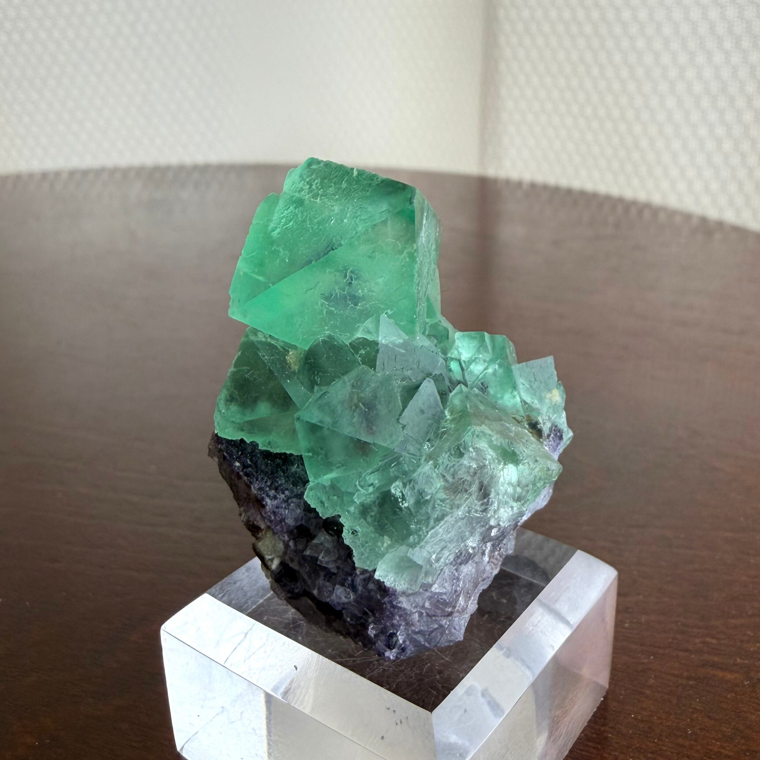 メロンソーダカラーと呼称されることもある鮮やかなグリーンが印象的な南アフリカ産のフローライトです。