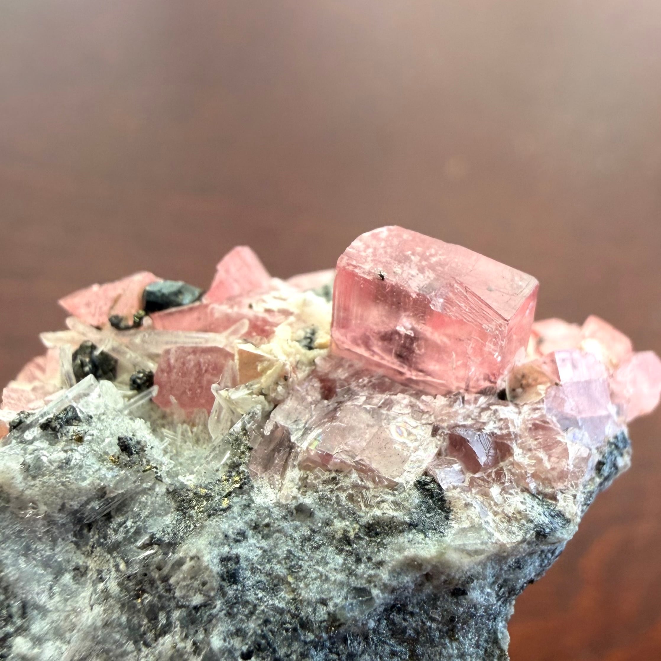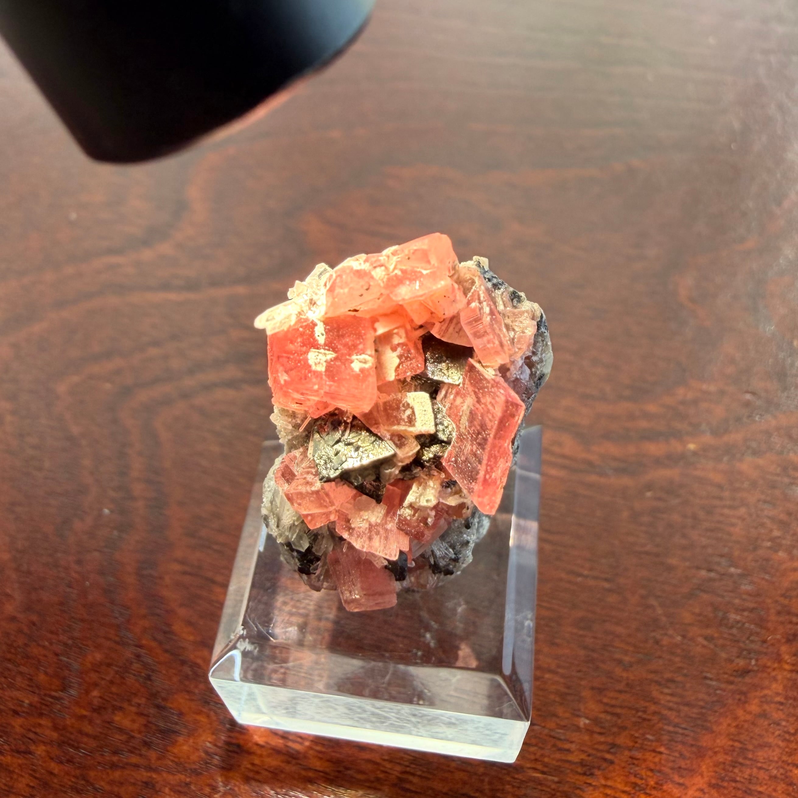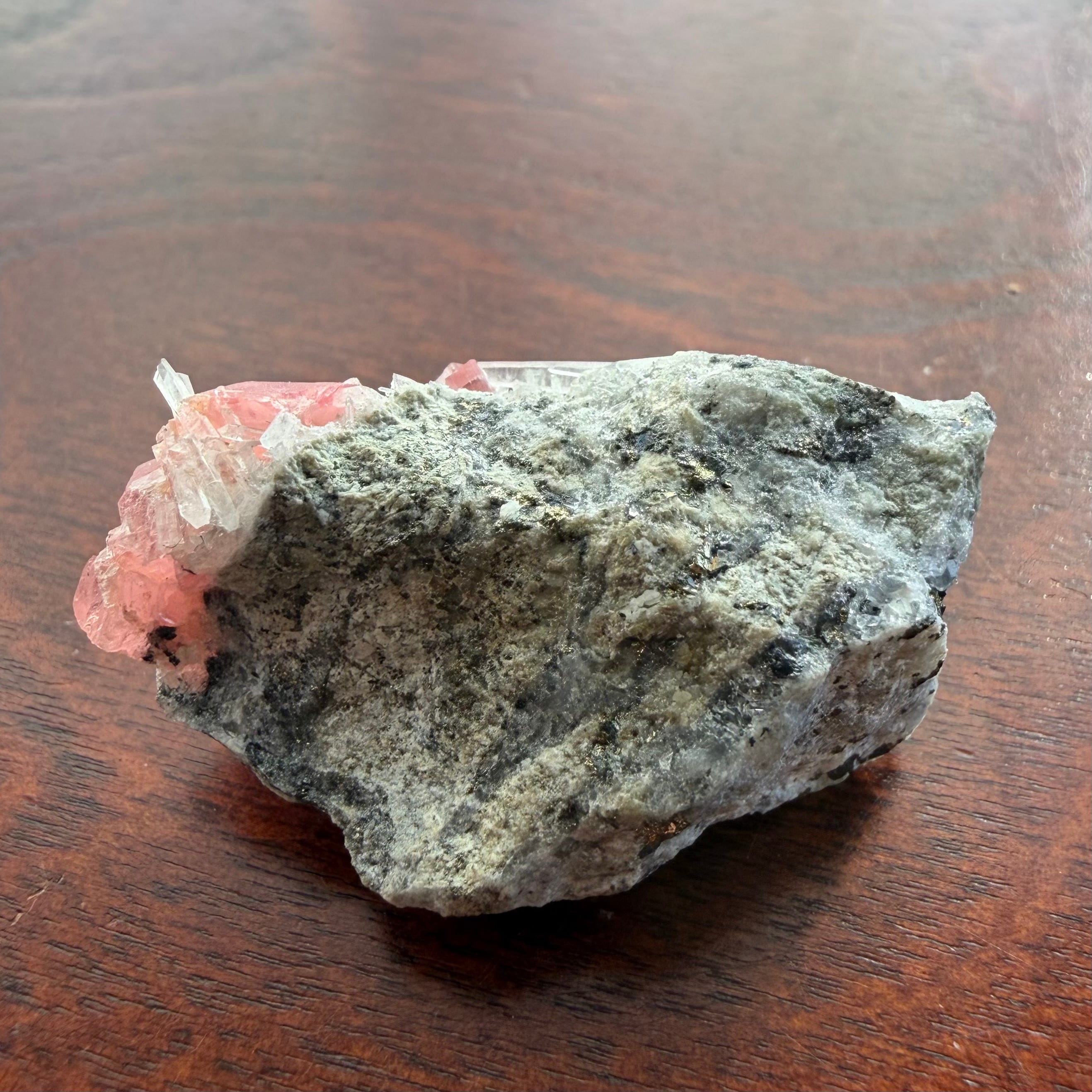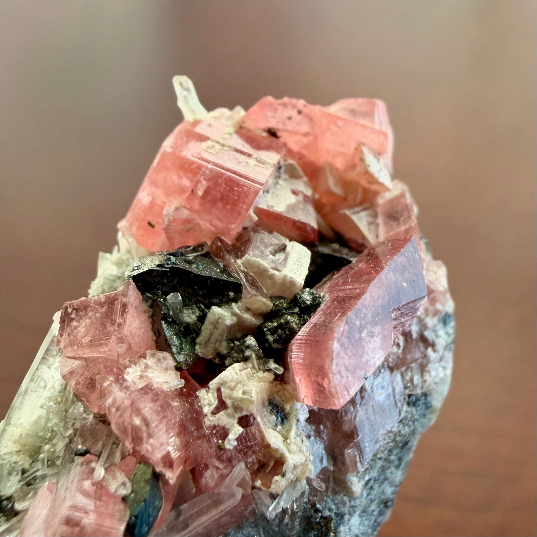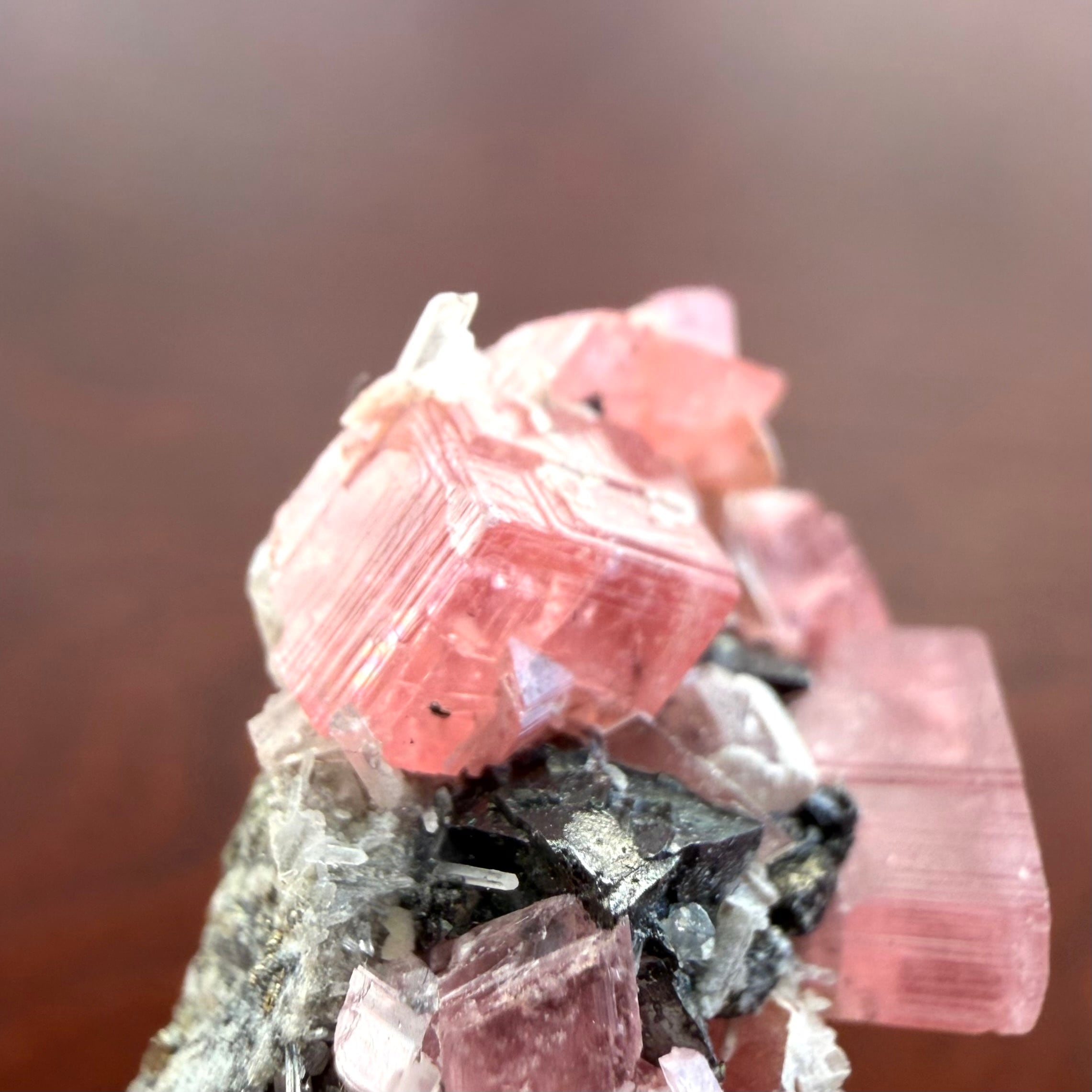 Sweet Home Mineのロードクロサイト、クォーツやガレナ、キャルコパイライト等とのコンビネーションです。