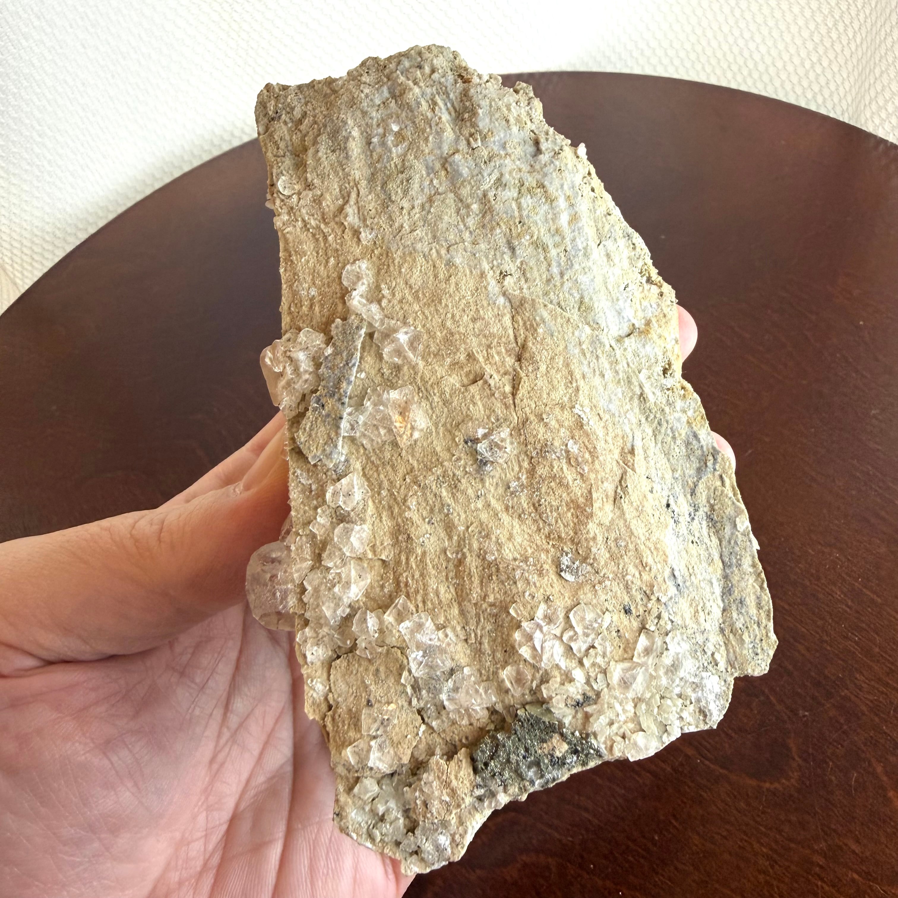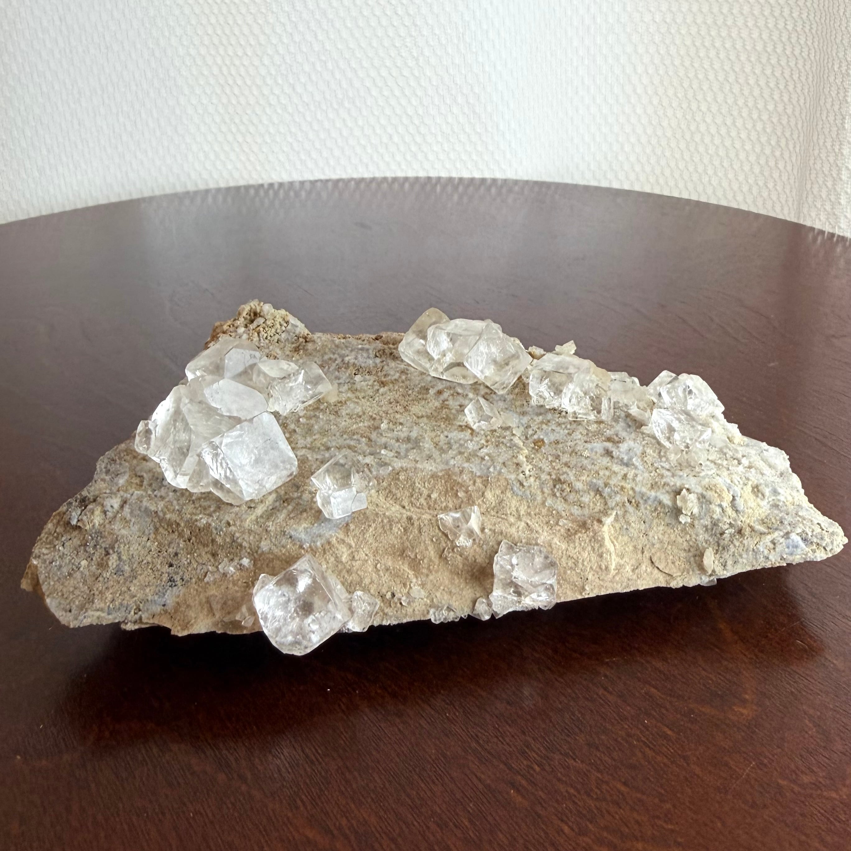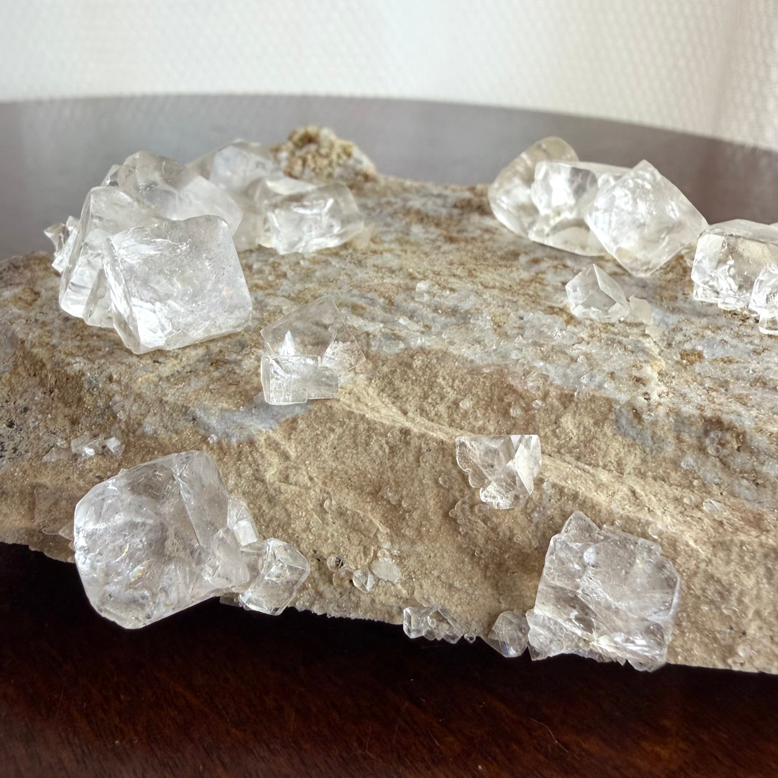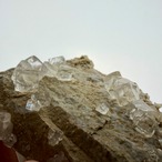 フローライトはカラーレスの結晶で、非常にクリアかつテリの強さがあり、母岩の雰囲気も相まって枯山水的な雰囲気を漂わせています。