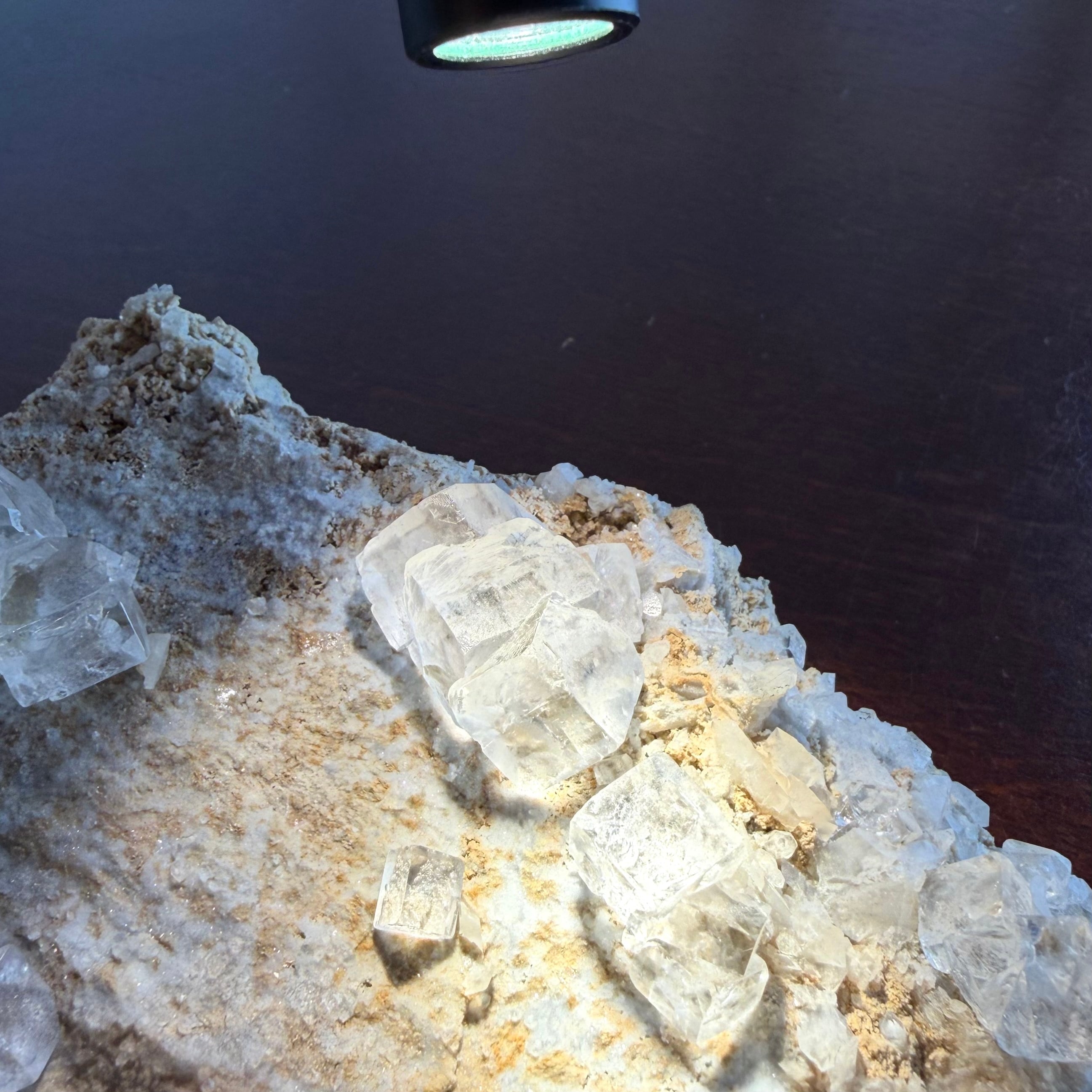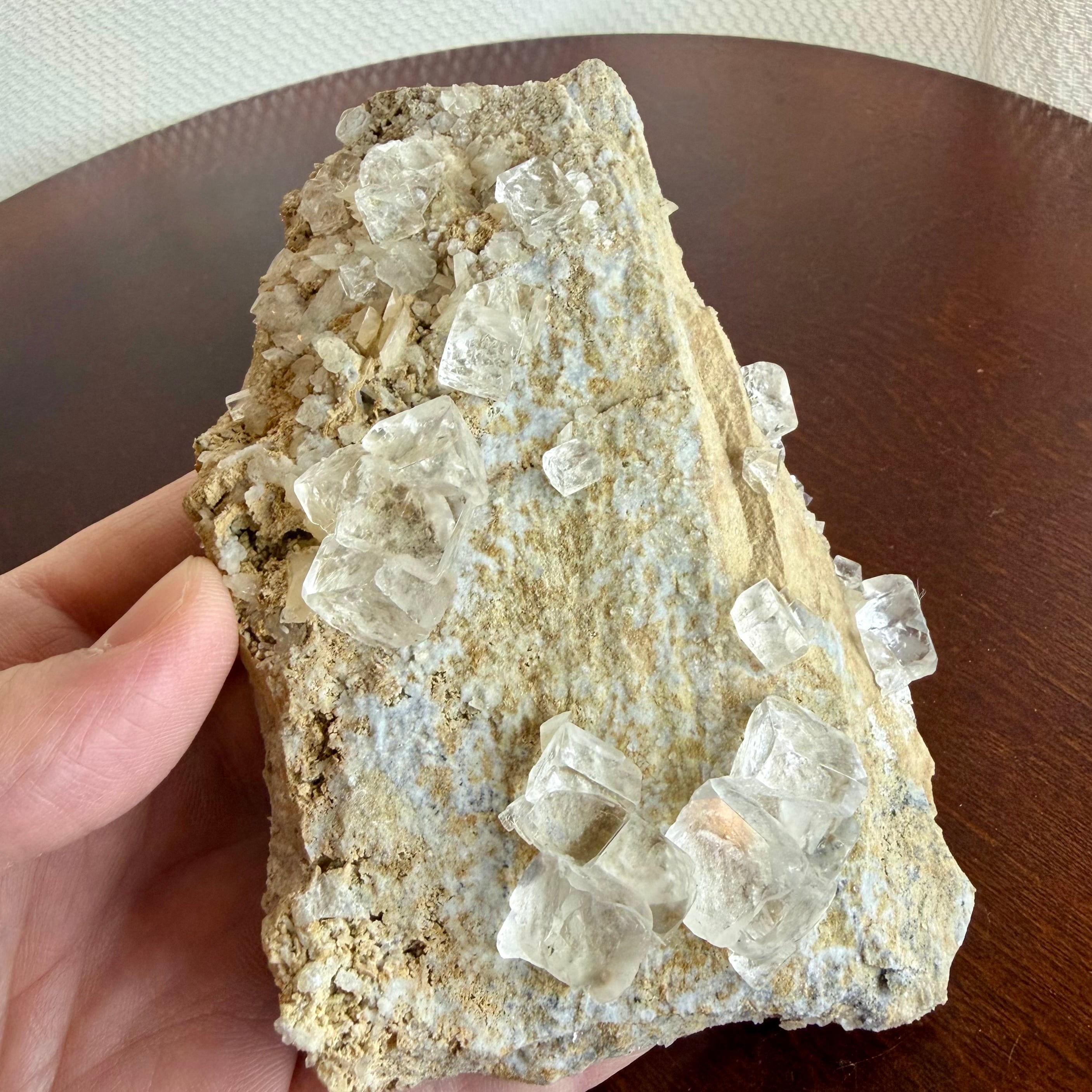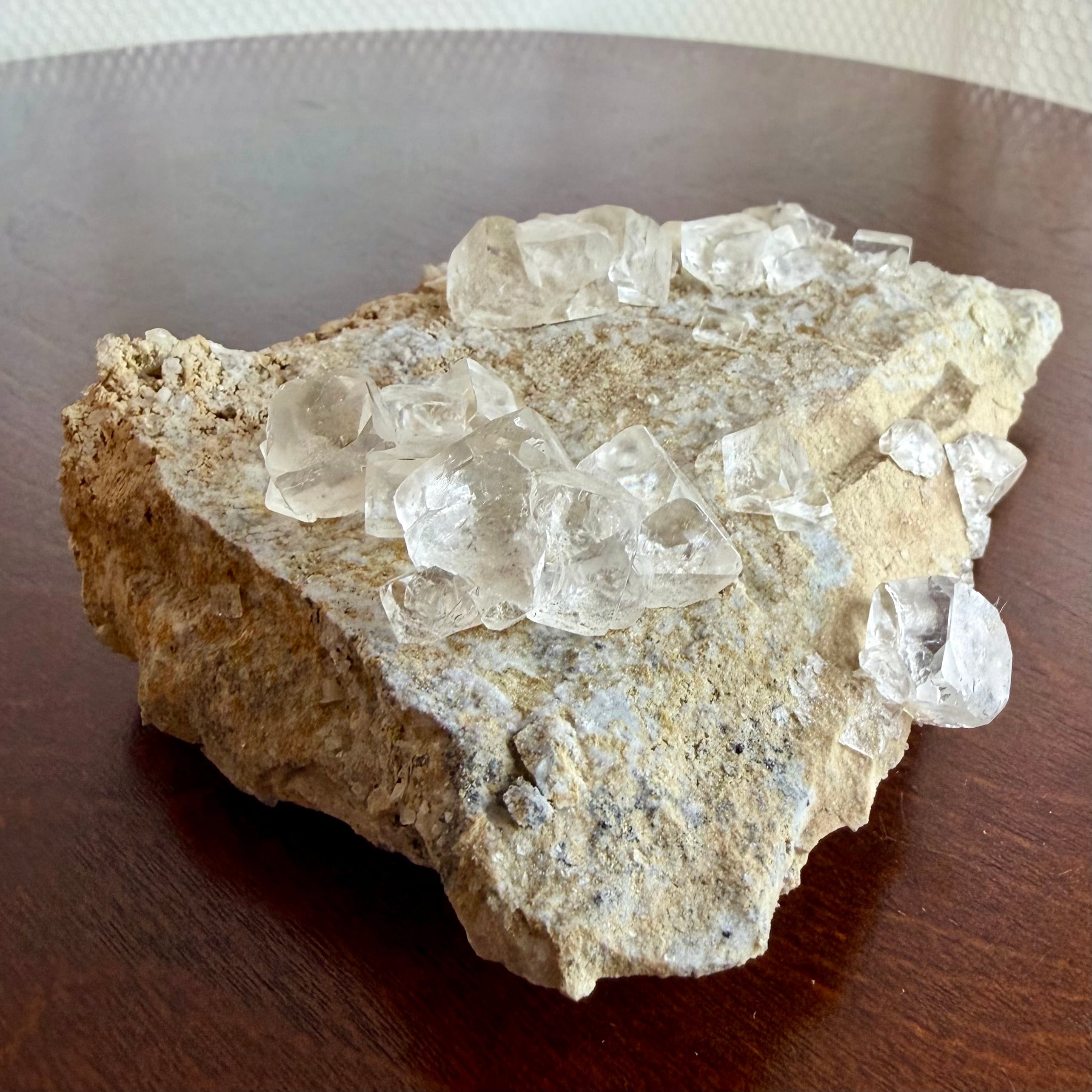 フローライトはカラーレスの結晶で、非常にクリアかつテリの強さがあり、母岩の雰囲気も相まって枯山水的な雰囲気を漂わせています。