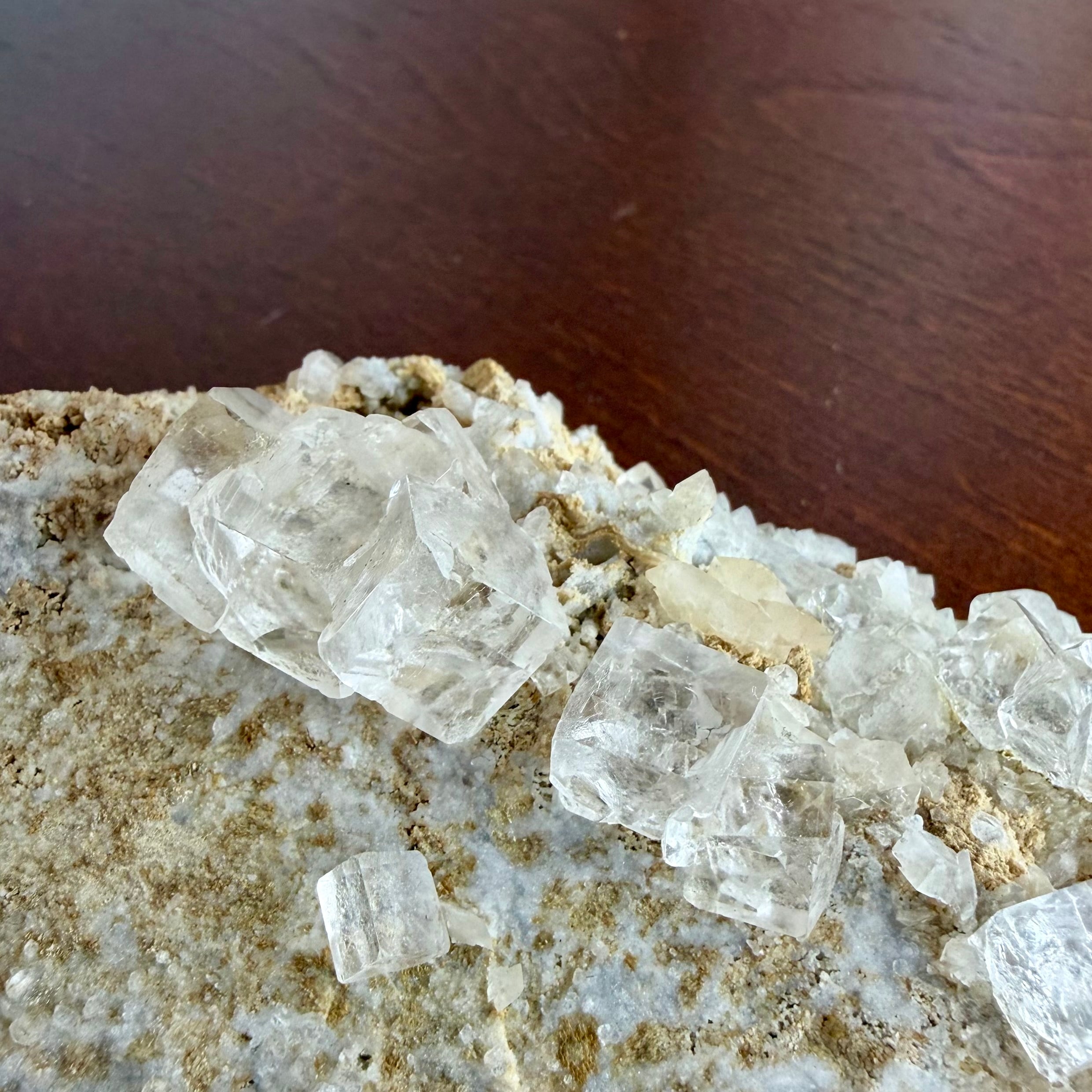 サイズ感のある母岩上に複数の結晶が広がったDalnegorsk産のフローライトです。