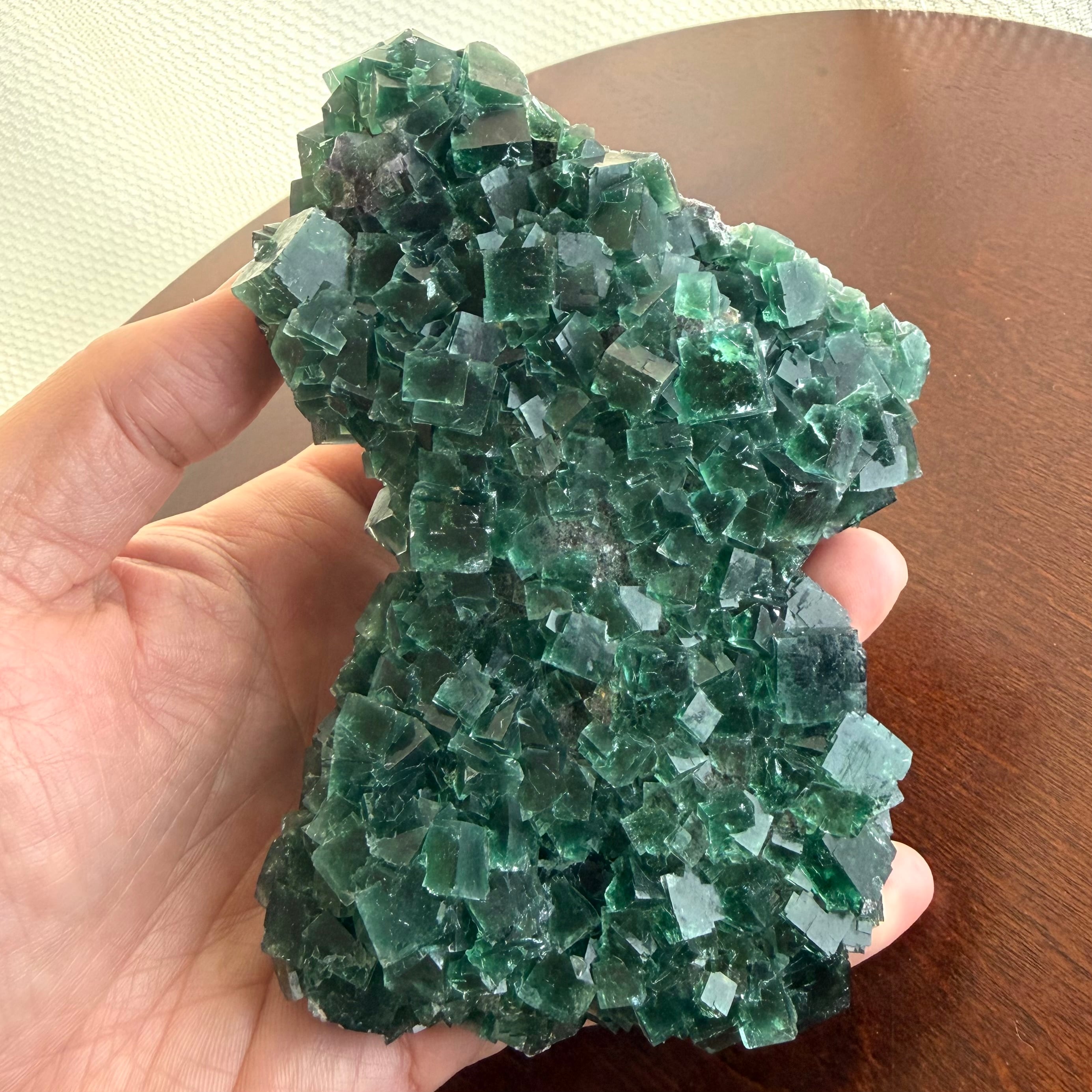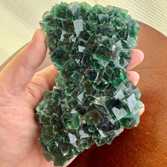 Okorusu Mineのグリーンフローライト、発色が良好でテリと透明感があり、更にしっかりとしたサイズ感を伴います。