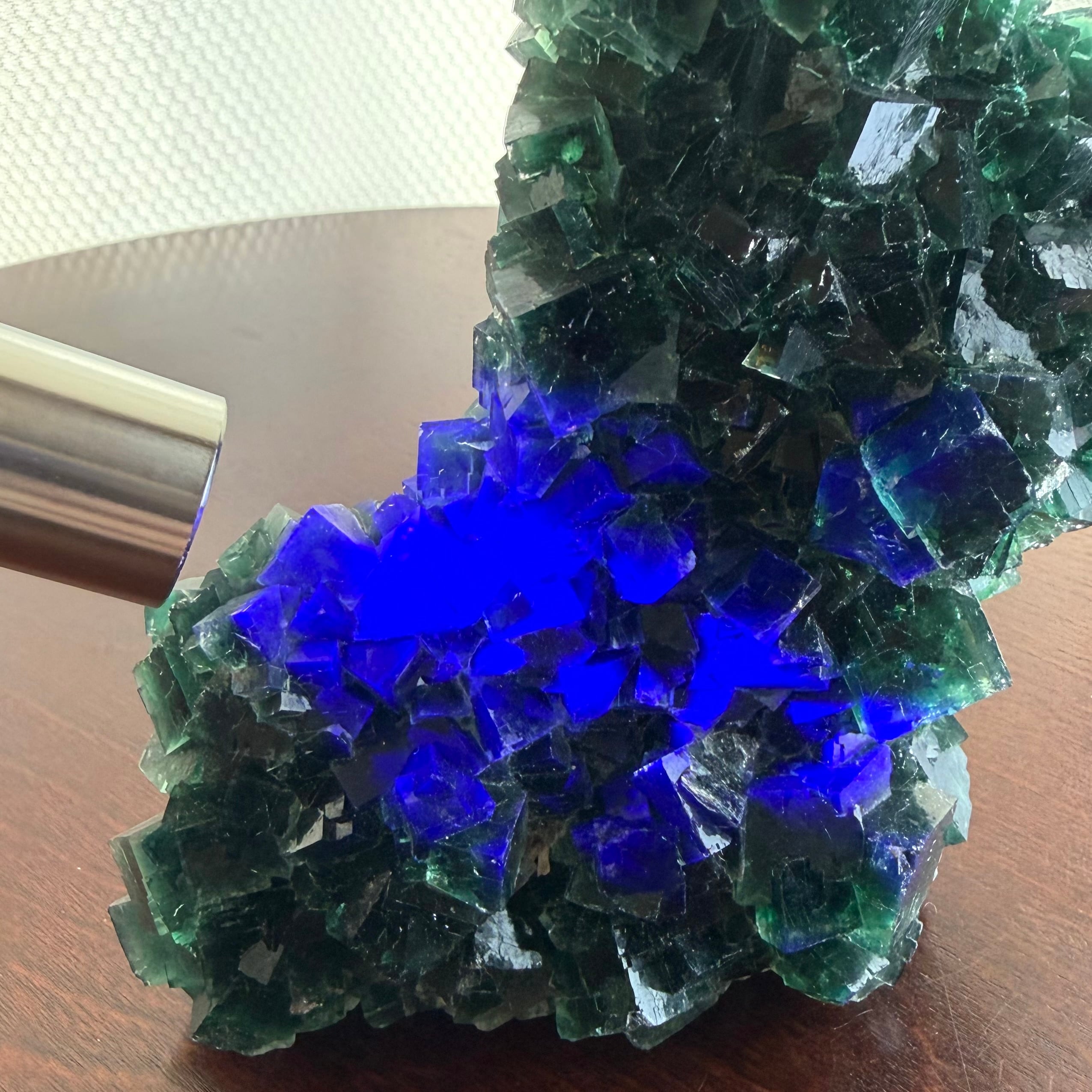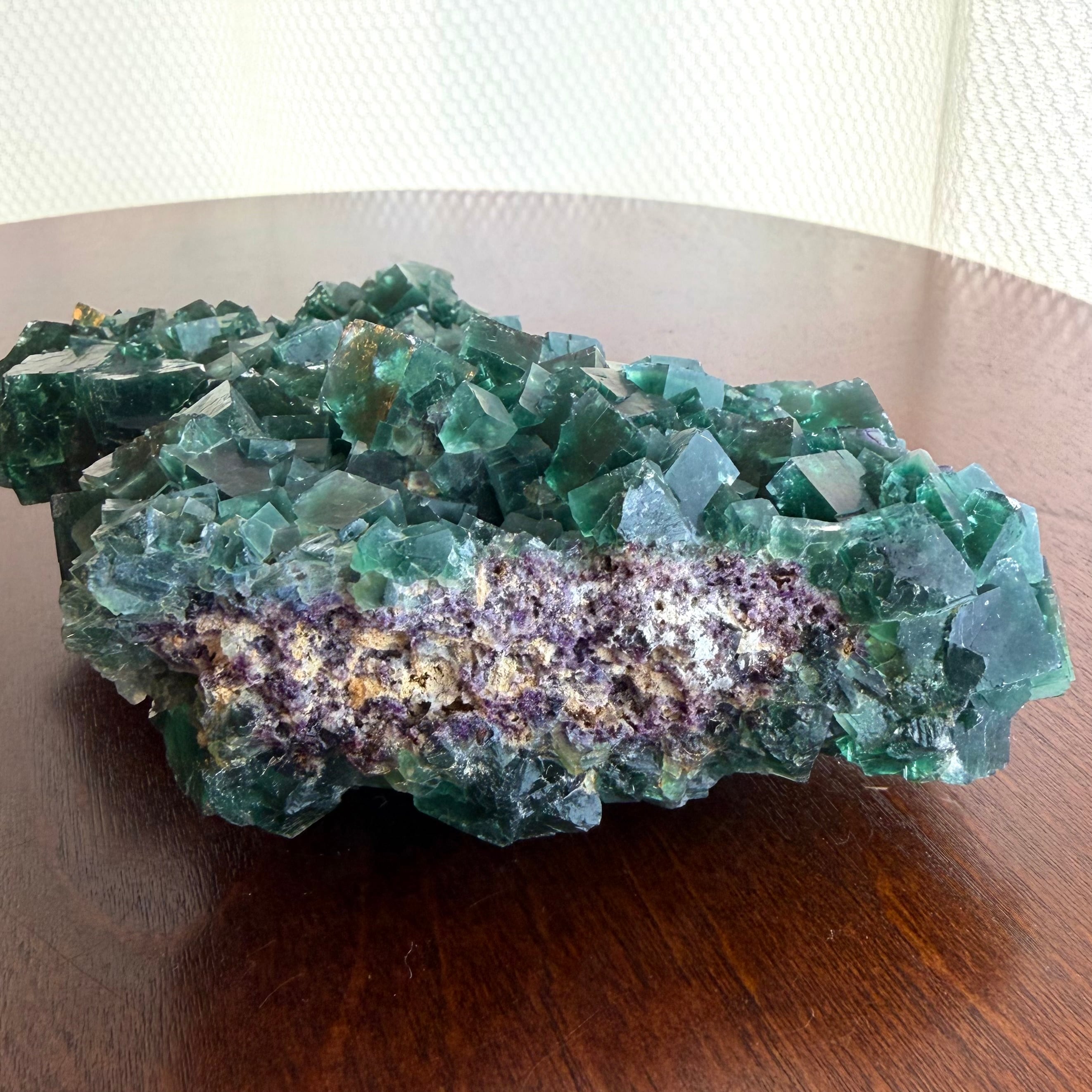 また、ほぼ全部の面がフローライトである点も魅力的で、どちらの面をメインとするか、また立てたり寝かしたりで景色もガラッと変わってくる飾り方が悩ましい標本です。