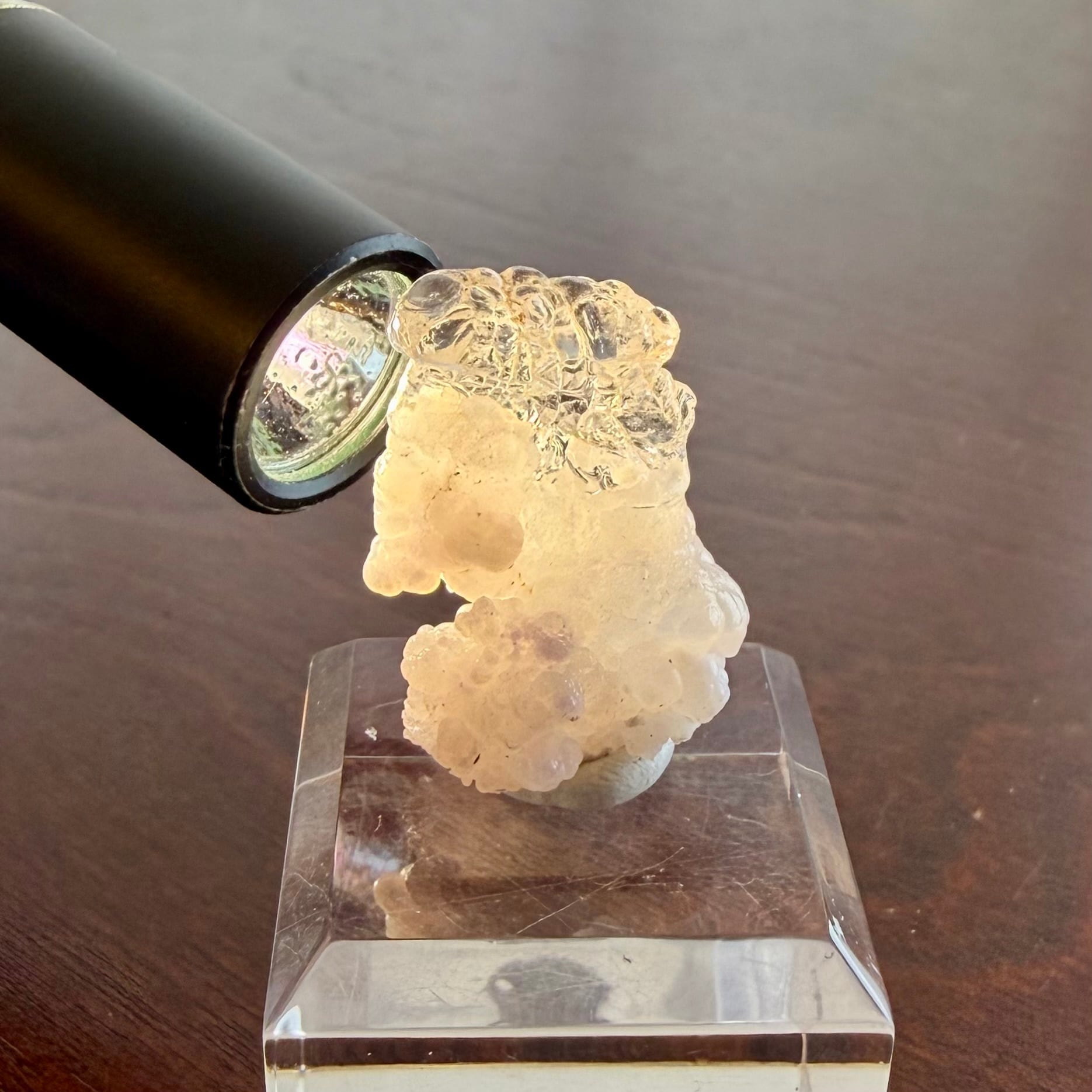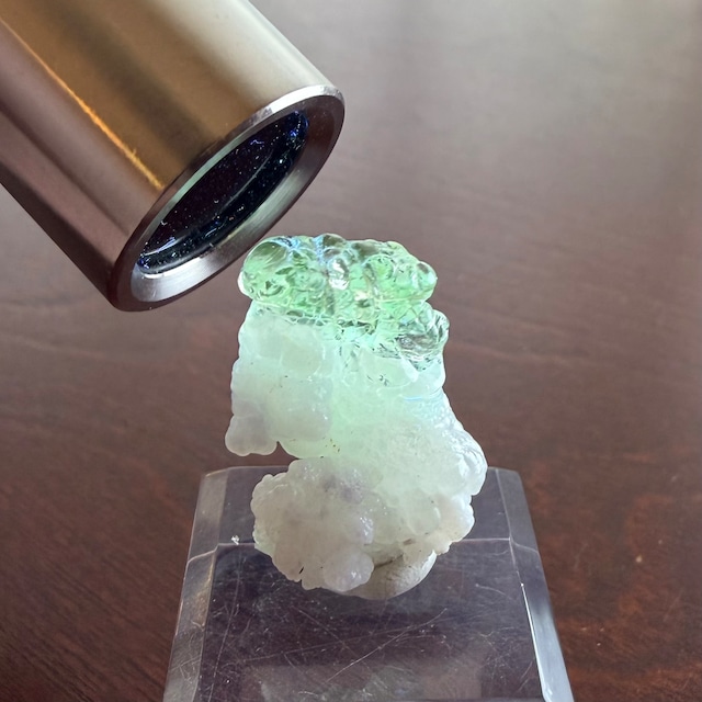 紫外線光下で淡いグリーンの蛍光が確認できます。