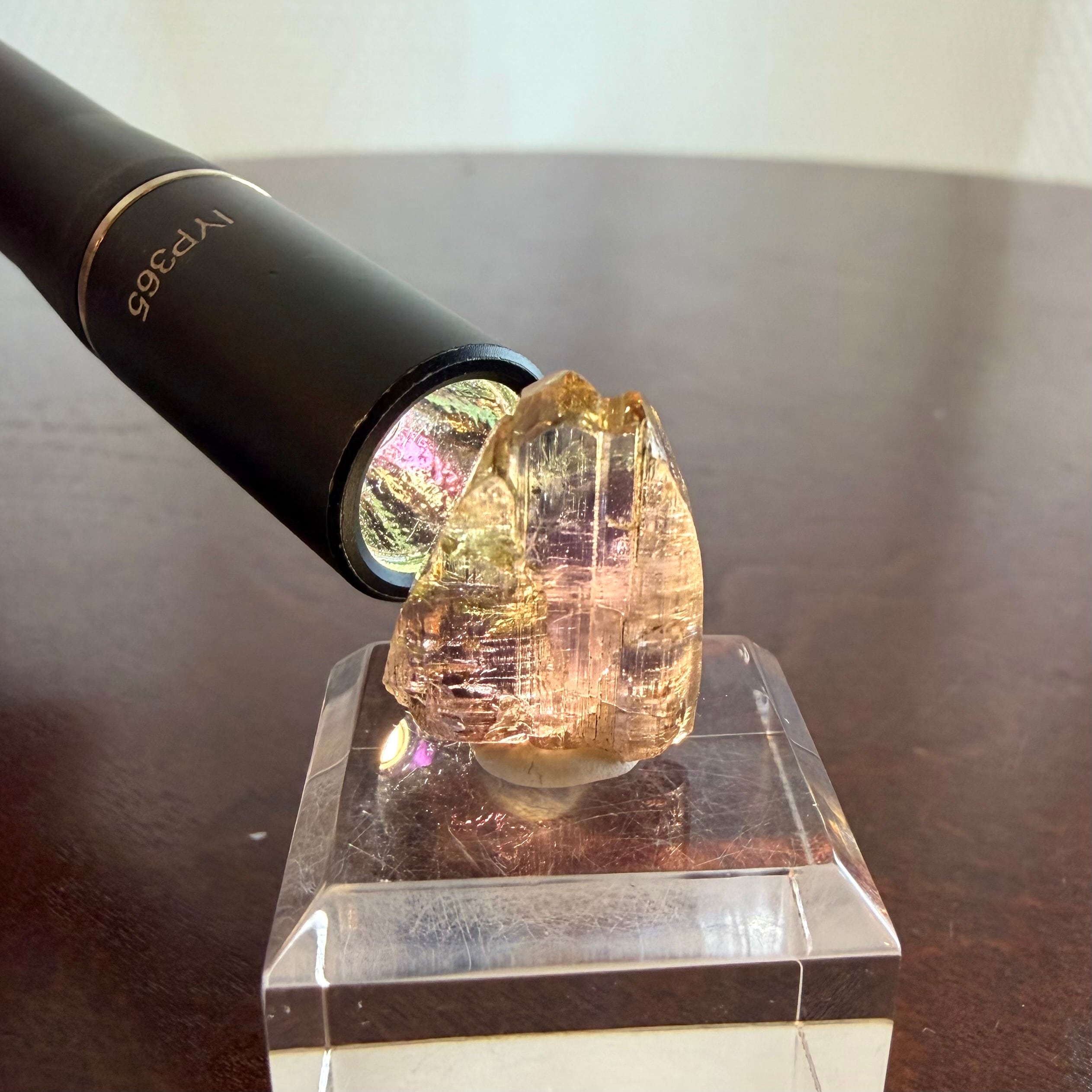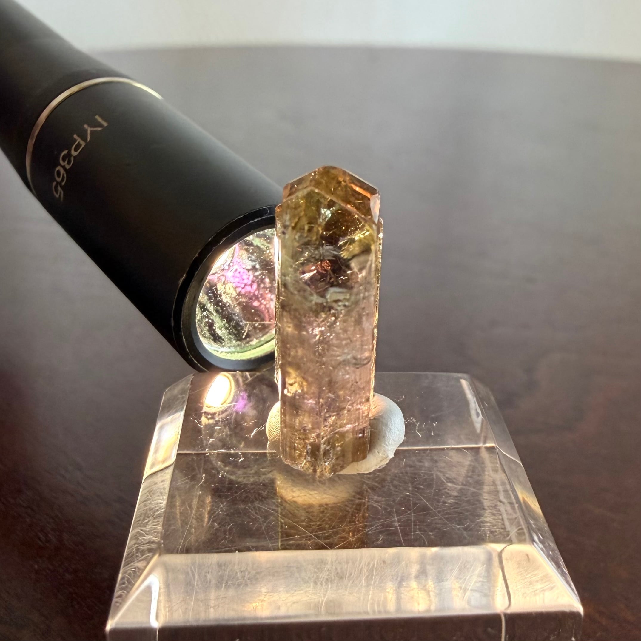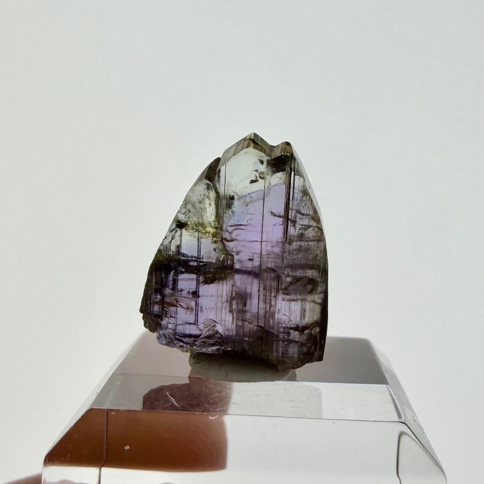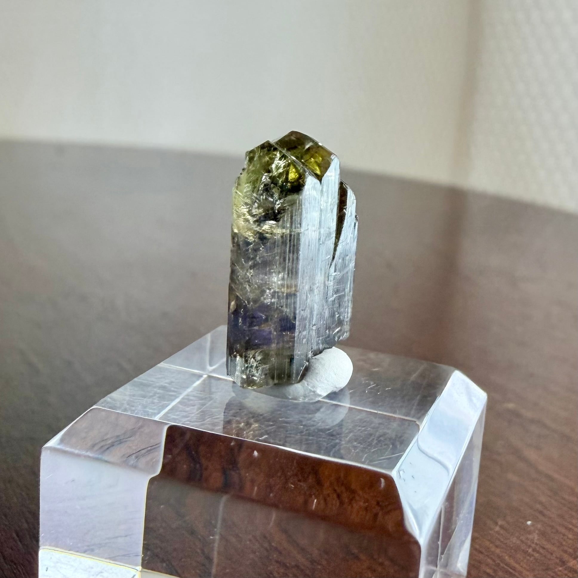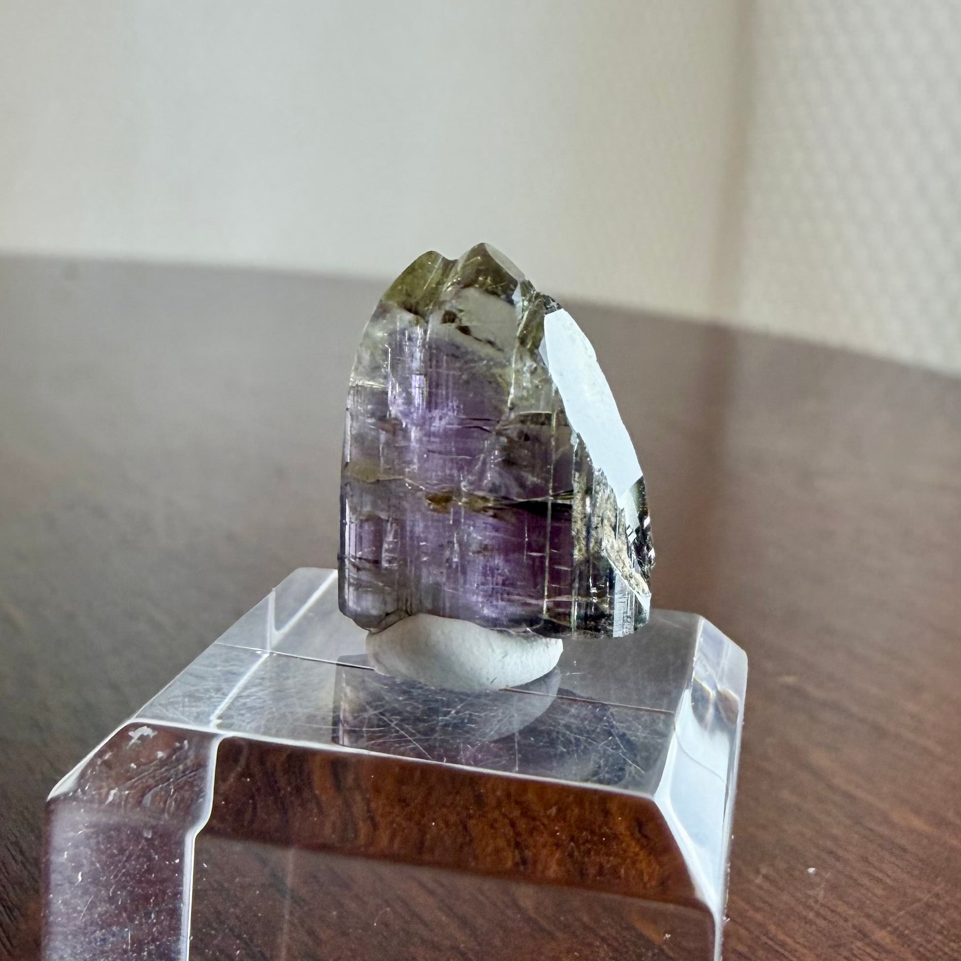 クリアさが魅力の結晶は形状やテリも良好で、角度を選びますがしっかりと多色性も見られます。