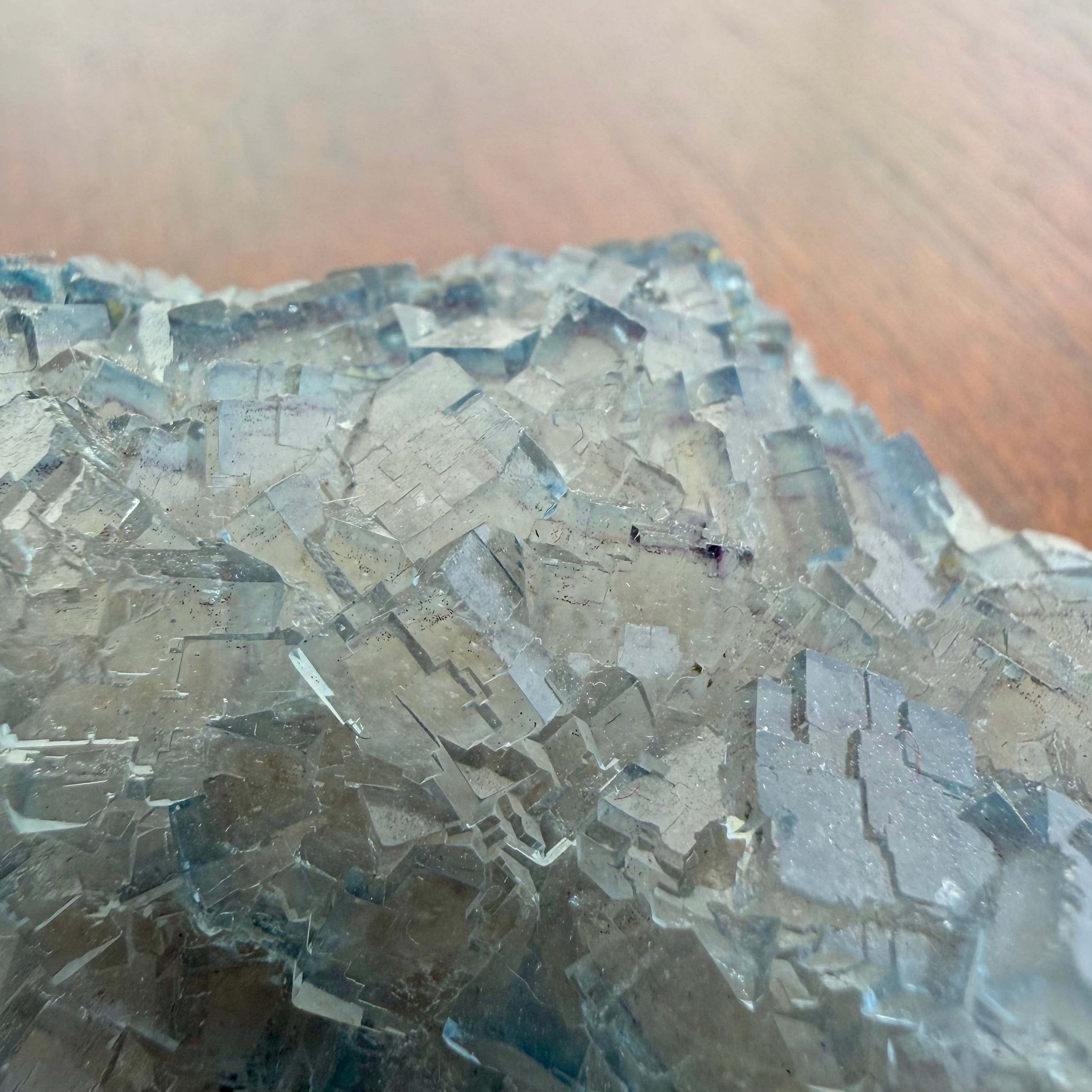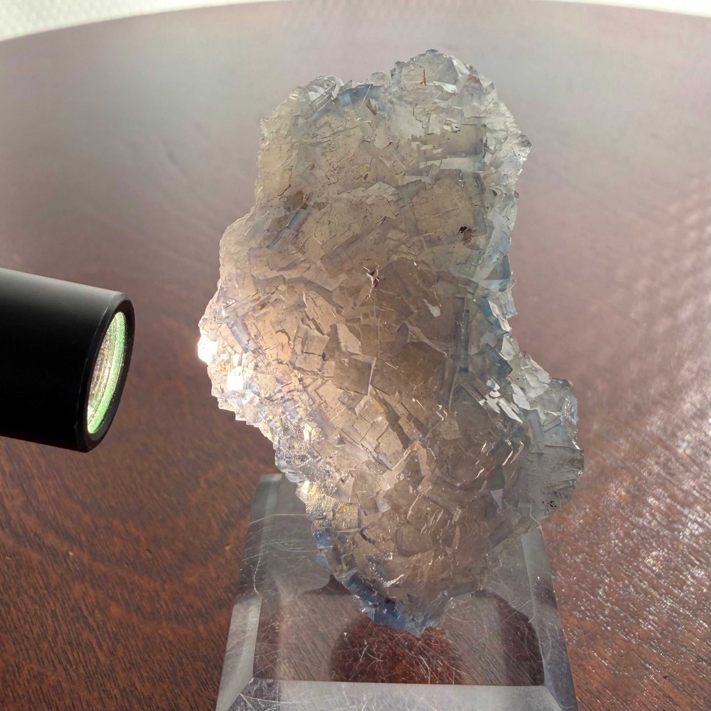 白濁した部分も透過光下ではしっかりと透け感があり、結晶面のテリも非常に良好なフローライトです。