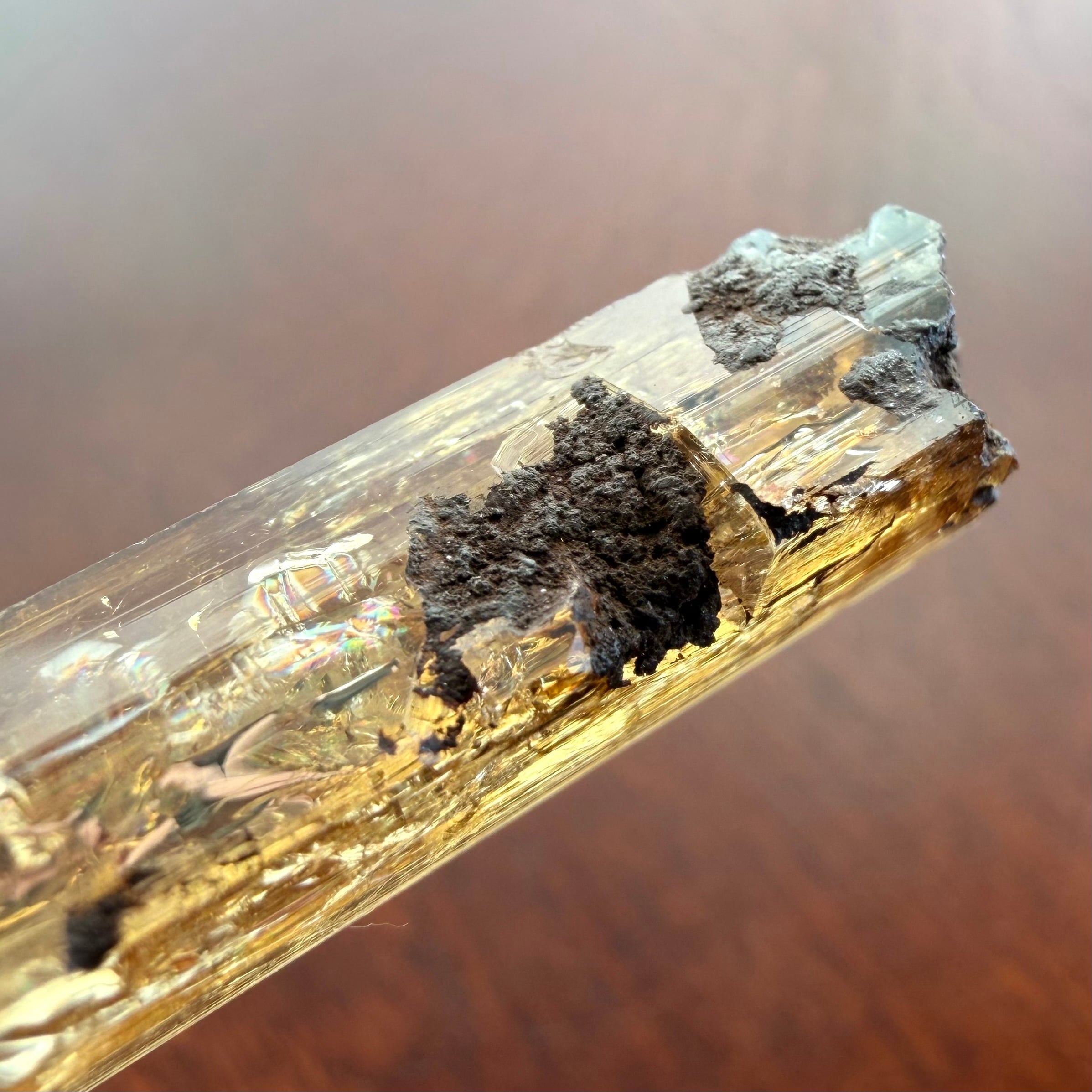 また、クラック由来のレインボーもですが、結晶下部に残る母岩の部分がアクセントとなり、シンプルな美しさと共に標本感も強い良標本です。