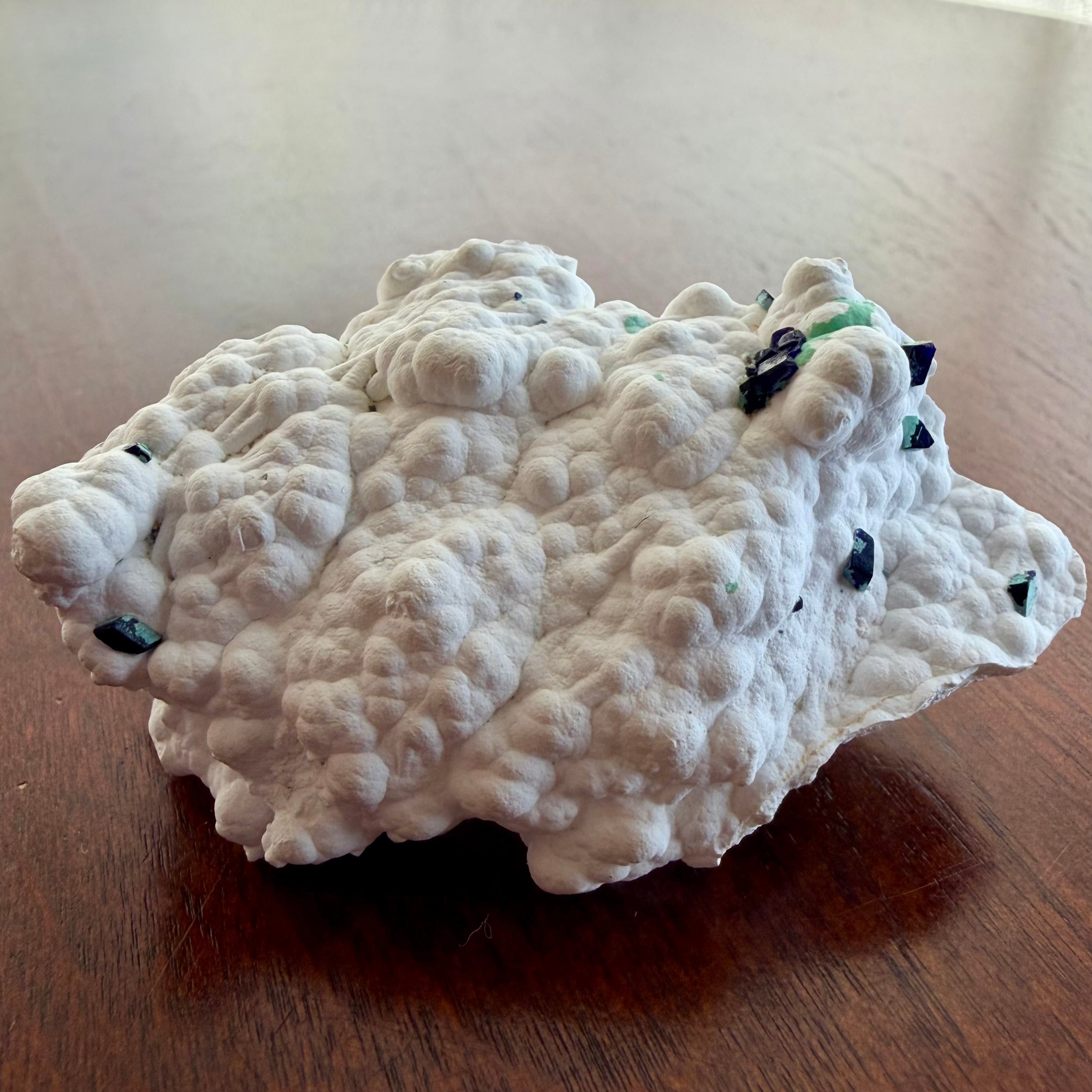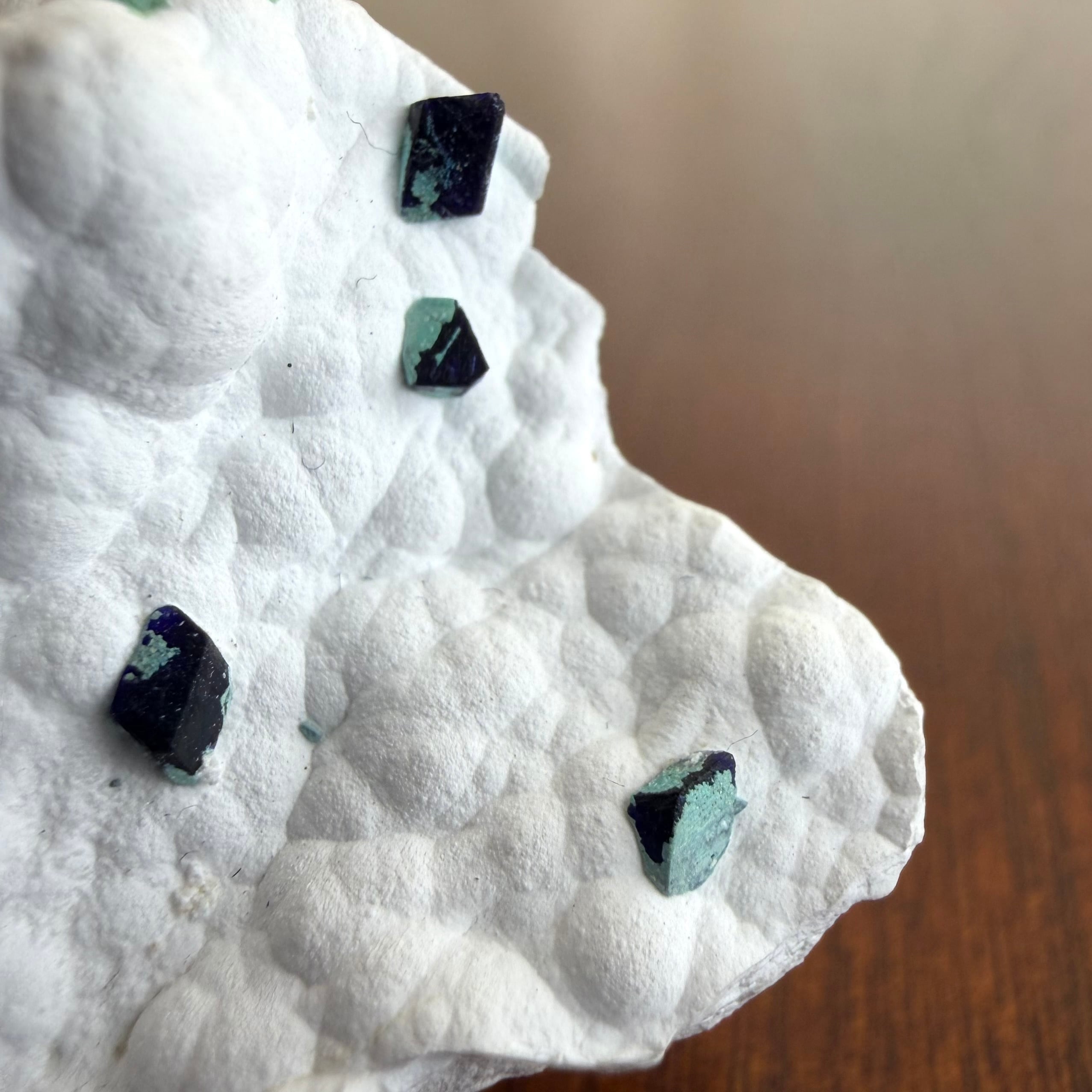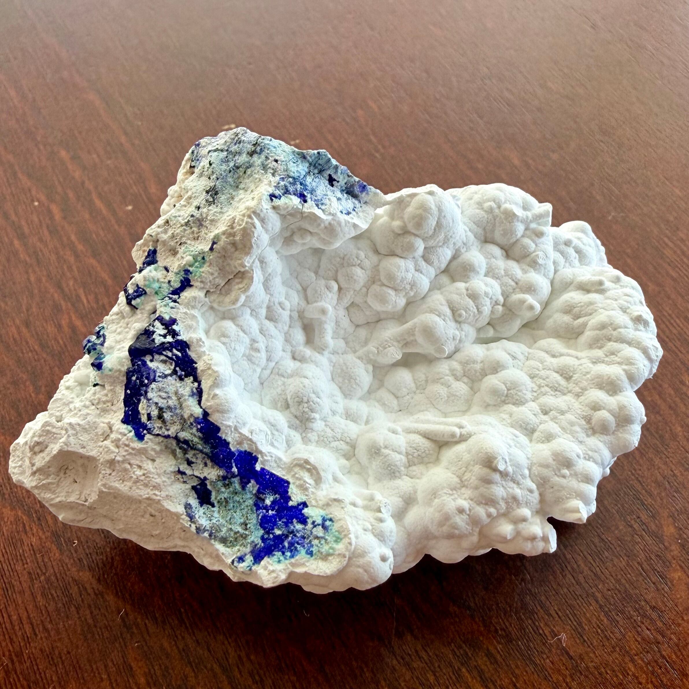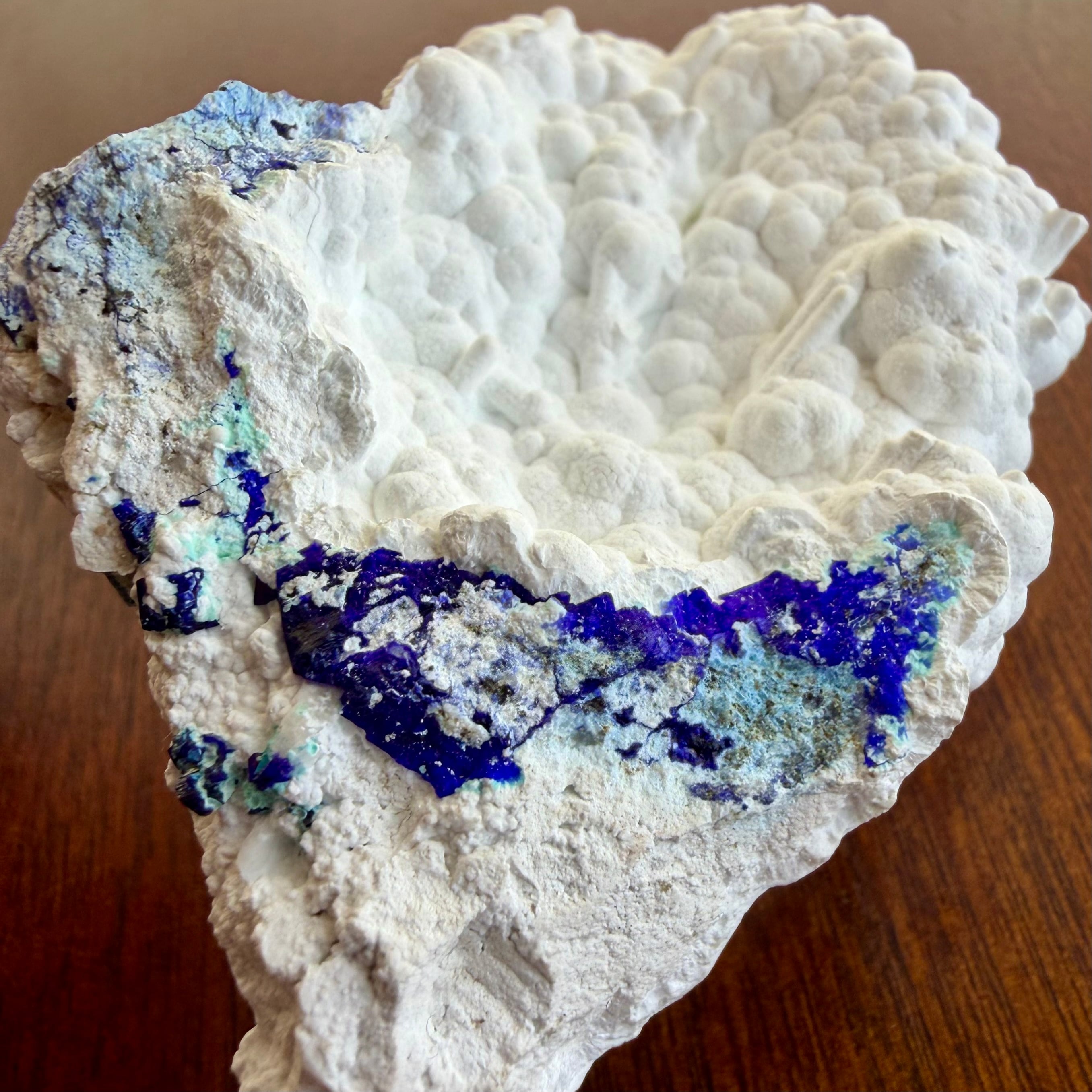強い透過光下で美しいブルーの発色が確認できますが、自然光下でも結晶表面には微かに青みを感じられます。