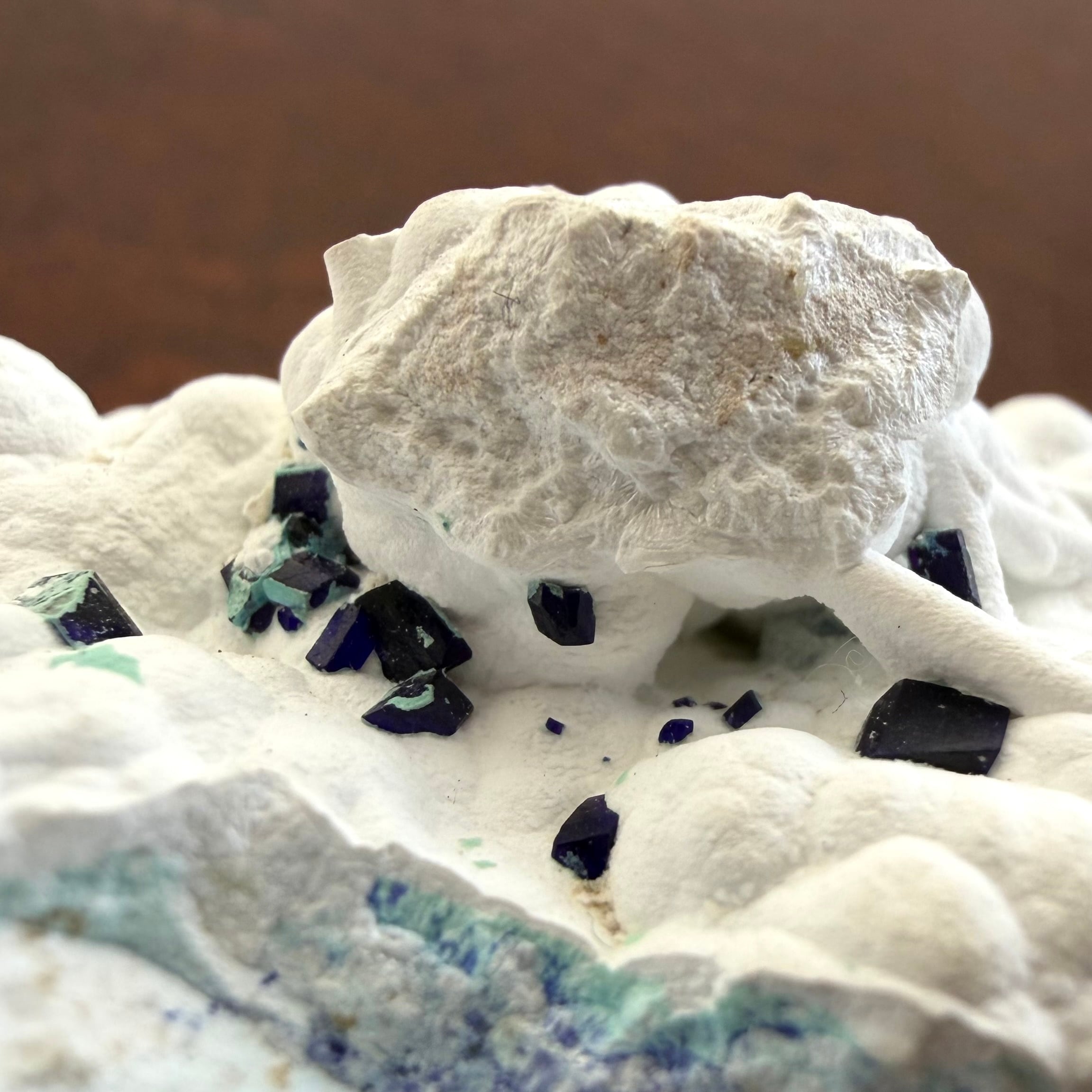 全体でみると結晶はそう多くない反面、真っ白な雲の様な形状と逸見石の状態の良さ等々、まとまりの良い標本です。