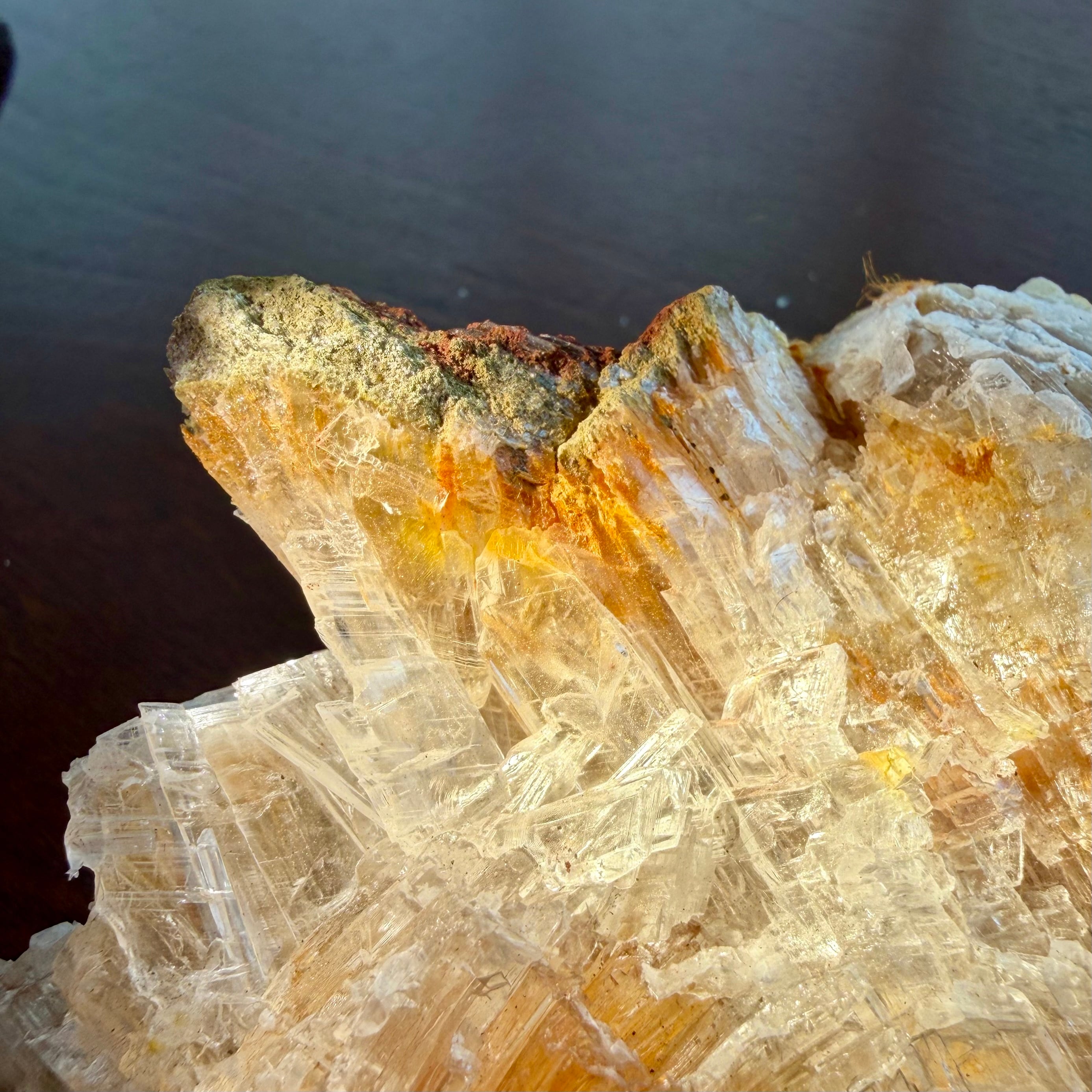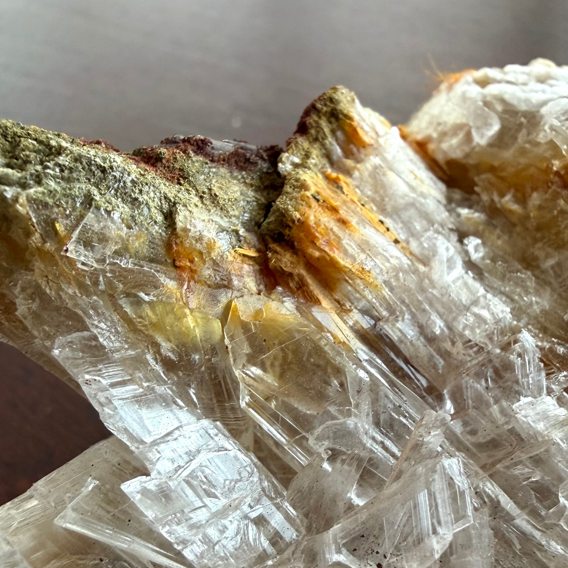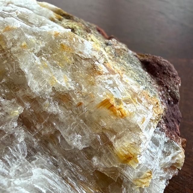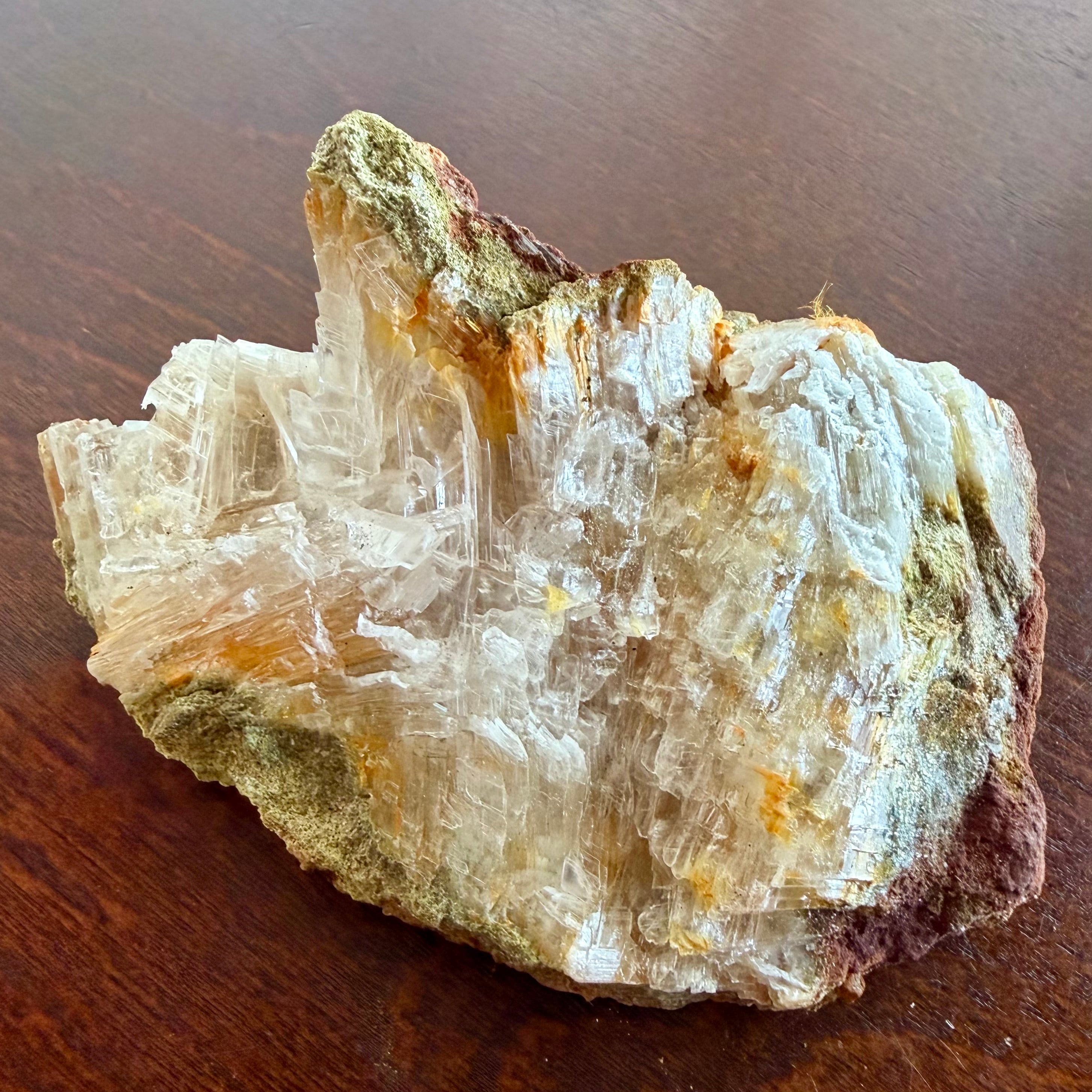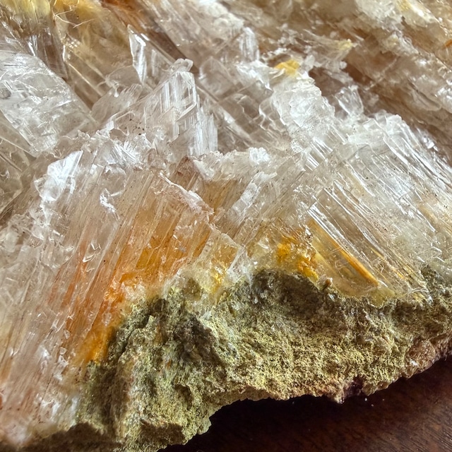 クリアなジプサムとオレンジ色のラドロッカイトのコンビネーションです。