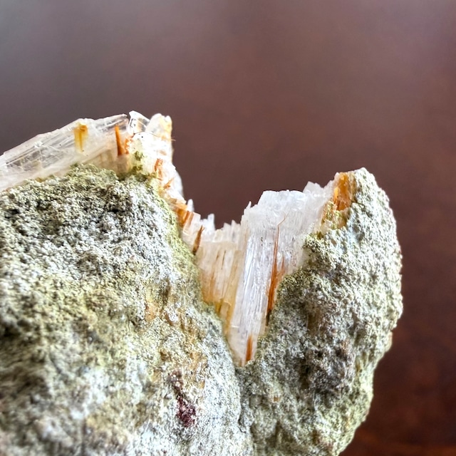 注意点として、母岩部分は触ると微細な土が手に残りやすいこと、そしてジプサムは欠けやすい点が挙げられ、更に繊維状に飛び出したラドコック石は注意して梱包は致しますが、発送時のダメージはやむなし、とその様にご認識いただき、発送の際に標本の欠片等が剥落する可能性がある点はどうぞご了承ください。