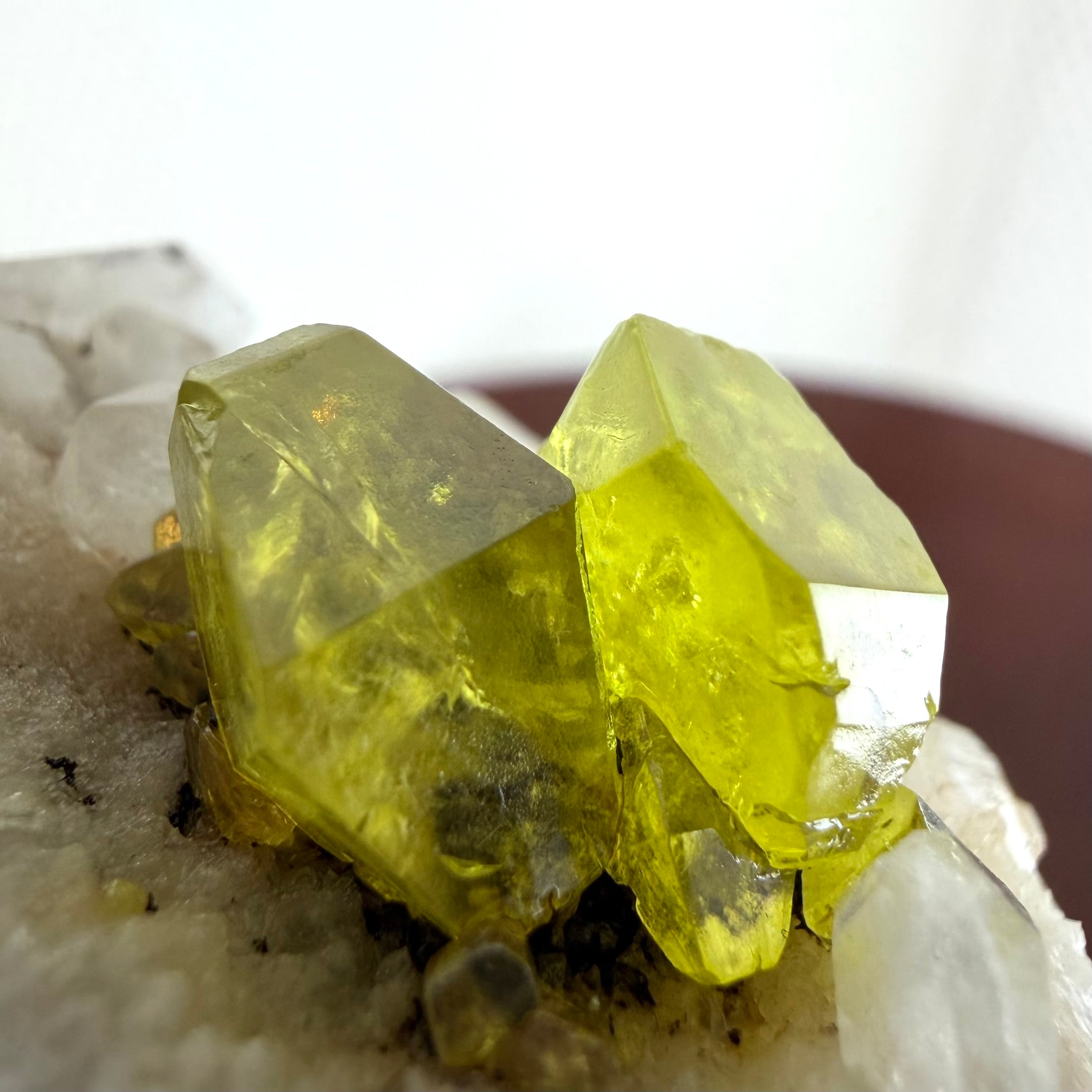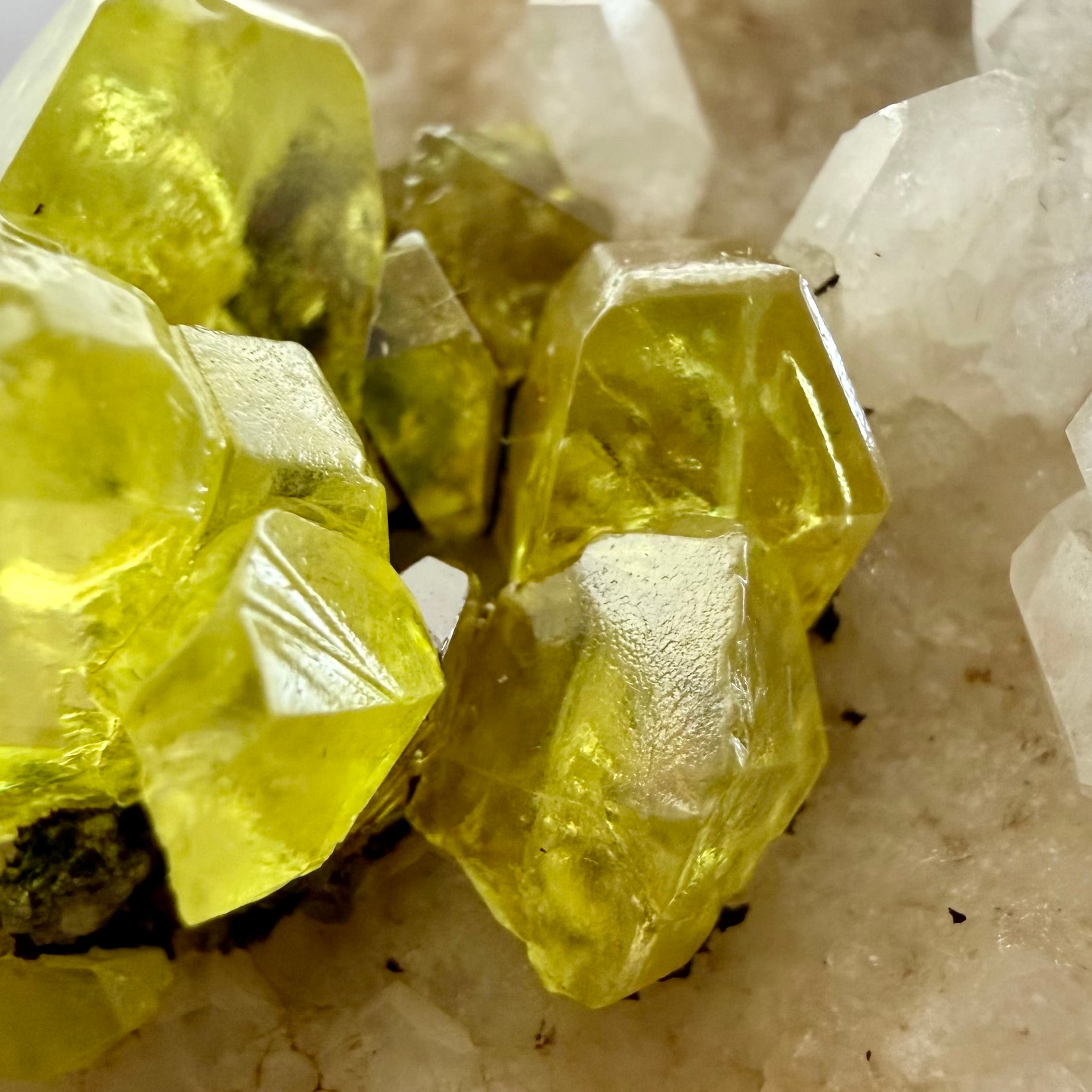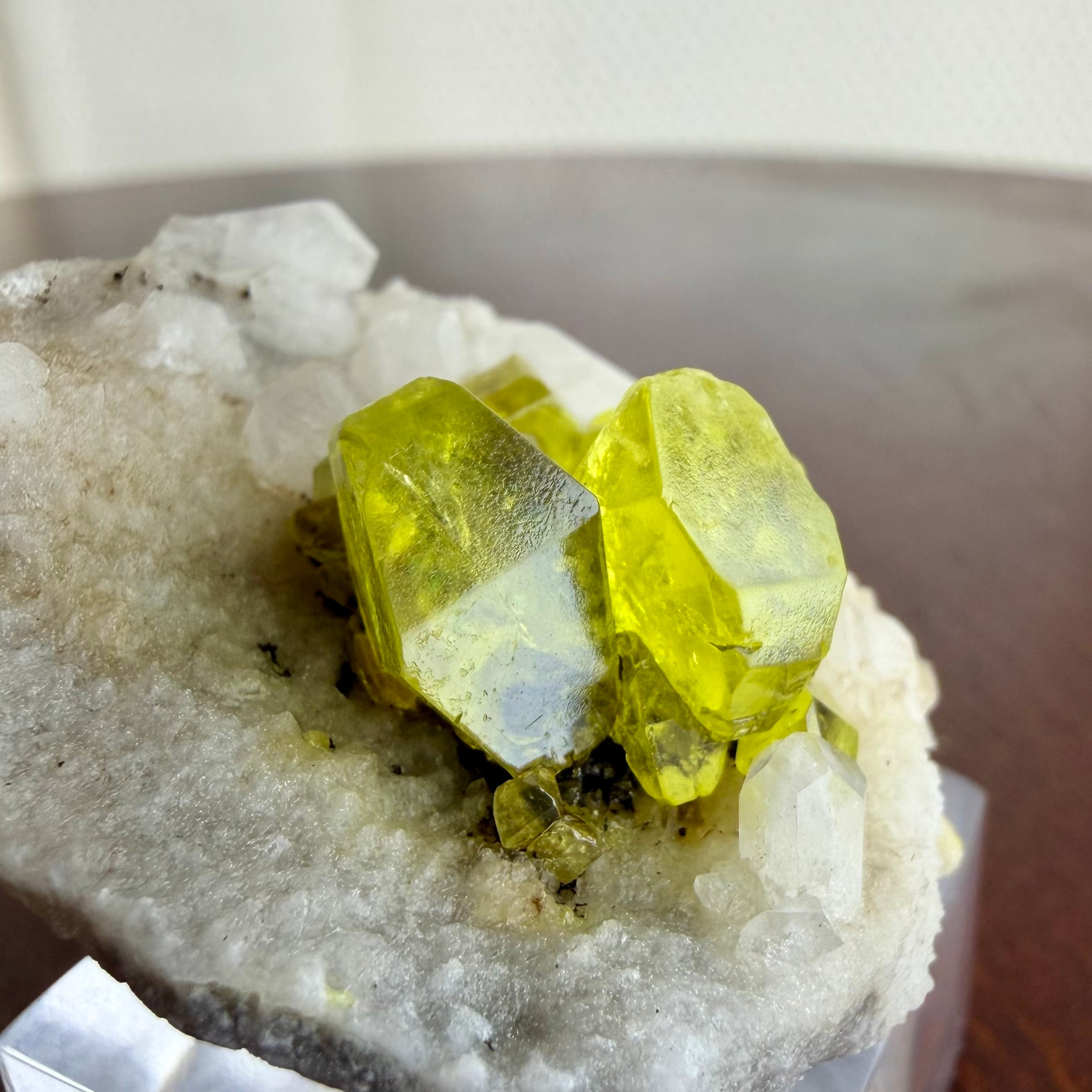 どうしてもこの産地のものはクリアでも表面がマットな質感になりがちですが、このサルファーは非常にクリアでテリが強い良結晶です。
