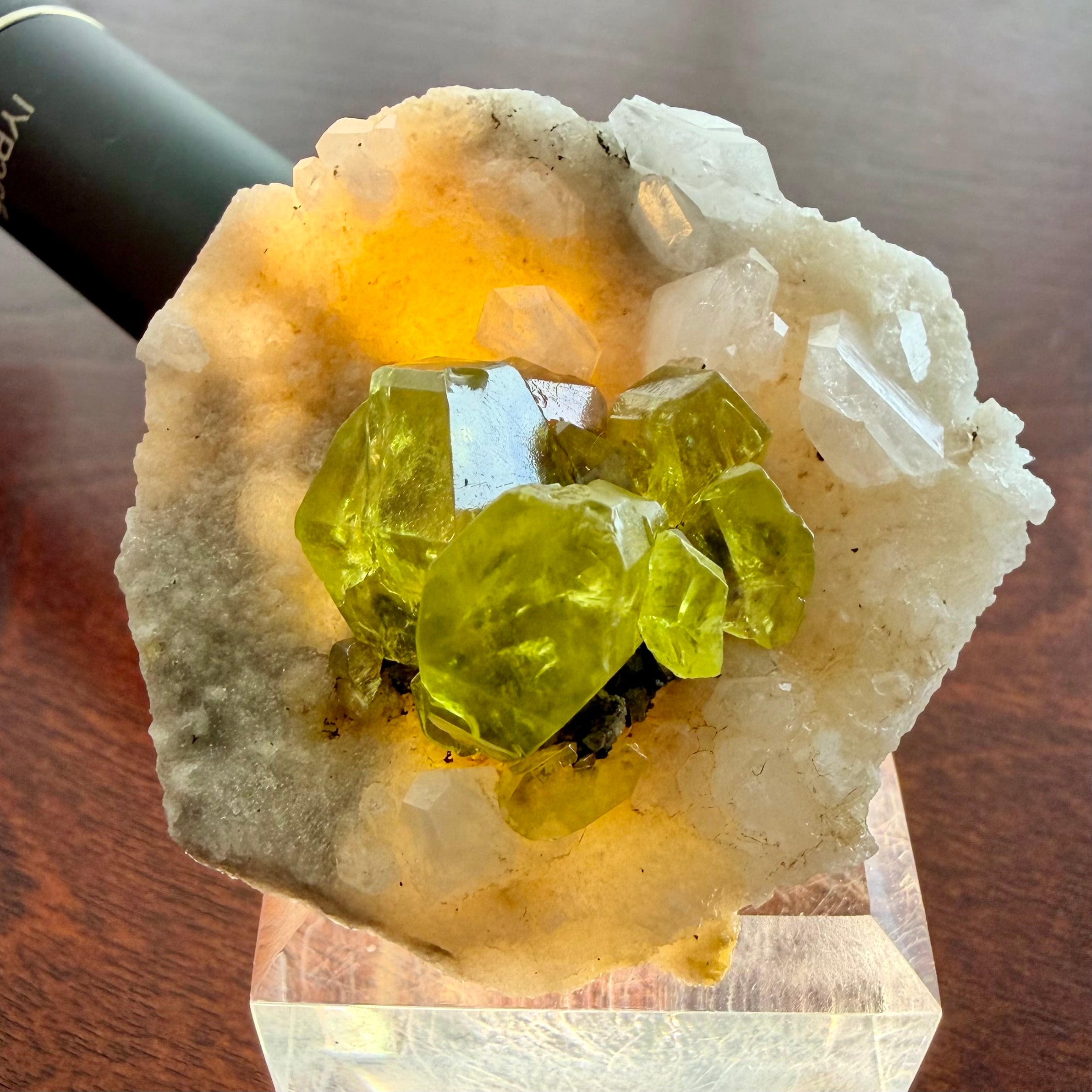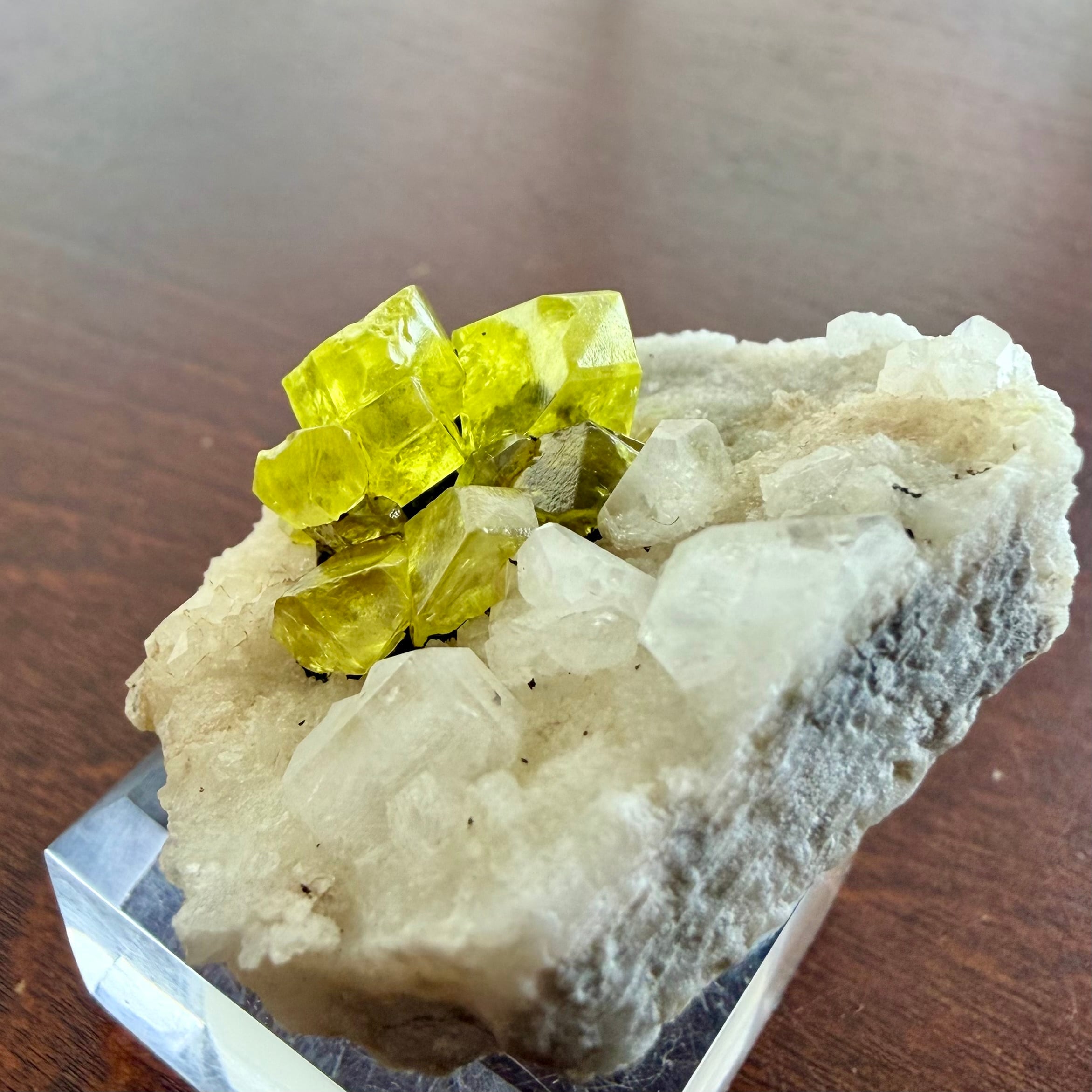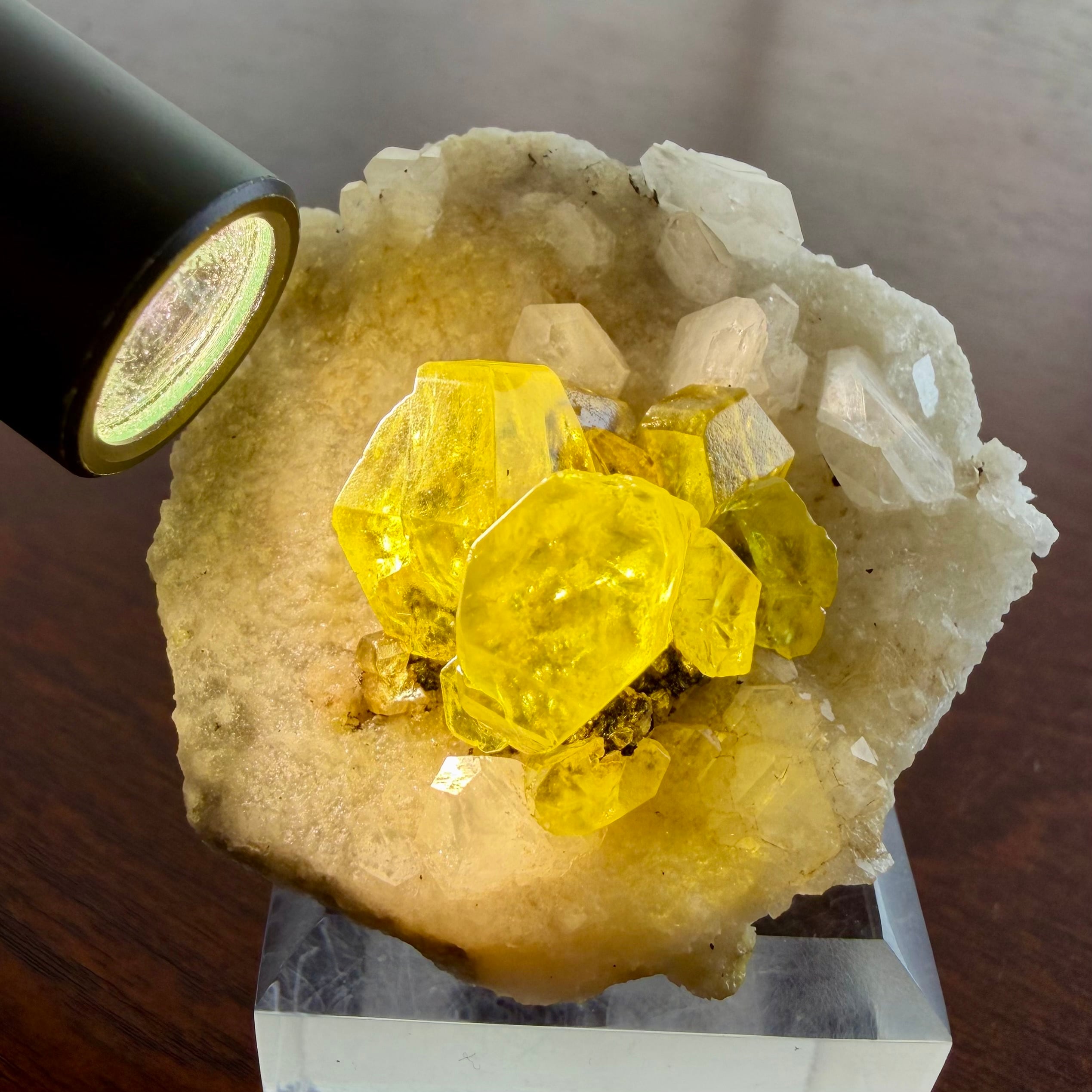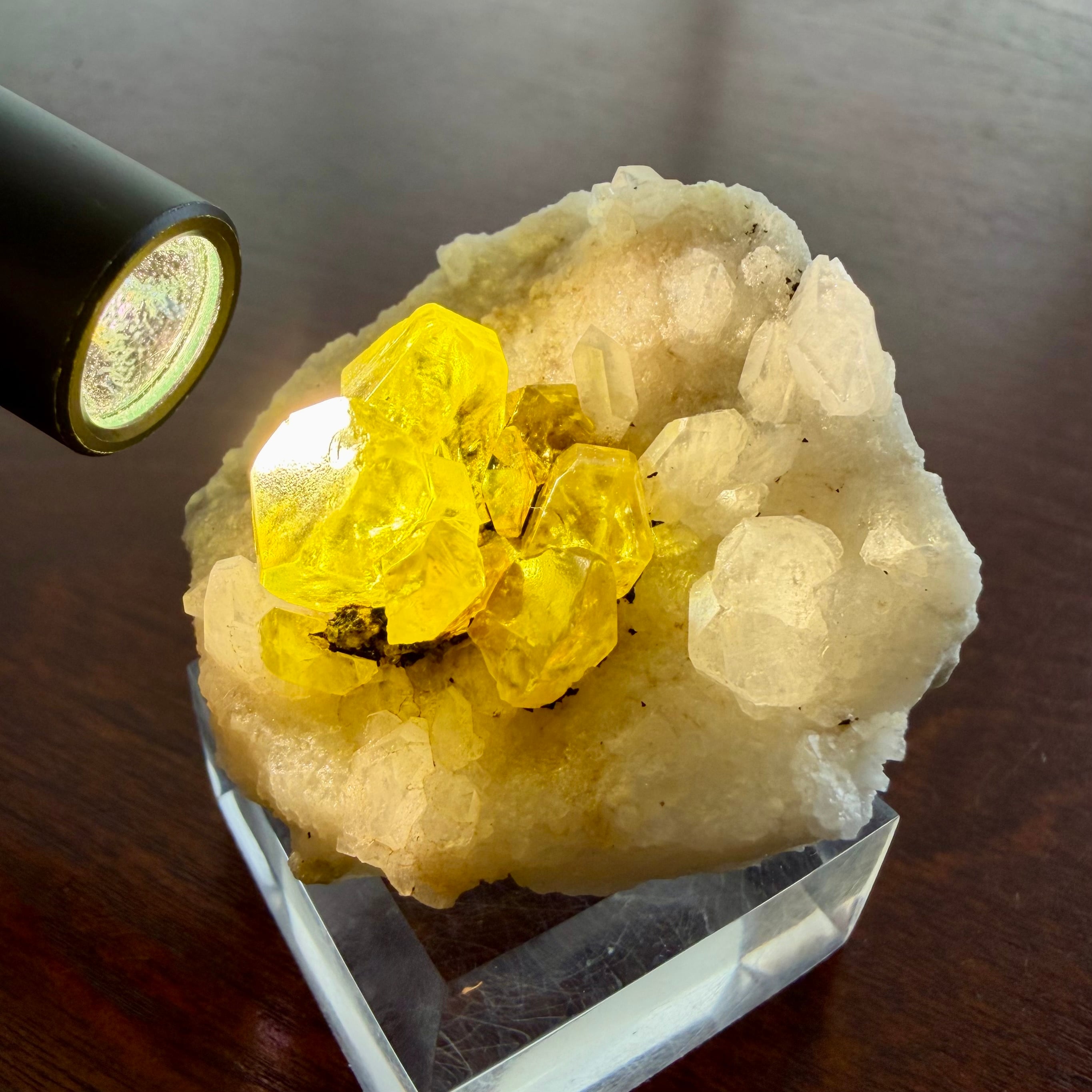 どうしてもこの産地のものはクリアでも表面がマットな質感になりがちですが、このサルファーは非常にクリアでテリが強い良結晶です。