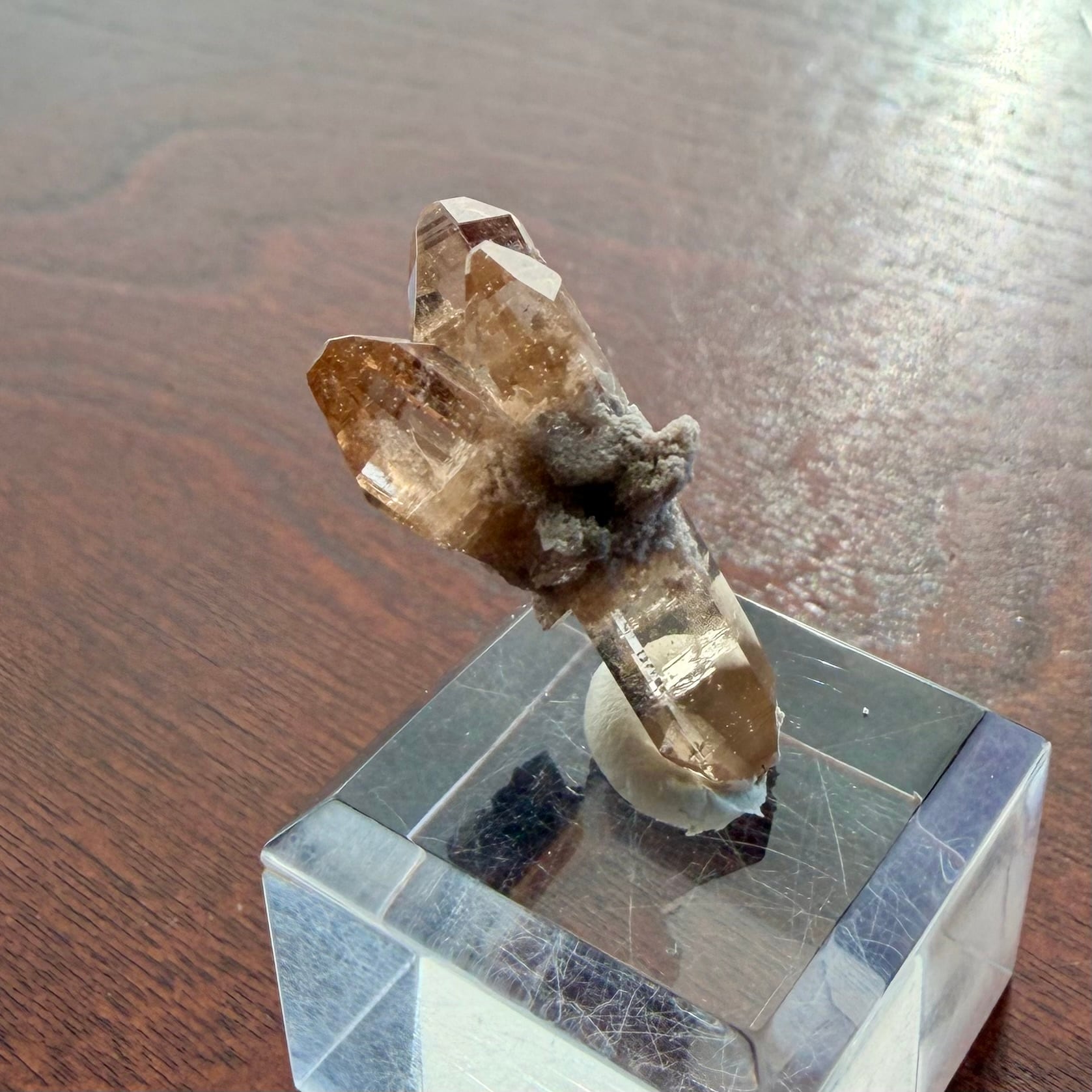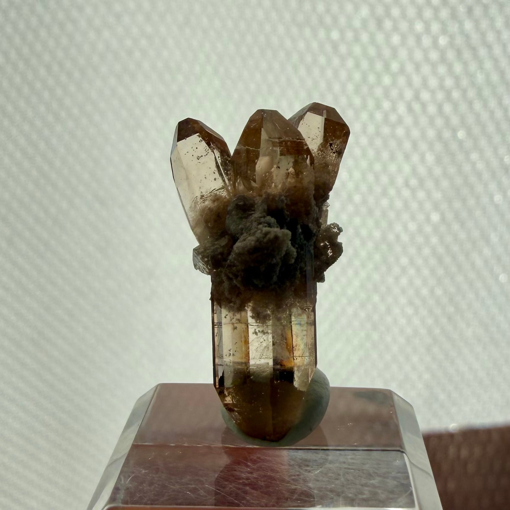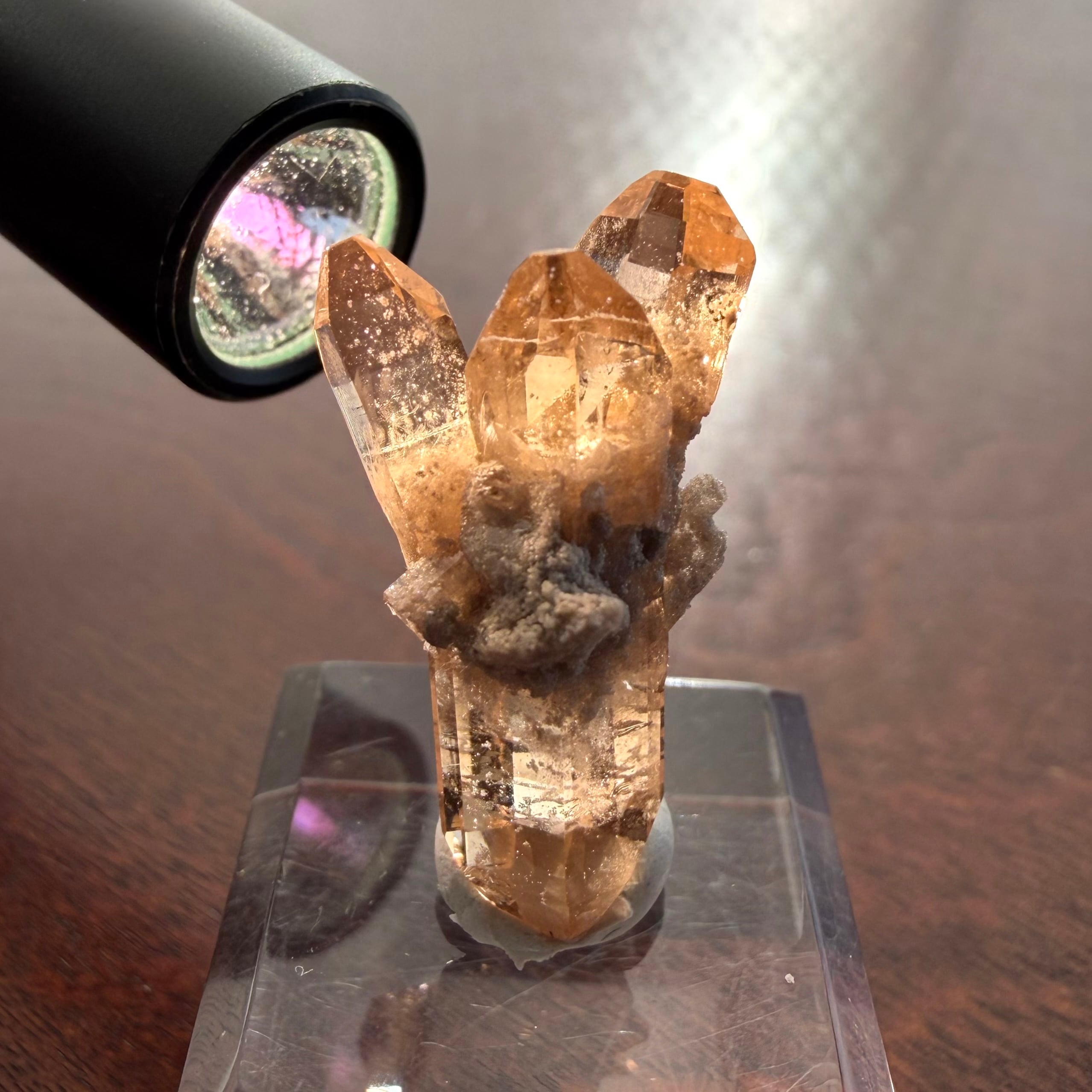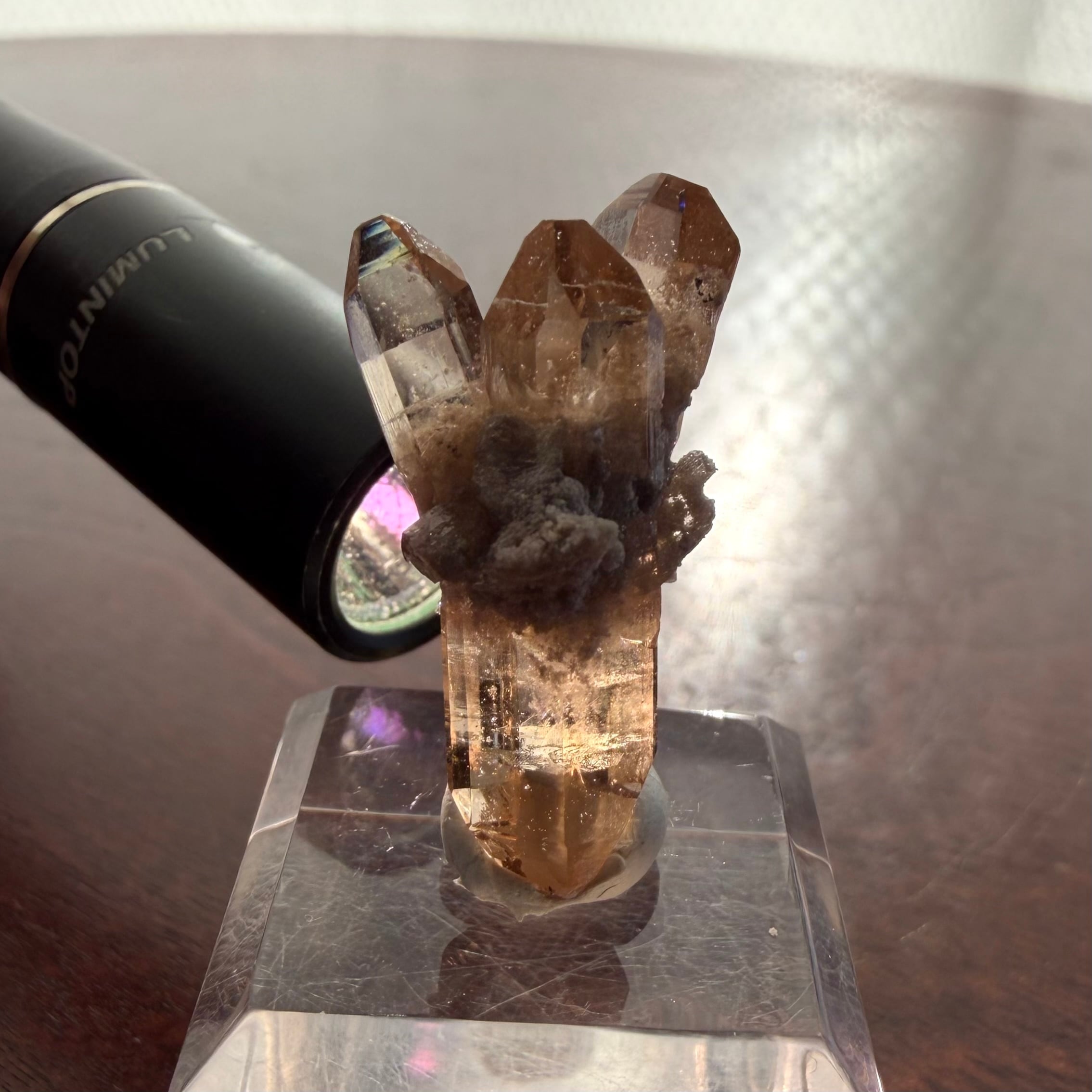当該産地といえばこうだよね、といった発色や形状を維持した結晶ですが、印象的なのは片方が三叉に分かれたユニークな形状で、透明感やテリの強さとそのユニークさが相まって、唯一無二感が更に感じられます。